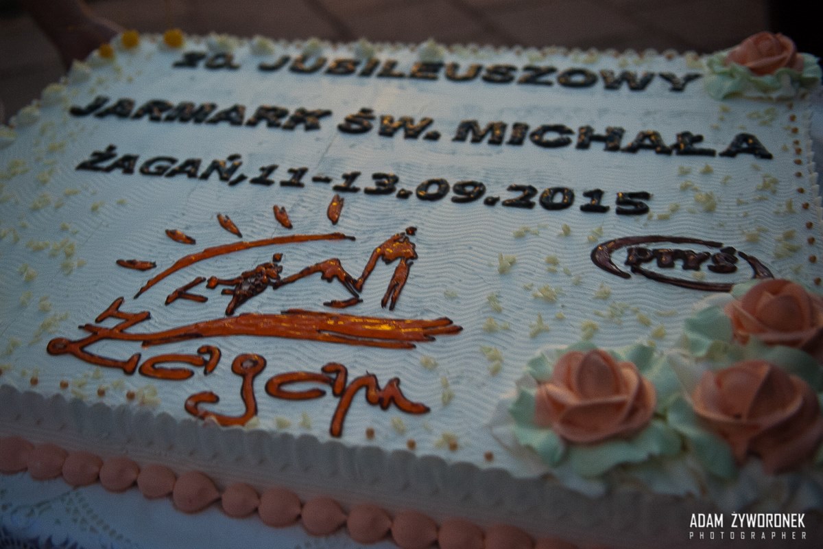 Ostatni dzień (13.09.2015) Jarmarku św. Michała minął nam w urodzinowej atmosferze. Program na scenie rozpoczął się o godz. 16:00 spektaklem teatralnym dla dzieci pt: „Mniam, Mniam” Następnie dla żagańskiej publiczności wystąpił zespół The Sweets oraz solistki z sekcji wokalnej Centrum Kultury. Kolejnym punktem programu był koncert Anity Ziobrowskiej i Janusza Gajdy wraz z zespołem. O godz. 18:00 na pl. gen. Stanisława Maczka rozpoczęło się wielkie gotowanie z Sylwią Biały, które cieszyło się wielkim zainteresowaniem. Na scenie w tym czasie piękny koncert dali Trzej Tenorzy z Poznania. ” O sole mio”, „Brunetki, blondynki”, „Wielka sława to żart” czy „Can You Feel The Love Tonight” z repertuaru Eltona Johna to tylko niektóre z hitów, które w tym czasie rozbrzmiewały nad Żaganiem. Chwilę później z okazji 20. urodzin Jarmarku św. Michała nad żagańskie niebo wzniosło się kilkaset balonów w barwach naszego miasta. Po energicznym koncercie zespołu „The Synki” Burmistrz Miasta Żagań Daniel Marchewka wraz z Dyrektor Centrum Kultury Beatą Tołpą odpalili race na wielkim jubileuszowym torcie Jarmarku św. Michała i razem z mieszkańcami zaśpiewali głośne „Sto lat” po czym wspólnie pokroili tort i poczęstowali gości pod sceną. Po wielkim świętowaniu 20. urodzin Jarmarku św. Michała przyszedł czas na długo oczekiwany koncert gwiazdy wieczoru – Andrzeja Piasecznego. Znany piosenkarz ściągnął na pl. gen. S. Maczka tłumy mieszkańców i gości z województwa lubuskiego i dolnośląskiego. którzy razem z nim zaśpiewali jego największe przeboje – te starsze „Budzikom Śmierć”, „Prawie do nieba”, „Śniadanie do łóżka” oraz te z najnowszej płyty pt. „Kalejdoskop”. Na zakończenie 20. Jubileuszowego Jarmarku św. Michała na żagańskim niebie odbył się niezapomniany pokaz sztucznych ogni.