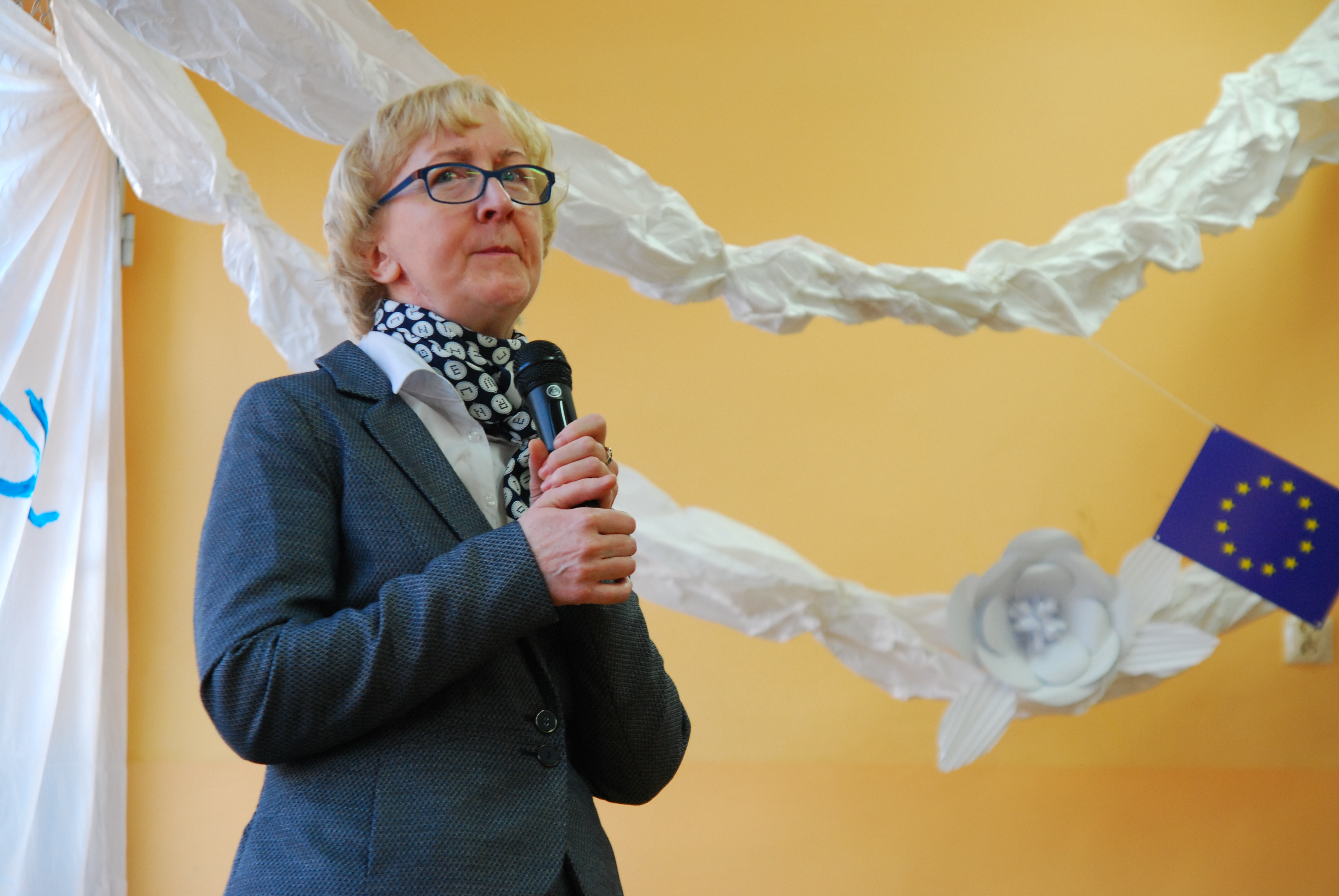 Na powitanie zebrani obejrzeli krótki program artystyczny, podczas którego uczniowie naszej szkoły zaprezentowali swoje talenty wokalne, muzyczne oraz taneczne, a szkolny chór pod opieką pana Szymona Kraszewskiego wykonał “Odę do radości” – hymn Unii Europejskiej.