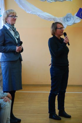 Goście przybyli do szkoły o godz. 9.00, gdzie na małej sali gimnastycznej przywitała ich pani dyrektor Dorota Stebelska oraz szkolna koordynator projektu pani Maria Gołaszewska. Pana Burmistrza reprezentowała pani Agnieszka Zychla z Urzędu Miasta.