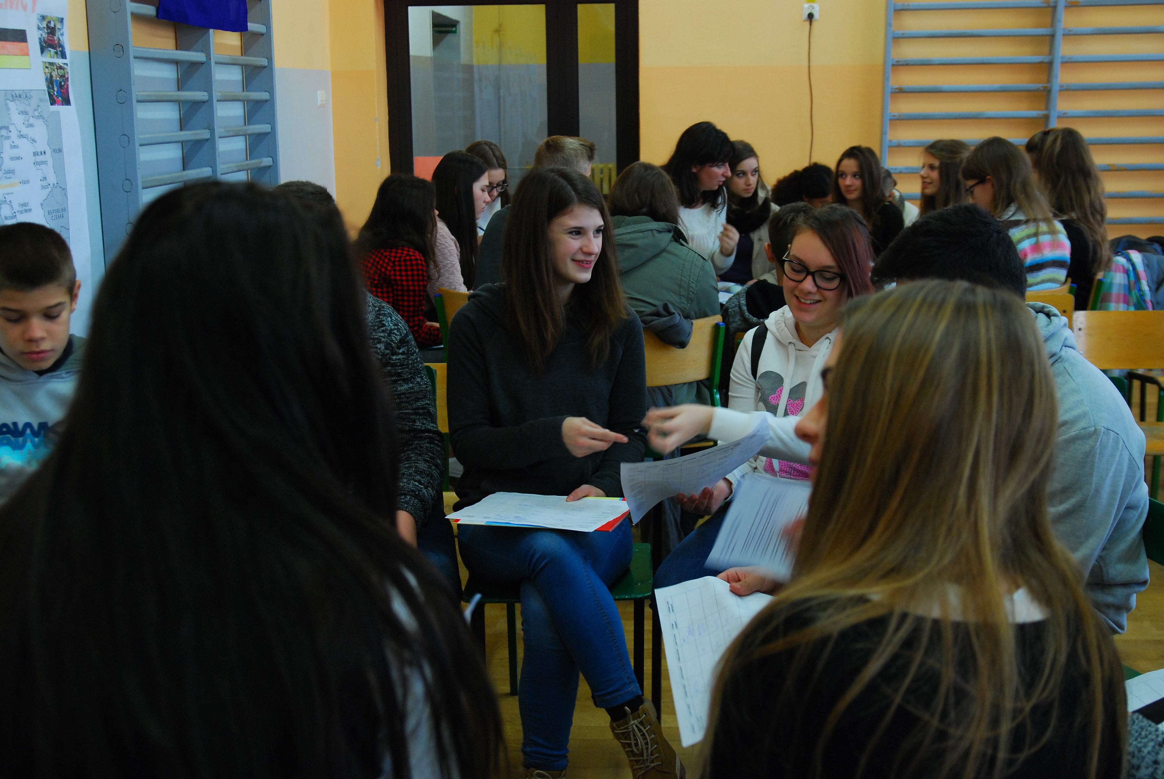 Już po raz drugi odwiedzają naszą szkołę zagraniczni goście w ramach europejskiego programu międzynarodowej wymiany uczniów Erasmus + (wcześniej Comenius).  Delegacja ponad 30 uczniów wraz z 12 nauczycielami z Francji, Hiszpanii, Włoch, Niemiec i Węgier będzie od 14 listopada aż do piątku przebywać w naszym mieście i wraz z polskimi uczniami i nauczycielami realizować temat projektu: “Od szkoły do pracy”, obserwując w jaki sposób młody człowiek przygotowuje się do wyboru dalszej edukacji i zawodu.