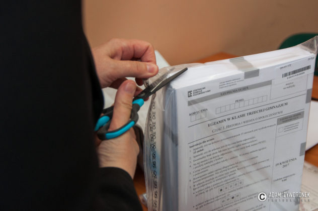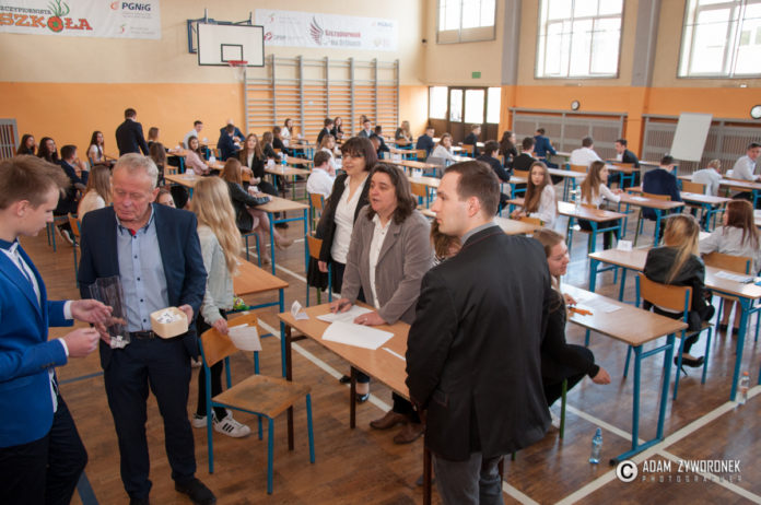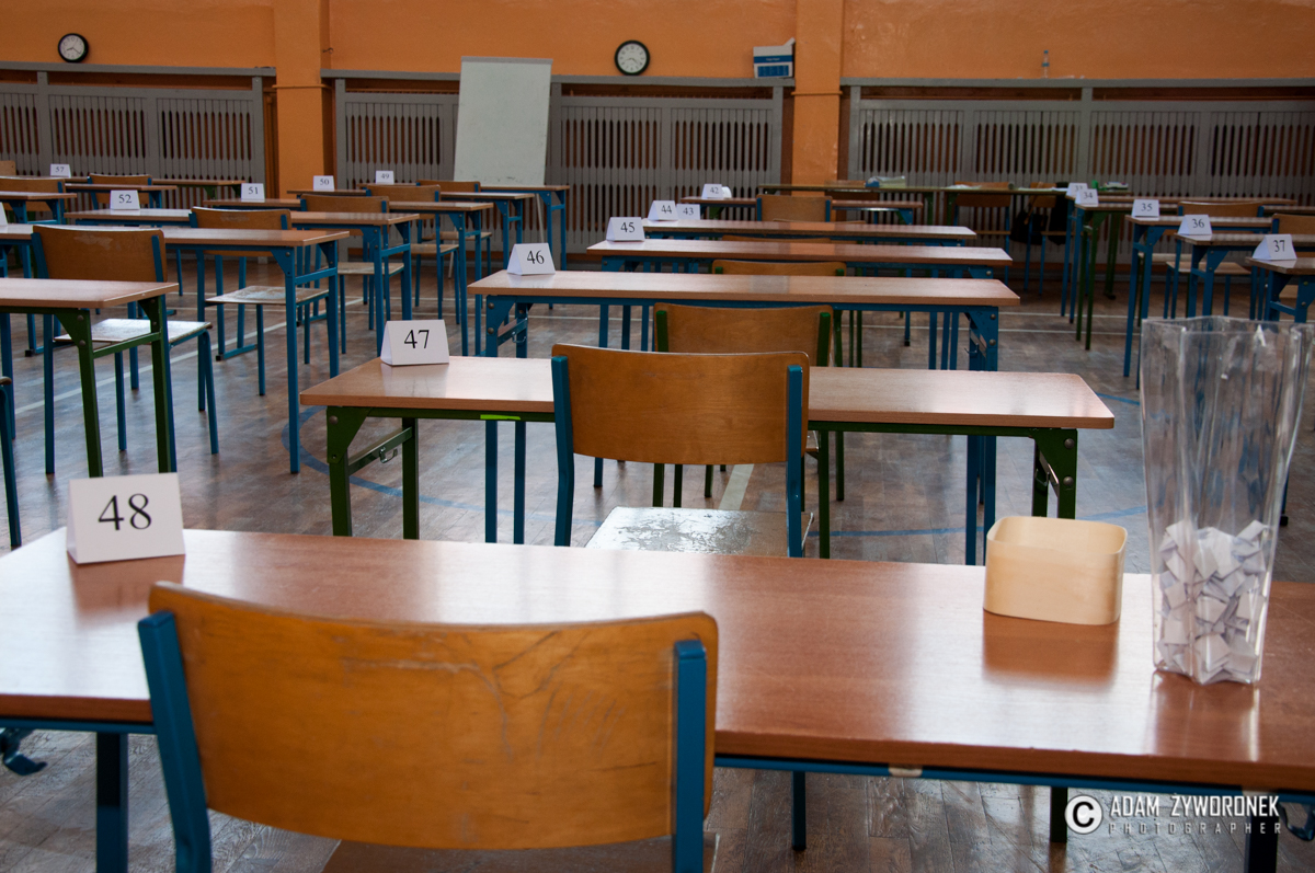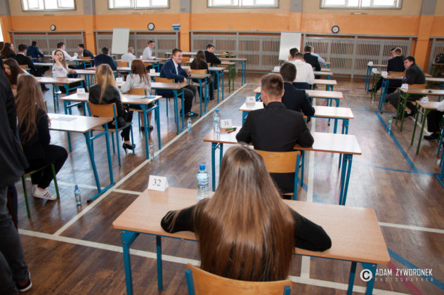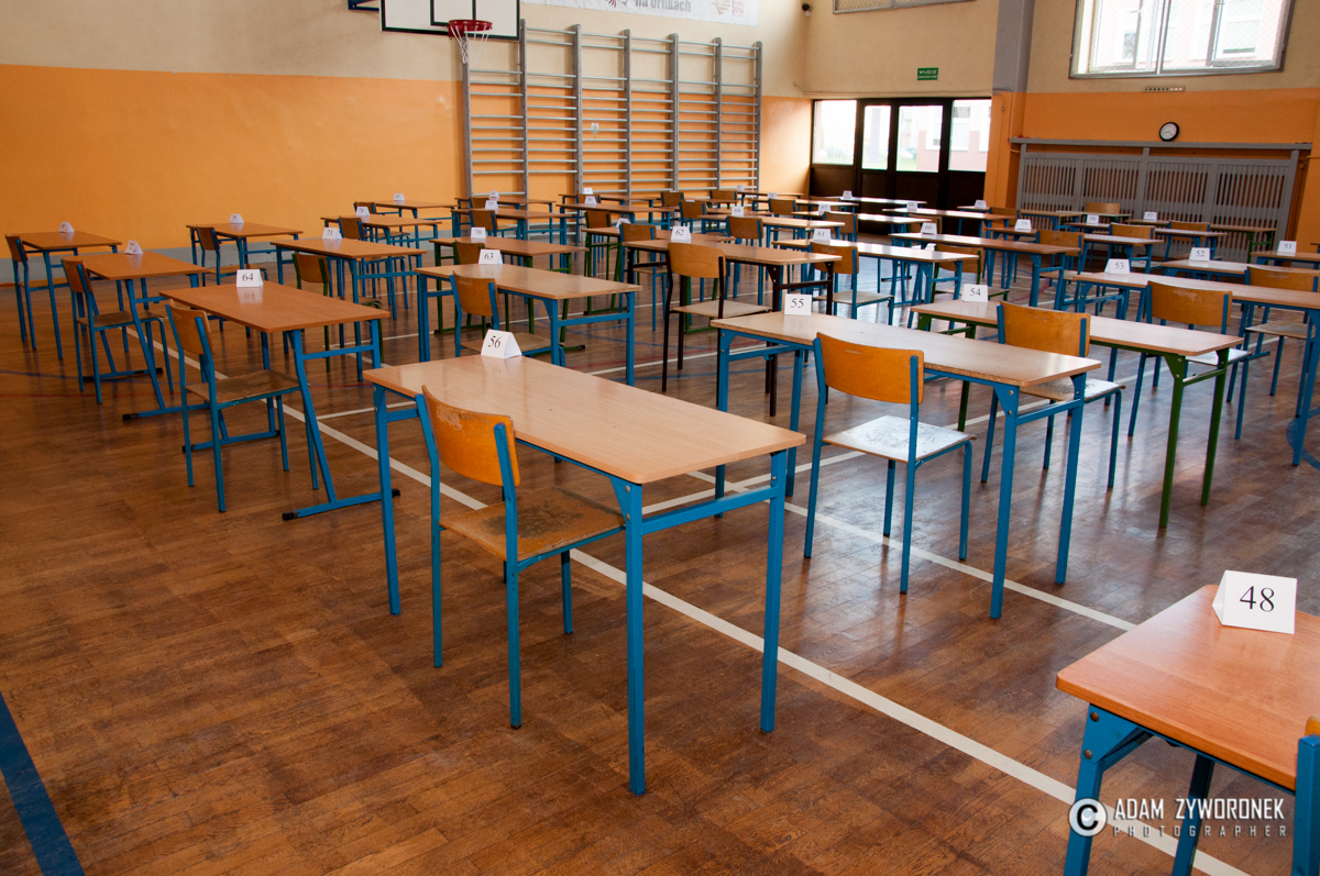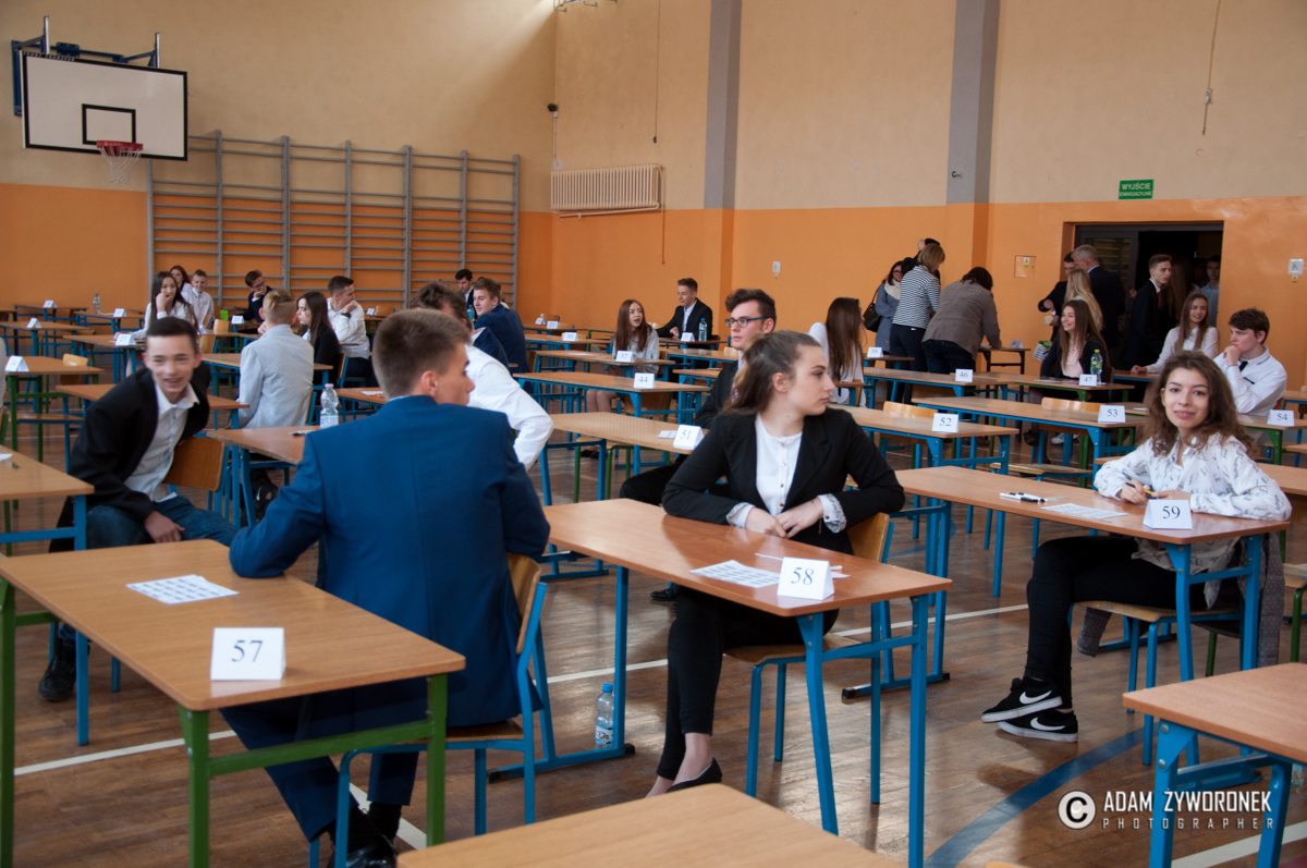 Egzaminy odbyły się na sali gimnastycznej, ale i w dwóch mniejszych salach lekcyjnych. W bardziej kameralnych warunkach pisali m.in. dyslektycy, którzy dostali trochę więcej czasu.