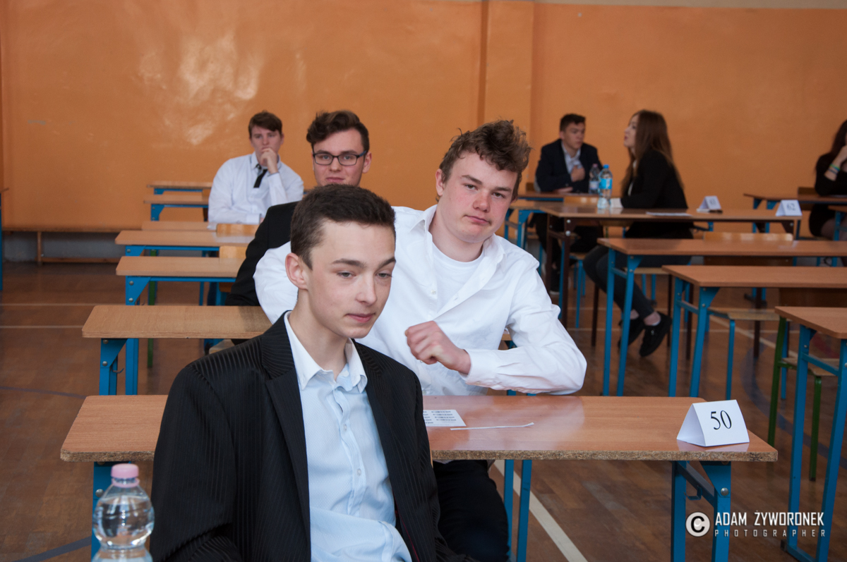 – Boję się matematyki – powiedział nam Jakub Tkacz z klasy IIID, przed wejściem na salę gimnastyczną w ZS nr 1. – Po próbnych egzaminach okazało się, że wyniki zdających nie były zbyt dobre. Stąd obawa, jak to będzie teraz. Historii i języka polskiego boję się najmniej. Dużo czytam i interesuję się historią. Z języka polskiego mieliśmy bardzo dużo zajęć i jesteśmy dobrze przygotowani.