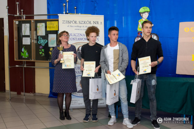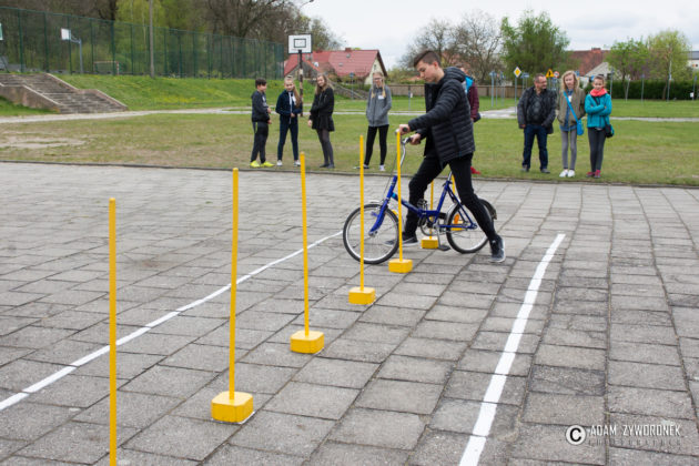 Uczestnicy odpowiadali na 25 pytań w teście wiedzy oraz rozwiązywali 10 sytuacji na skrzyżowaniach. W części praktycznej na rowerach pokonywali tor przeszkód i miasteczko ruchu drogowego, a także udzielali pierwszej pomocy poszkodowanym. – Najwięcej problemów sprawił nam slalom na rowerach – stwierdził Igor Hoszecki z kl. IC, ze zwycięskiej drużyny gimnazjalistów. – Jeśli chodzi o testy wiedzy, to nie były trudne. Przygotowywaliśmy się do nich w szkole i indywidualnie.