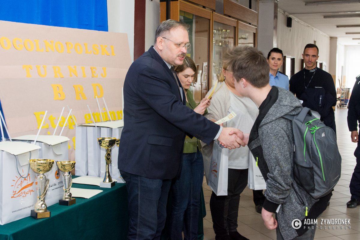W imieniu burmistrza Daniela Marchewki nagrody uczestnikom wręczył dyrektor Zbigniew Białkowski, szef Departamentu Oświaty i Infrastruktury w magistracie. Gratulował uczestnikom wiedzy i okazanych umiejętności. Konkurs BRD na szczeblu powiatowym odbędzie się 11 maja w Tomaszowie. Żagań będzie reprezentować drużyna z PG nr 2 w składzie: Piotr Kuczak, Igor Hoszecki i Leszek Jagodziński. W kategorii szkół podstawowych do Tomaszowa pojedzie drużyna PSP5 w składzie: Wiktoria Braszko, Antonina Grabkowska, Miłosz Symonowicz i Wiktor Bagiński.