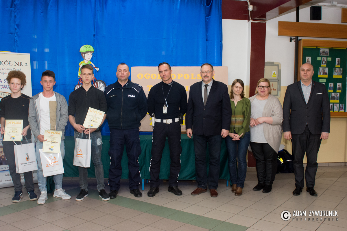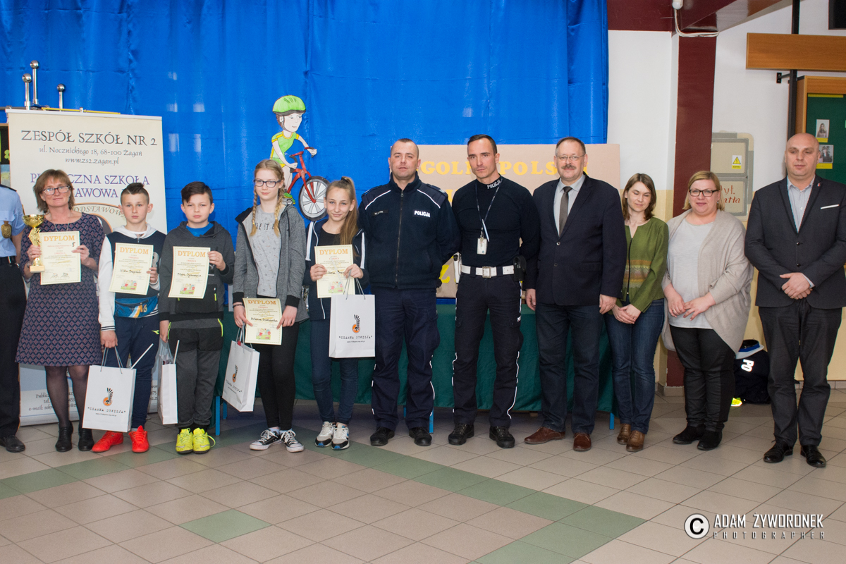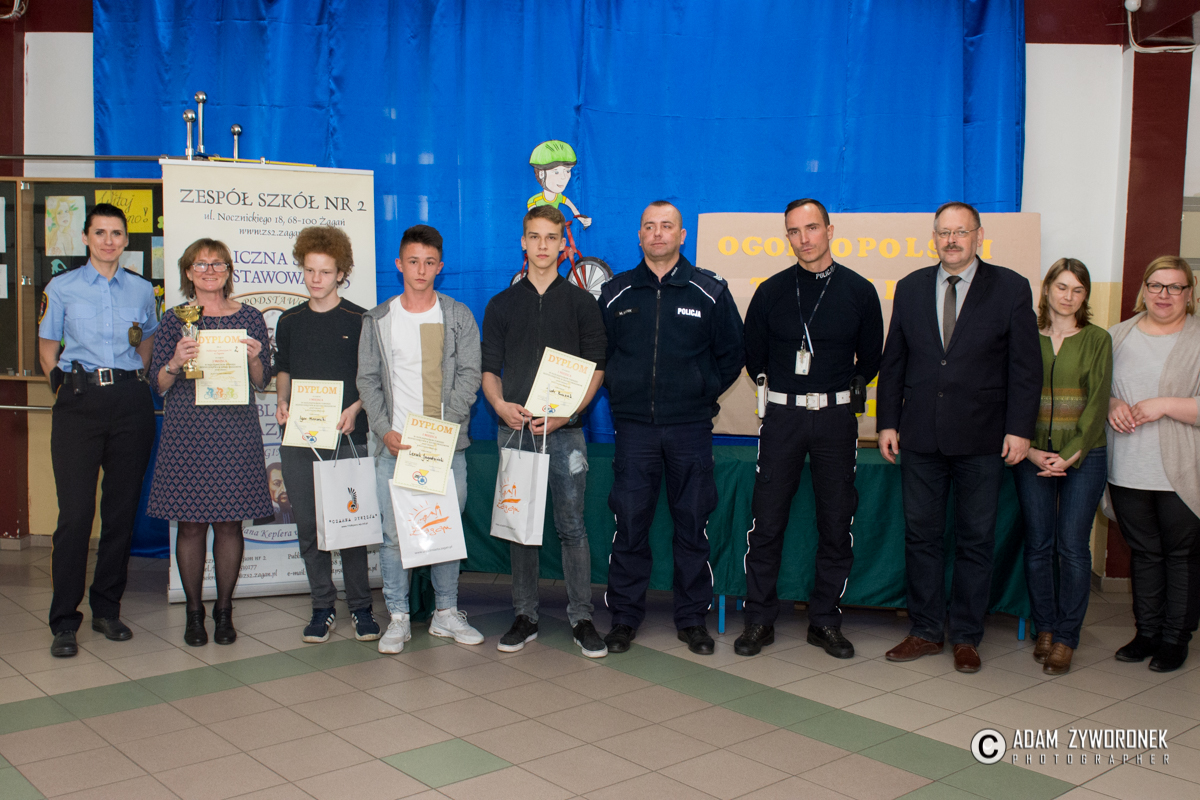 Konkurs zorganizowany przez Urząd Miasta Żagań we współpracy z policją i strażą miejską odbył się w środę (26 kwietnia) w ZS nr 2 przy ul. Nocznickiego. W rozgrywkach wzięło udział pięć drużyn z miejskich szkół podstawowych i dwie z gimnazjów. W jury zasiały Anna Maksymiuk i Joanna Wójcik z Wydziału Oświaty i Kultury w magistracie, a także strażniczka miejska Kinga Wójcik. Policję reprezentowali: sierżant sztabowy Marcin Mycek i młodszy aspirant Zbigniew Arciuszkiewicz z Wydziału Ruchu Drogowego w KPP Żagań.
