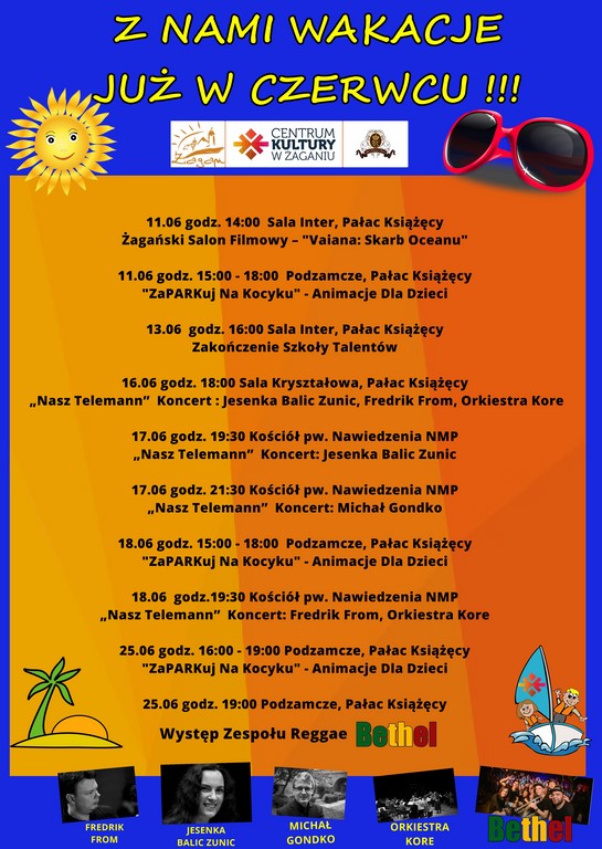 Na dzieci czekały gry, zabawy, kącik malucha, natomiast wszyscy mogli skorzystać z relaksu na świeżym powietrzu na leżakach Centrum Kultury w Żaganiu. W niedzielę 18 czerwca w godz. 15.00-18.00 kolejna impreza z tego cyklu, zaś w sobotę 25 czerwca wielkie otwarcie lata ze znanym zespołem reggae „BETHEL”.