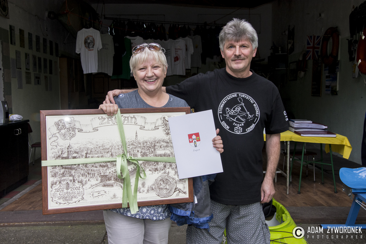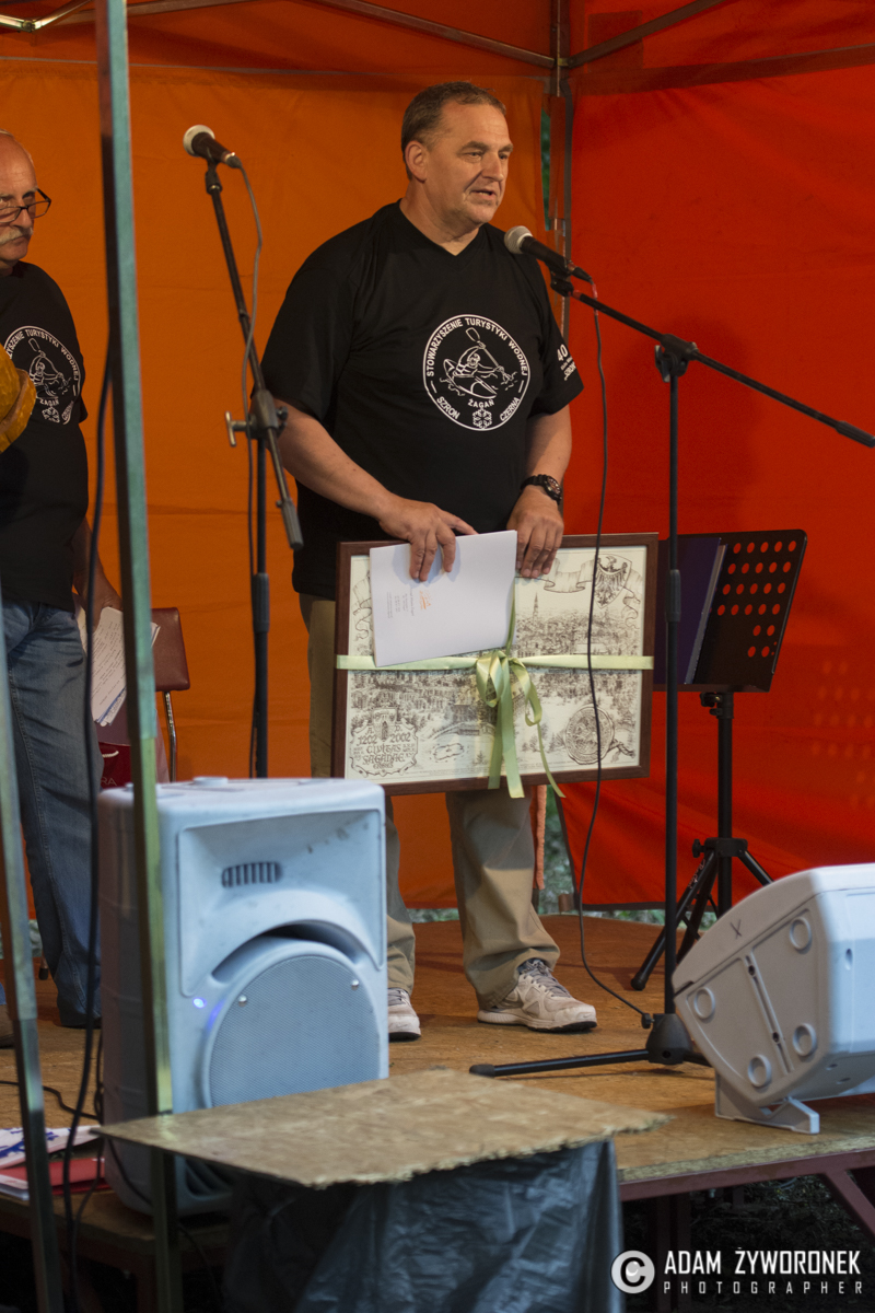 Wczoraj (1lipca 2017 roku) odbyły się XXIII Spotkania z Piosenką Turystyczną i Żeglarską. Na stanicy wodnej w Żaganiu spotkali się turyści, wodniacy, grotołazi i licznie przybyli mieszkańcy miasta, by uczestniczyć w tym cyklicznym wydarzeniu, połączonym z jubileuszem 40–lecia Klubu PTTK „Szron”. Spotkanie otworzył założyciel klubu Ryszard Dyrkacz. Przywitał zgromadzonych i zachęcił do wspomnień i zabawy. Wanda Winczaruk przewodnicząca RM i współzałożycielka „Szronu”przypomniała pokrótce początki wodniackiej działalności Klubu, z czasów, kiedy pływał po polskich rzekach pod egidą „Polaru”. Następnie przeczytała list gratulacyjny od burmistrza Daniela Marchewki i wręczyła na ręce prezesa Klubu pamiątkową rycinę Żagania. Do wspomnień, życzeń i gratulacji dołączyły pozostałe Kluby Turystyczne z miasta. Stowarzyszenie Piechur obdarowało – poza gratulacjami i dowodami sympatii – jubilatów „Ostatnią deskę ratunku”. „Bobry” wręczyły symboliczny totem „bobrowy” zwieńczony piórem wiosła, a przyjaciele „Szronu” – wodniacy z Wrocławia, pięknie wykonany list gratulacyjny i pamiątkową statuetkę. Na wodę spuszczono kajaki. Kto chciał, mógł spróbować swych sił i umiejętności. Przy okazji gospodarze zachęcali dzieci i młodzież do wstąpienia w szeregi klubu. Mimo padającego deszczu zabawa jubileuszowa rozkręciła się na dobre. XXIII edycję „Piosenki…” wygrał Czesław Sawicki – żagański bard piosenki turystycznej. Publiczność śpiewała wraz z wykonawcami. Gospodarze poczęstowali wszystkich swoich gości otrzymanym od przyjaciół tortem urodzinowym i lampką szampana. Były ciepłe wspomnienia przygód na wodnych szlakach, anegdotki o „wywrotkach” i cytaty z najzabawniejszych zdarzeń na wodzie. Zabawa trwała do późnych godzin nocnych. Przy ognisku i przy piwie śpiewano stare, dobre piosenki turystyczne i żeglarskie.