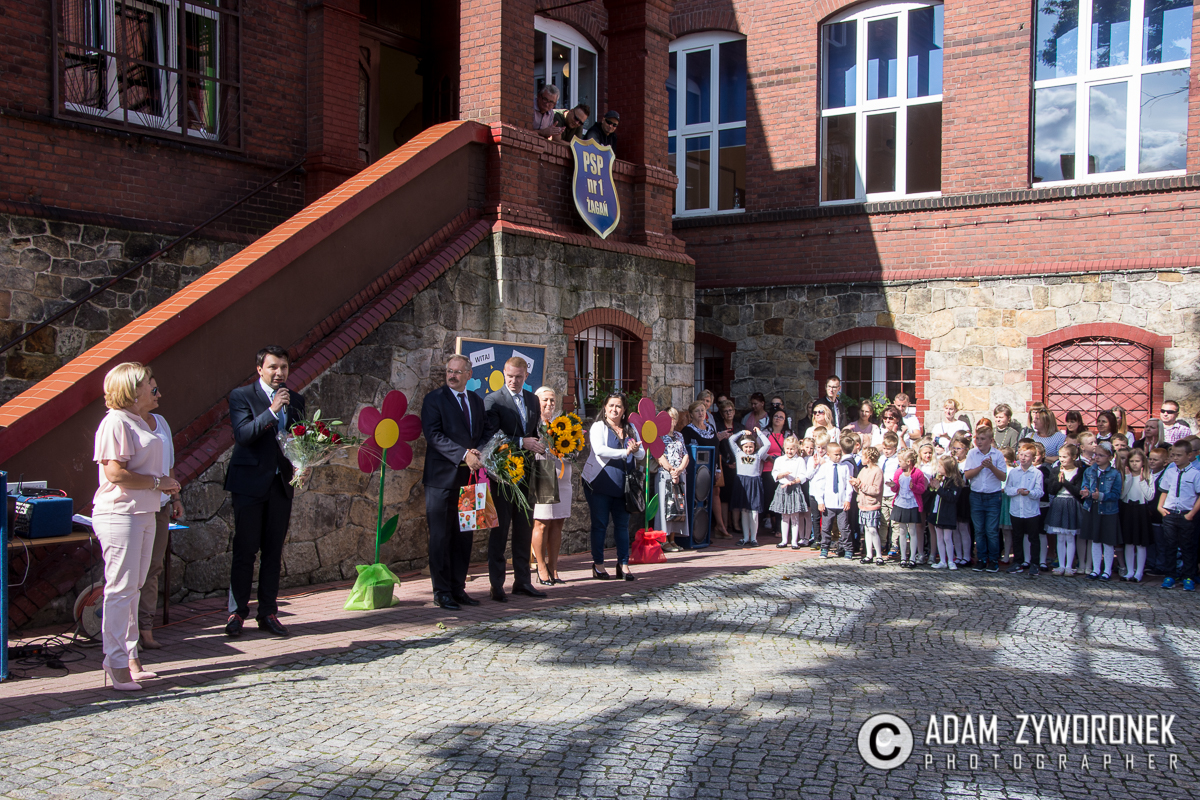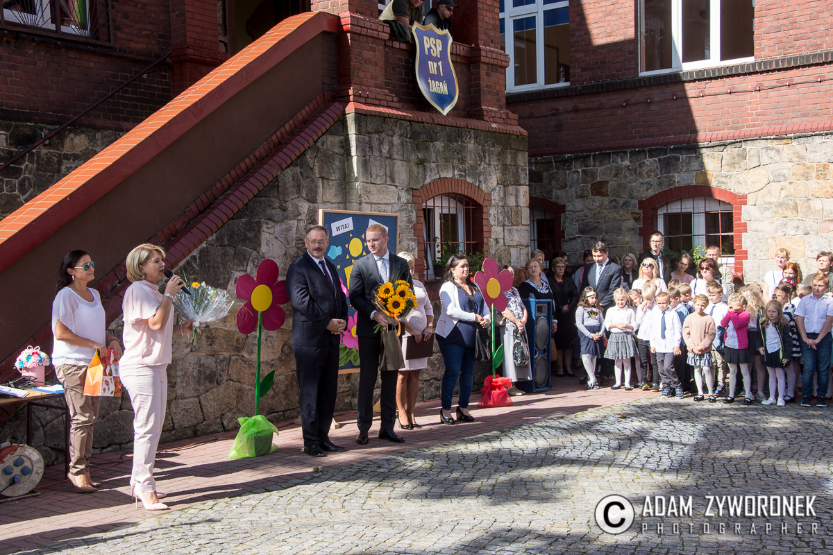 W PSP 1 nie zmienił się ani sztandar, ani patron. Za to do społeczności szkolnej dołączyły po raz pierwszy klasy siódme, które powitała dyrektor Małgorzata Kalinowska. Zaznaczyła, że podczas wakacji wystartowała w konkursie na dyrektora „jedynki”, po upływie swojej pięcioletniej kadencji.
