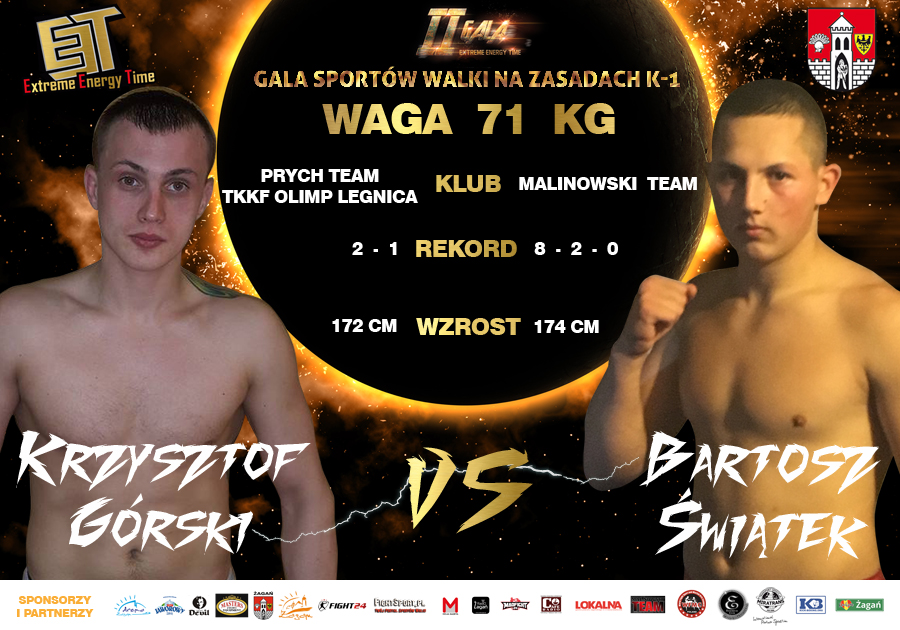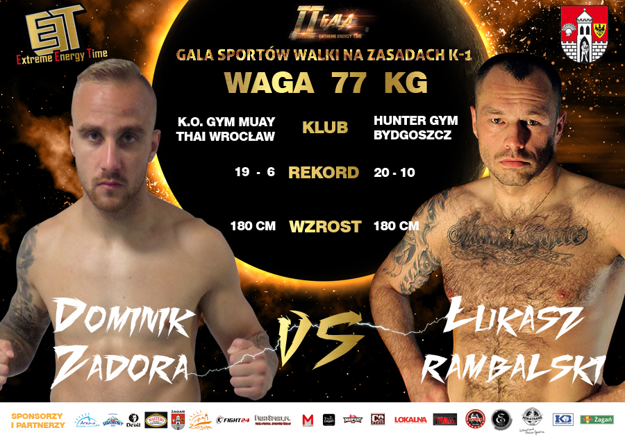Dominik Zadora (Rekord: zawodowe / pro-am 19-6 / 60-3) Podczas I Gali EET stoczył walkę z Białorusinem Pavlem Oboźnym. Zadora to utalentowany zawodnik, z ogromnym doświadczeniem, między innymi: czterokrotny mistrz Polski Muay Thai, zdobywca Pucharu Świata WKF, zawodowy mistrz Europy ISKA, walki o pas Zawodowego Mistrza Świata WKU i ISKA, zdobywca Pucharu Polski Muay Thai, reprezentant Polski Muay Thai na Mistrzostwach Świata w Tajlandii oraz Mistrzostwach Europy we Włoszech, zwycięzca licznych Gal i Turniejów
