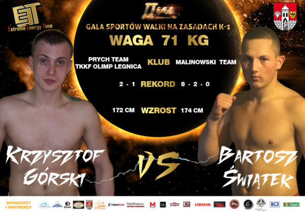 Na Gali w Żaganiu, wystąpią również: Marcin Moskwa, Kacper Muszyński, Fabio Di Lalla, Krzysztof Górski, Mateusz Dereweńko. Nie zabraknie wojowników z naszego regionu z Klubu Malinowski Team, do ringu wyjadą: Konrad Chałko, Krzysztof Podemski, Krystian Bajerski, Bartosz Świątek, Patryk Kimula i Marcin Kujda.