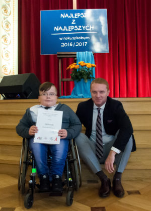 Filip Kowalik z PSP 5 jeździ na wózku. Jest nie tylko wspaniałym uczniem, ale również sportowcem. – Gram w bocce, a moim największym sukcesem jest pierwsze miejsce w mistrzostwa Polski juniorów i juniorów młodszych niepełnosprawnych w pływaniu w Tychach.