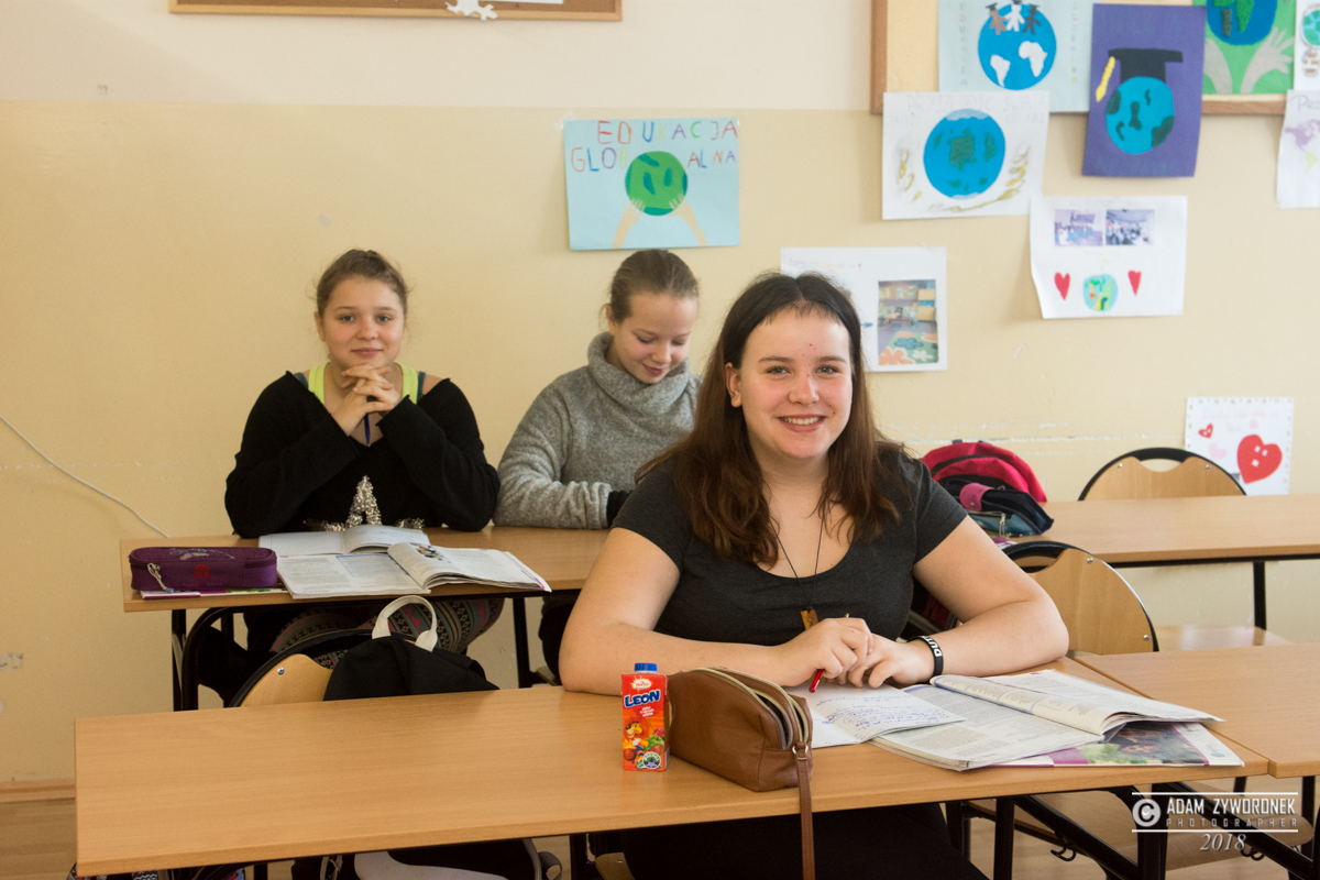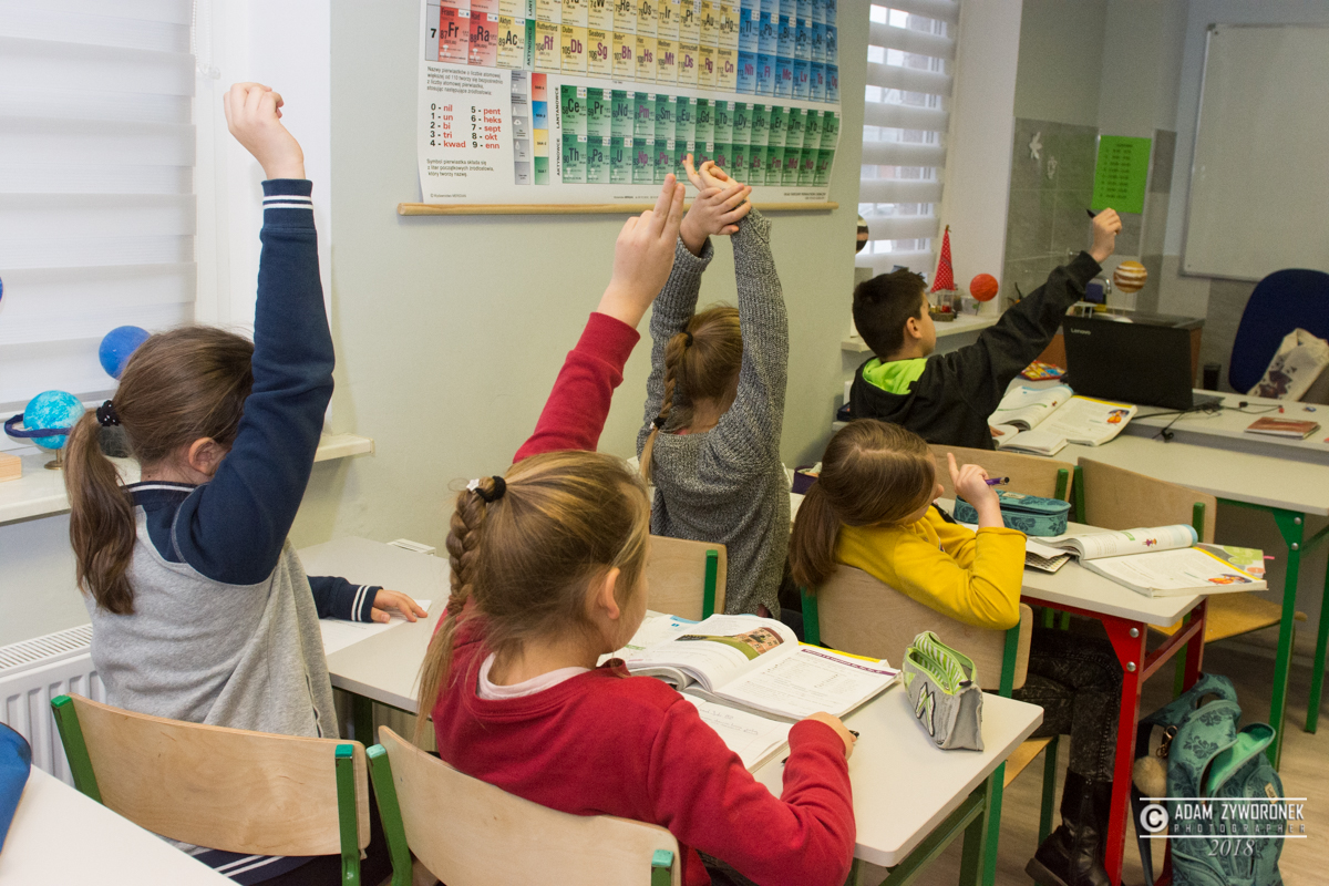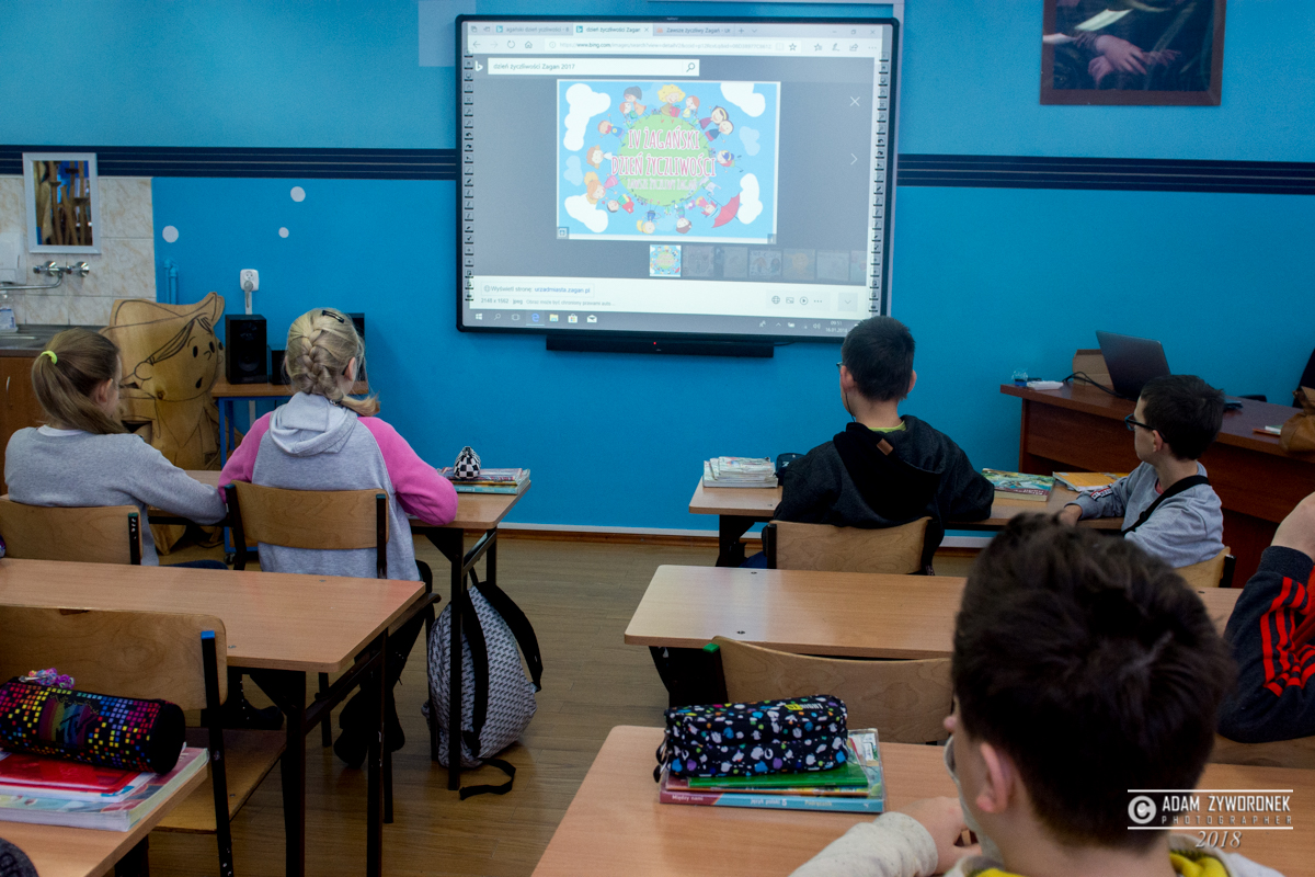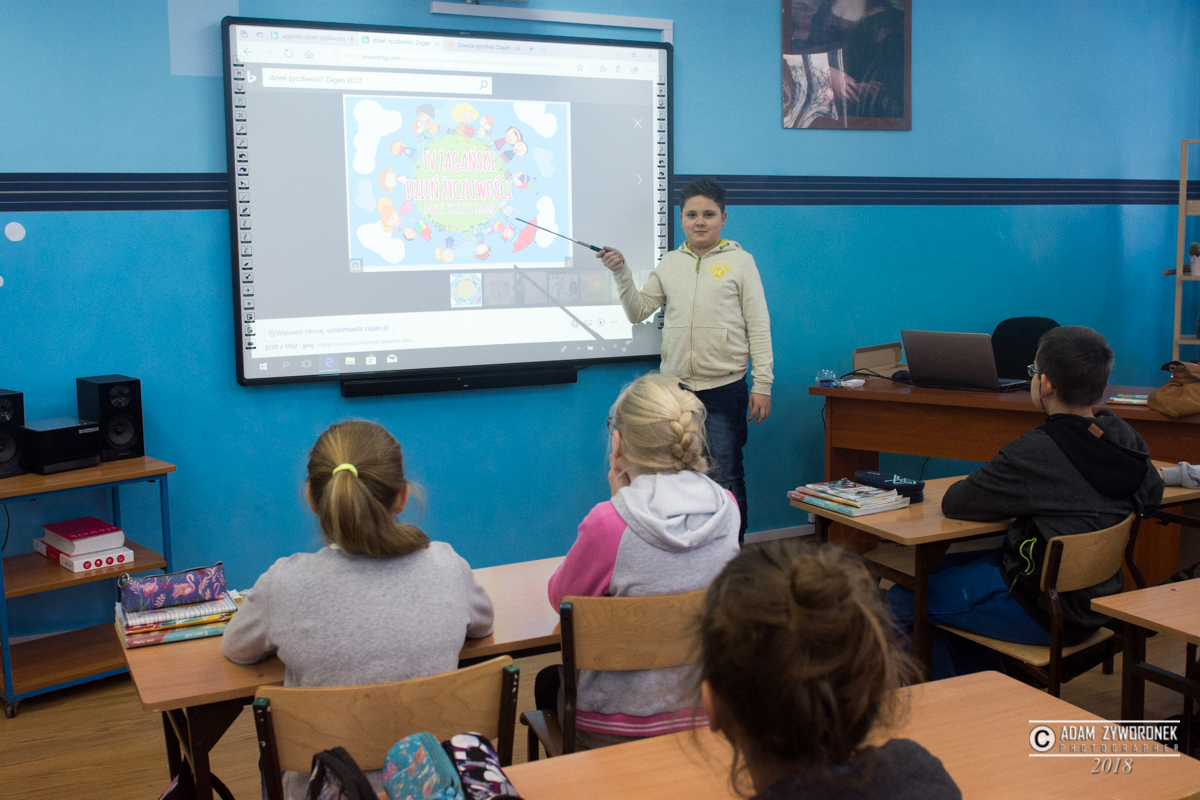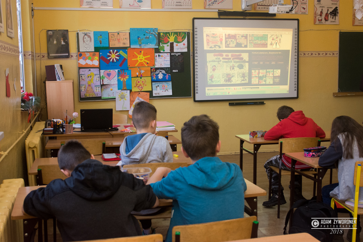 Kacper Reszka z klasy Vb, podczas zajęć z języka angielskiego z panią Gabrielą Klessą  zaznacza, że z pomocą tablic łatwiej uczyć się języków. – Oglądamy filmy, słuchamy piosenek – stwierdza.