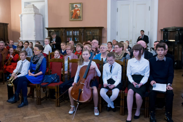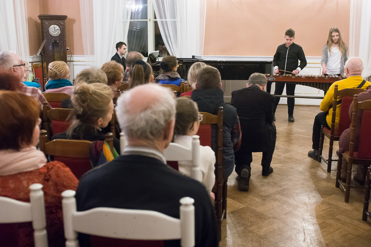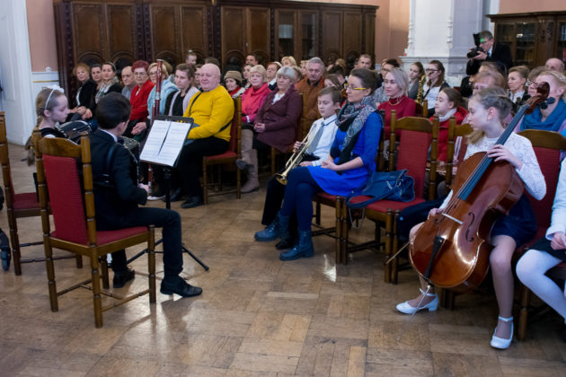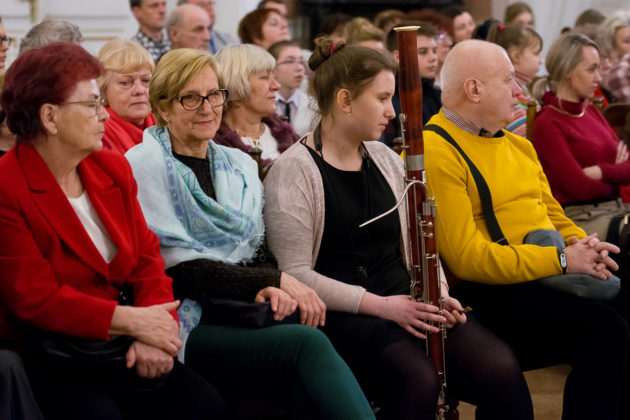 Jak co roku od kilku już lat, PSM I i II st. zaprosiła na specjalny koncert z okazji Dnia Babci i Dziadka żagańskich seniorów – nie tylko babcie i dziadków naszych uczniów, ale także słuchaczy Uniwersytetu Trzeciego Wieku oraz pensjonariuszy Ośrodka Pomocy Społecznej. Zorganizowała go Sekcja Instrumentów Dętych, Akordeonu i Perkusji, do której przyłączyli się przedstawiciele Samorządu Uczniowskiego. Impreza miała miejsce w poniedziałek – 22 stycznia br. – w Sali Familijnej Żagańskiego Pałacu Książęcego. Licznie zgromadzeni słuchacze wysłuchali wielu pięknych utworów, go których zostały dołączone najlepsze życzenia dla wszystkich (naszych i nie tylko!) babć i dziadków. Wracali oni do domów w doskonałych humorach, a najbardziej zadowoleni byli ci, którzy mogli podziwiać własnych wnuków. Babcie i dziadkowie! Dziękujemy Wam za to, że i Wy wspomagacie swoje wnuki w zdobywaniu muzycznych umiejętności!