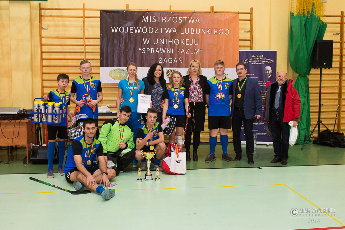 Ubiegłoroczni mistrzowie ze Specjalnego Ośrodka Szkolno-Wychowawczego im. J. Korczaka w Żaganiu awansowali do fazy finałowej. W półfinałach, już po rozluźnieniu i oswojeniu z pełnowymiarowym boiskiem zaczęli strzelać piękne bramki. W walce o finał pokonali Żary 6:0, by w finale pokonać 3:0 odwiecznych rywali ze Świebodzina, którym w fazie grupowej ulegli 0:1. Brązowe medale zdobyli hokeiści ze Strzelec Krajeńskich wygrywając z w finale „B” Żarami 3:0. Kolejne miejsca zajęli: Gubin, Słubice, Krosno Odrzańskie i Szprotawa. Najlepszą zawodniczką Turnieju została Ewelina Bańkowska ze Świebodzina, a wśród chłopców brylowali żaganianie. Najlepszym bramkarzem zawodów został Szymon Kusiak, a tytuł najlepszego zawodnika przypadł Krzysztofowi Skorupie, który podobnie jak Stanisław Kukla również z SOSW w Żaganiu strzelił 7 bramek. Pięknym gestem Fair Play wykazały się: trenerka ze Świebodzina – Katarzyna Lachowicz i jej zawodniczka, która wycofała się z gry w meczu ze Szprotawą, po kontuzji ich zawodniczki Emilii Tomaszewskiej, co spotkało się z aplauzem kibiców, sędziów, trenerów i zawodników rywalizujących drużyn. W organizacji rozgrywek pomagali wolontariusze z Liceum Ogólnokształcące im. Stefana Banacha w Żaganiu, prowadzeni przez pedagog Alicję Delost. Skład zwycięskiej drużyny z Żagania stanowili: Stanisław i M. Kukla, K. Skorupa, Patryk Najdek, Kinga Kluska, Mateusz Zarucki i bramkarz S. Kusiak. Zwycięzców do unihokejowych sukcesów przygotowali trenerzy Monika Nowotna i Wojciech Olejarz, który odpowiadał też za przygotowanie i przeprowadzenie mistrzostw. Żagański turniej, to również kwalifikacja do Mistrzostw Polski w Elblagu, gdzie w grudniu 2017 r. najlepsza lubuska drużyna z SOSW w Żaganiu zdobyła brązowe medale. W tym roku walka o podium w Elblągu będzie trudniejsza, bo multimedaliści: Szymon Kusiak i Krzysiek Skorupa kończą już edukację gimnazjalną. Chłopcy otrzymali w ostatnich dniach propozycje od trenerów i nauczycieli z SOSW w Gorzowie i SOSW im. J. Korczaka w Strzelcach Krajeńskich, by tam – w szkole branżowej – rozwijali swoje sportowe pasje. Nie mogą zostać w Żaganiu, ponieważ nie ma szkoły branżowej.