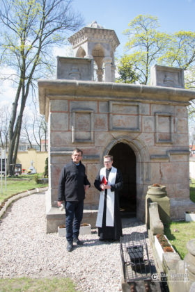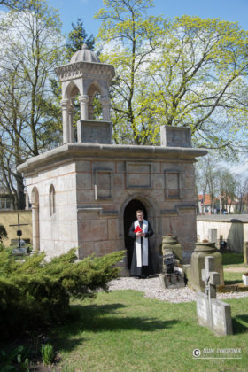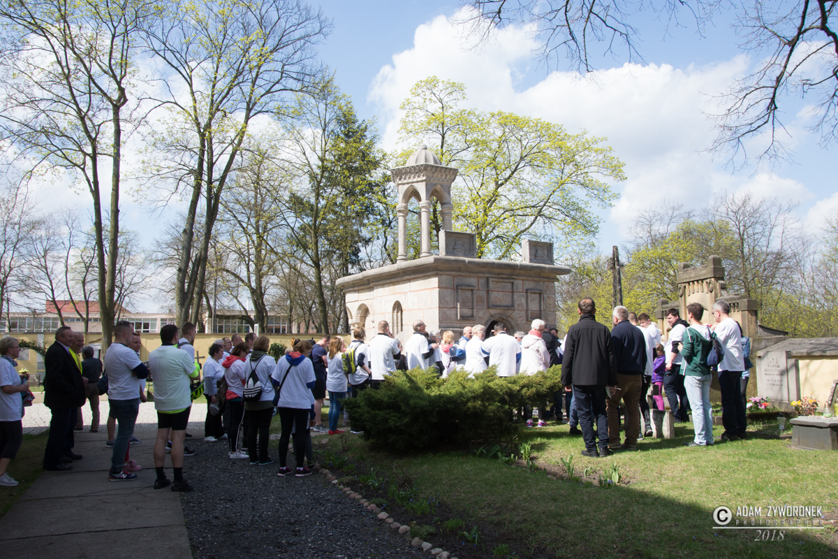Ks. dr. Jarosław Stoś opowiedział pielgrzymom o tajemnicy zmartwychwstania i historii żagańskiej kaplicy Bożego Grobu, która jest repliką zabytku znajdującego się w Jerozolimie.