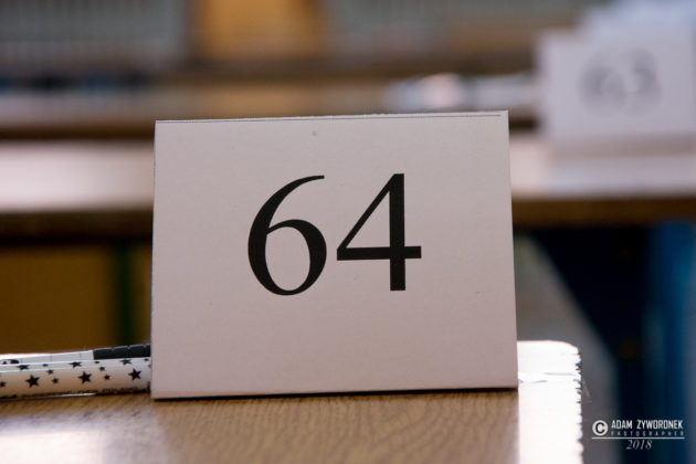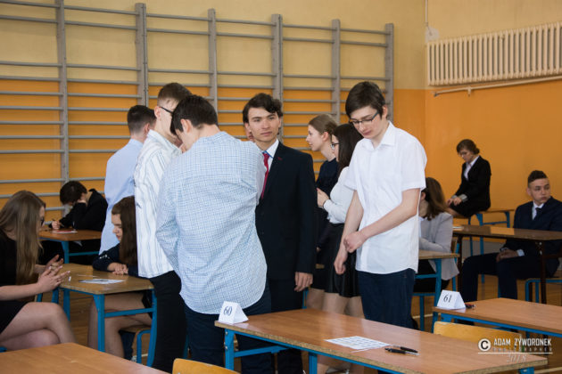 Prawidłowość zapieczętowania arkuszy sprawdzili przedstawiciele piszących, z poszczególnych sal: Marek i Łukasz Maciołkowie, Krystian Szaniawski, Emilka Jaszczuk i Kacper Grzebień. Następnie trafiły one do egzaminowanych.