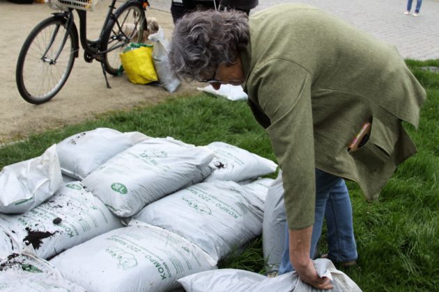 Kilkuset uczniów żagańskich szkół i wychowanków przedszkoli wzięło udział w cyklicznej imprezie przed Pałacem Książęcym, organizowanej przez Urząd Miasta Żagań, Miejskie Przedsiębiorstwo Oczyszczania i Robót Drogowych, Zakład Zagospodarowania Odpadów w Marszowie oraz Centrum Kultury i spółką Pałac Książęcy. Jak co roku największym powodzeniem wśród dorosłych cieszyła się darmowa ziemia do kwiatów. Zainteresowani czekali na nią już od godz. 9.00. – To ziemia wyprodukowana z wysegregowanych odpadów zielonych mieszkańców, dostarczonych do ZZO – tłumaczy Michał Szczotka z Marszowa. – Trafiają one do naszej kompostowni, w której poddawane są procesowi kompostowania, następnie przez dwa miesiące są przetwarzane i napowietrzane na naszym placu.