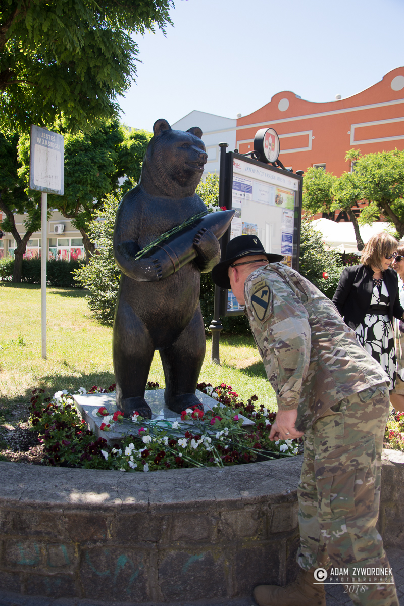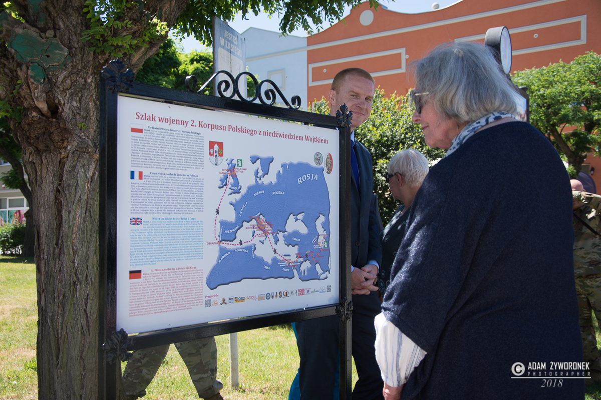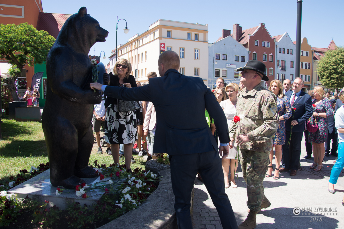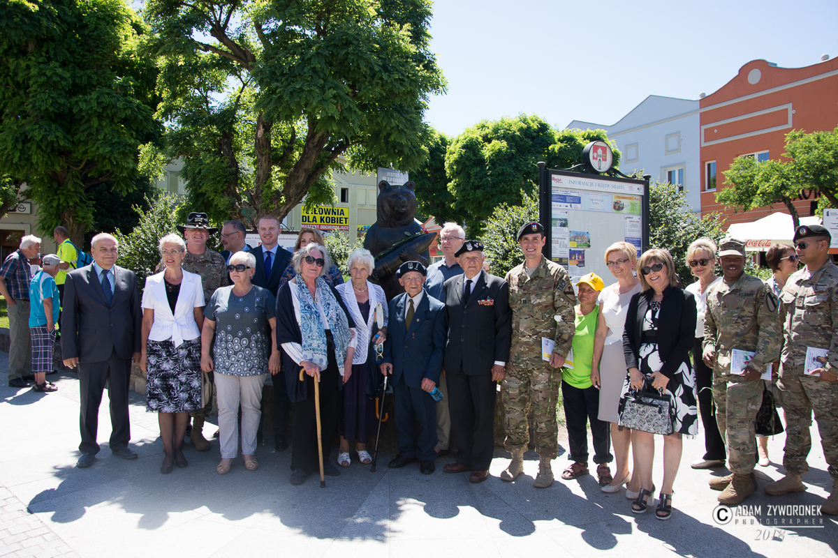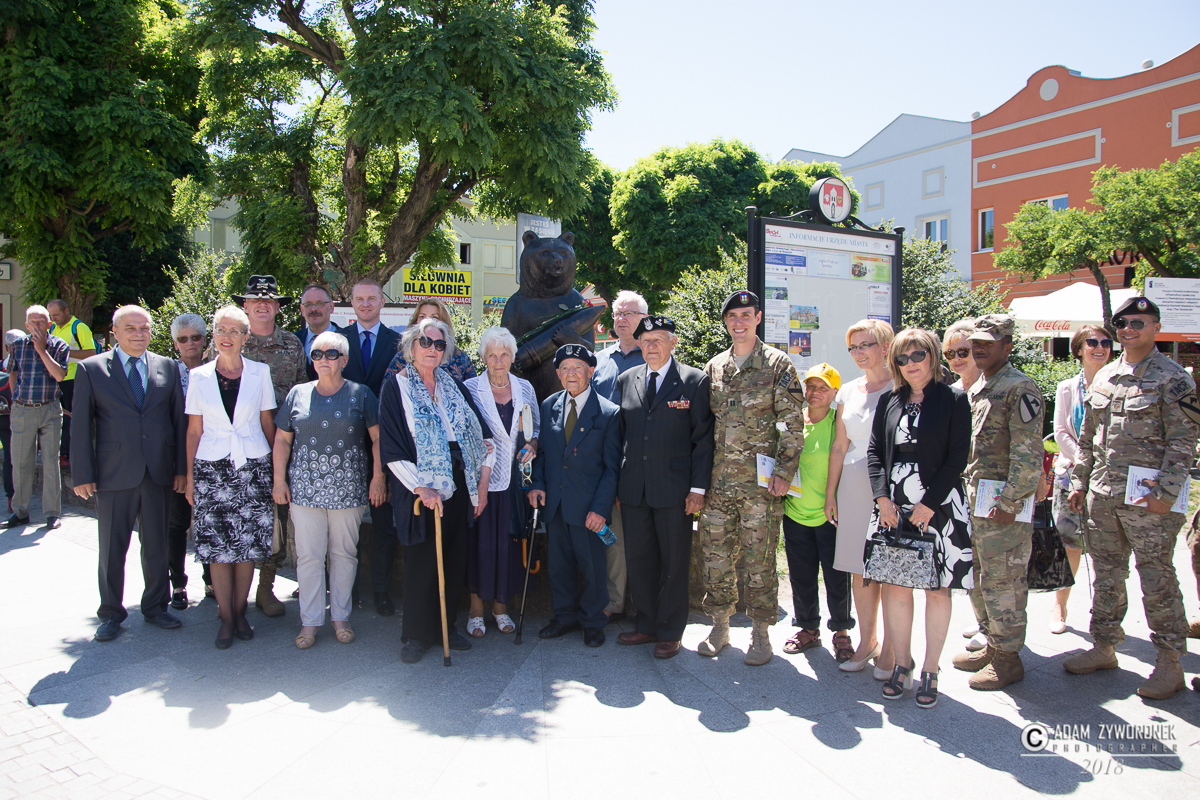 W uroczystości prowadzonej przez Karolinę Gałązkę wzięła również udział duża grupa żołnierzy amerykańskich z Ironhorse Brigade z dowódcą pułkownikiem Wilsonem Rutherfordem, który wraz z burmistrzem, lady McEwan i innymi odsłonił tablicę pamiątkową, która w czterech językach opowiada historię niedźwiedzia. Stanęła ona obok pomnika.