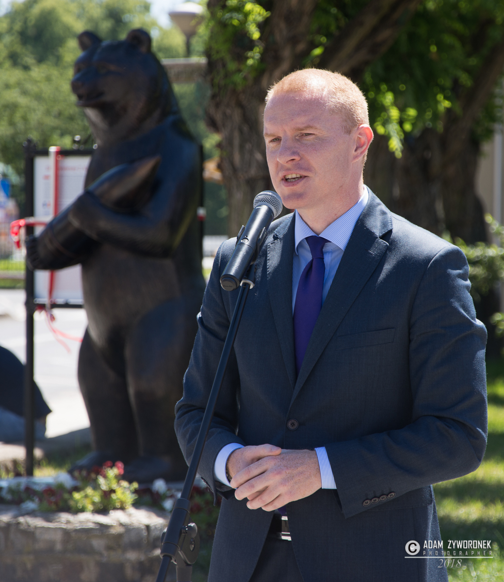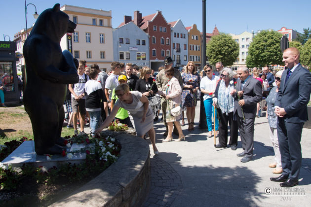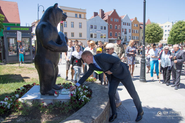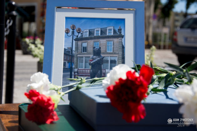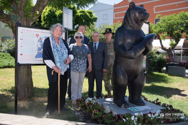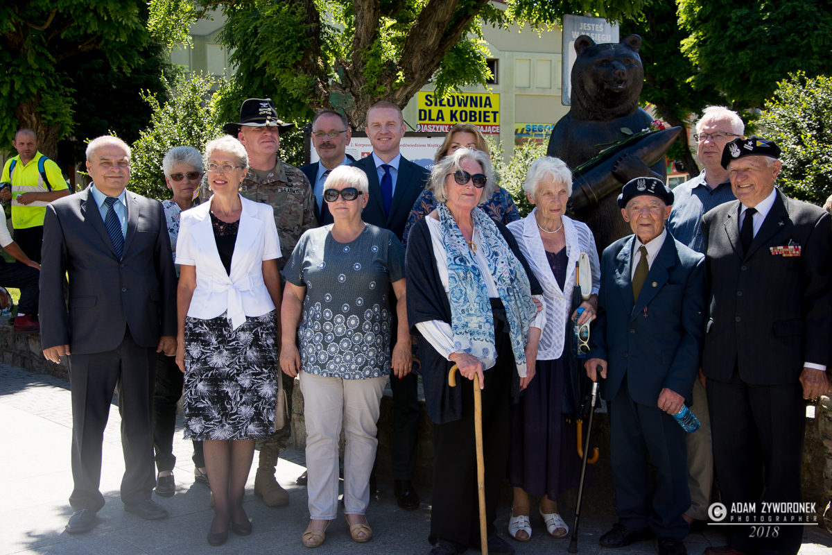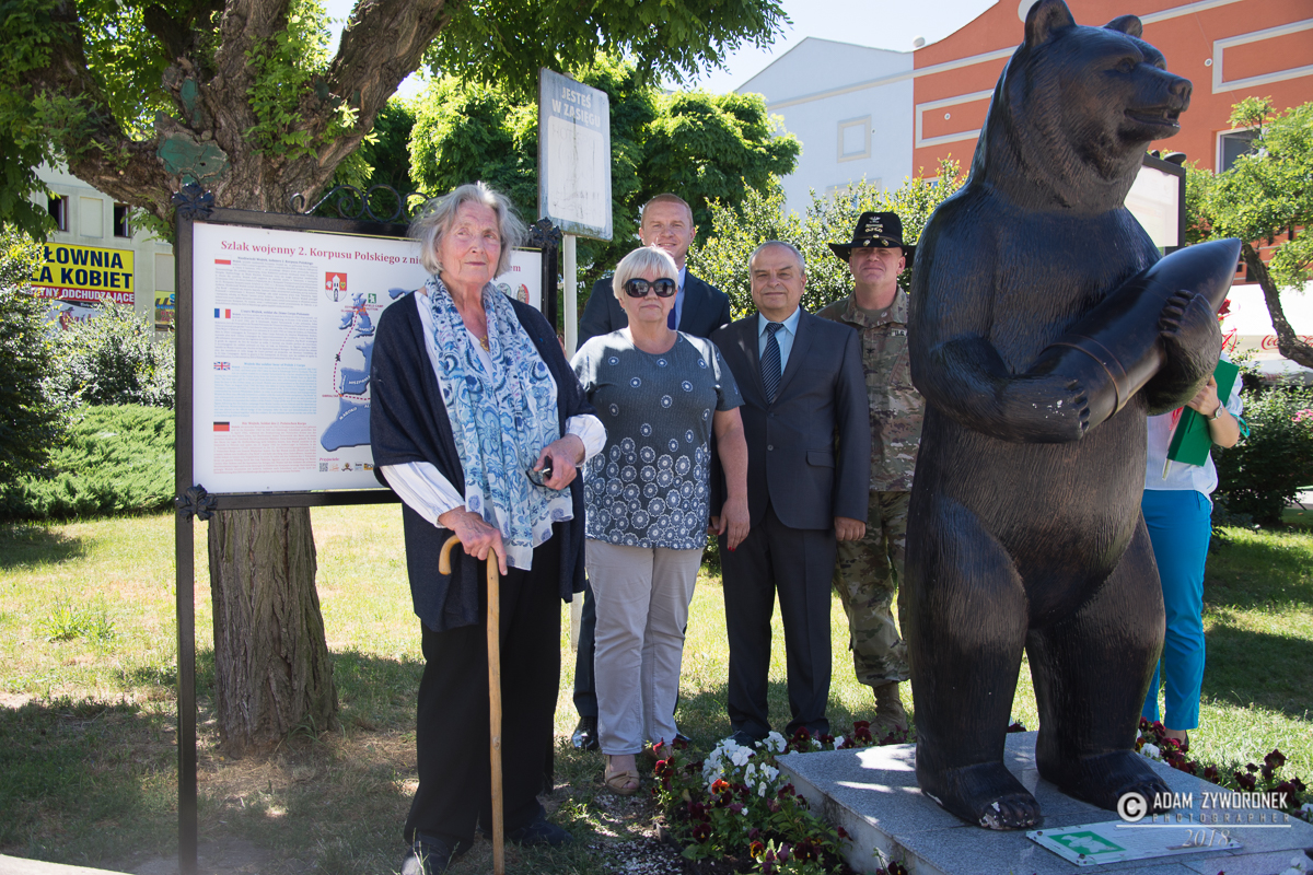 W uroczystości prowadzonej przez Karolinę Gałązkę wzięła również udział duża grupa żołnierzy amerykańskich z Ironhorse Brigade z dowódcą pułkownikiem Wilsonem Rutherfordem, który wraz z burmistrzem, lady McEwan i innymi odsłonił tablicę pamiątkową, która w czterech językach opowiada historię niedźwiedzia. Stanęła ona obok pomnika.