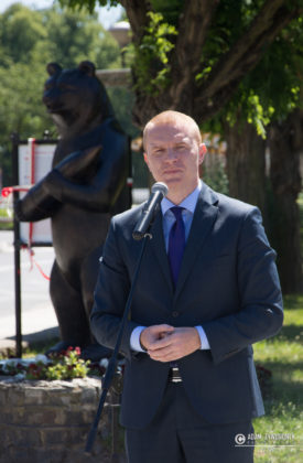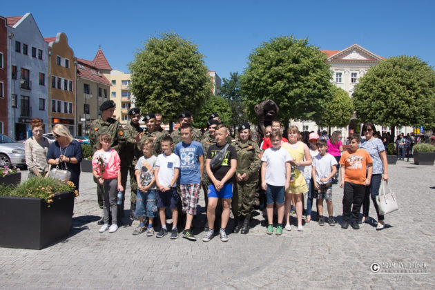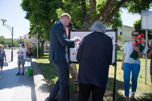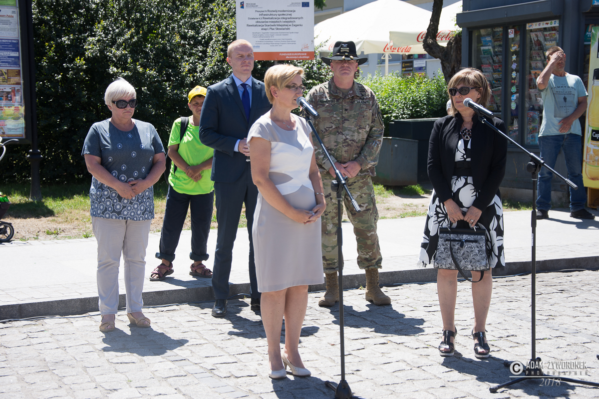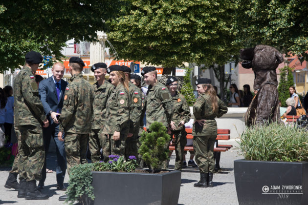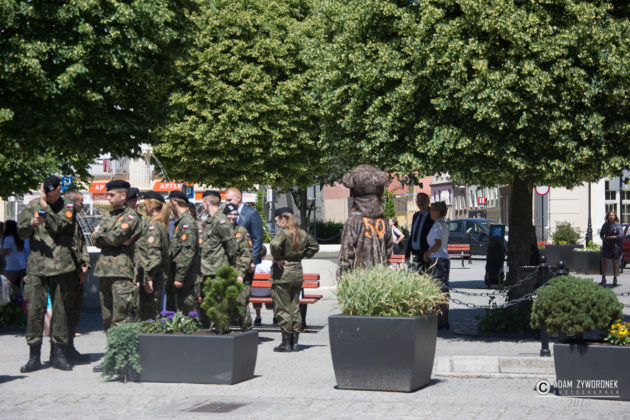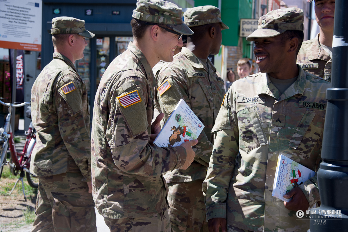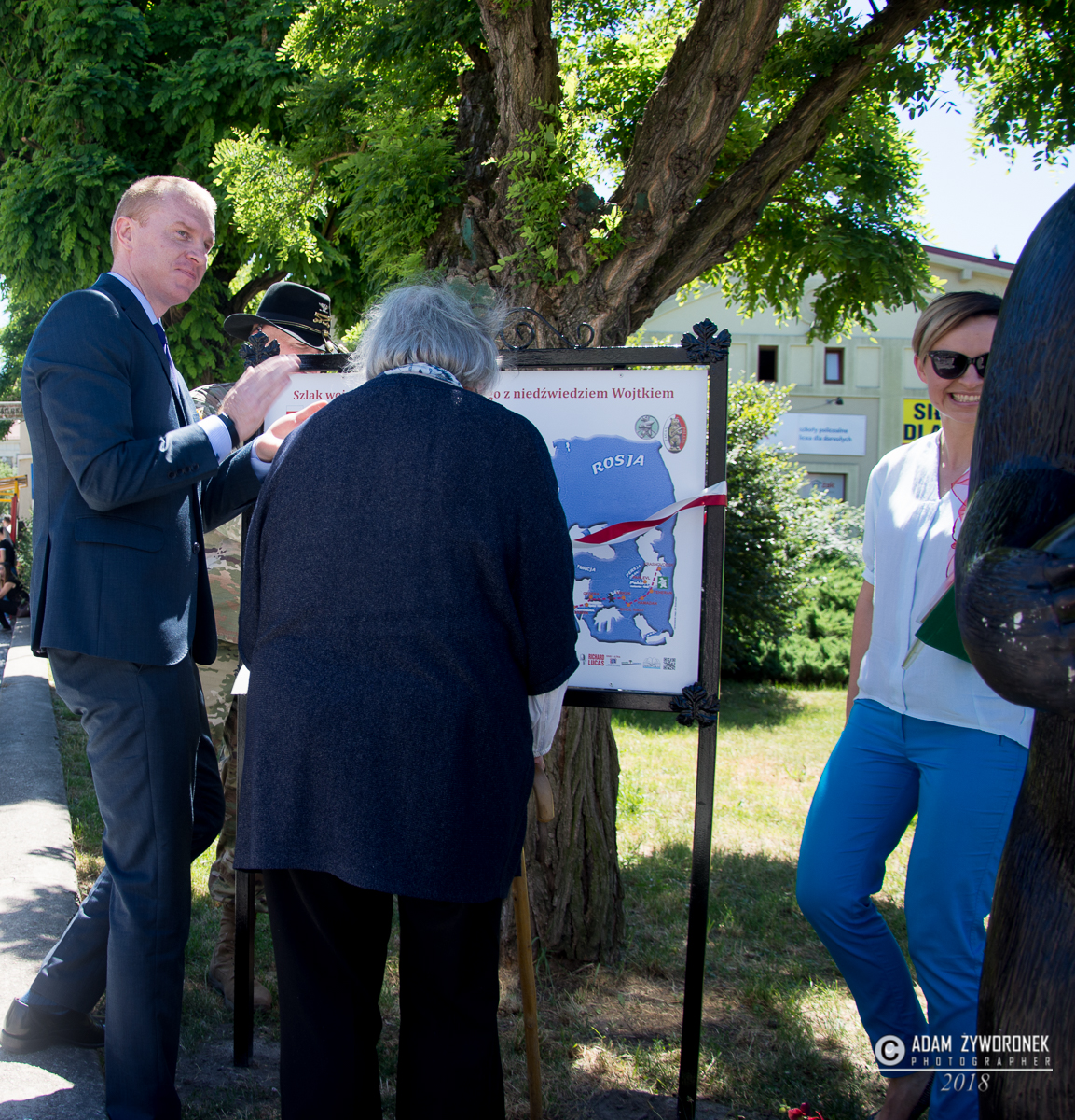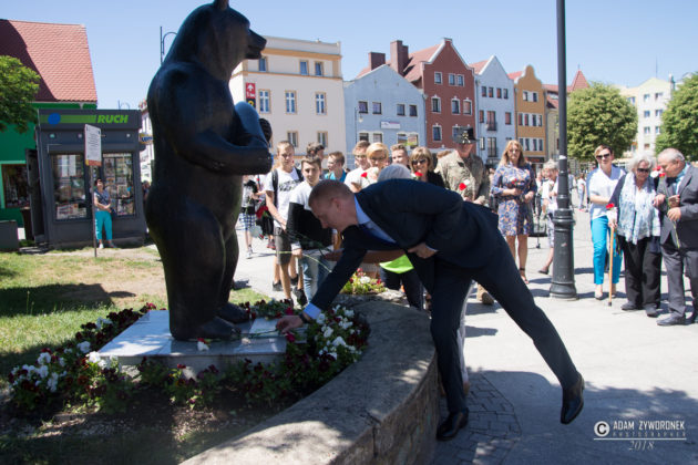 W uroczystości prowadzonej przez Karolinę Gałązkę wzięła również udział duża grupa żołnierzy amerykańskich z Ironhorse Brigade z dowódcą pułkownikiem Wilsonem Rutherfordem, który wraz z burmistrzem, lady McEwan i innymi odsłonił tablicę pamiątkową, która w czterech językach opowiada historię niedźwiedzia. Stanęła ona obok pomnika.