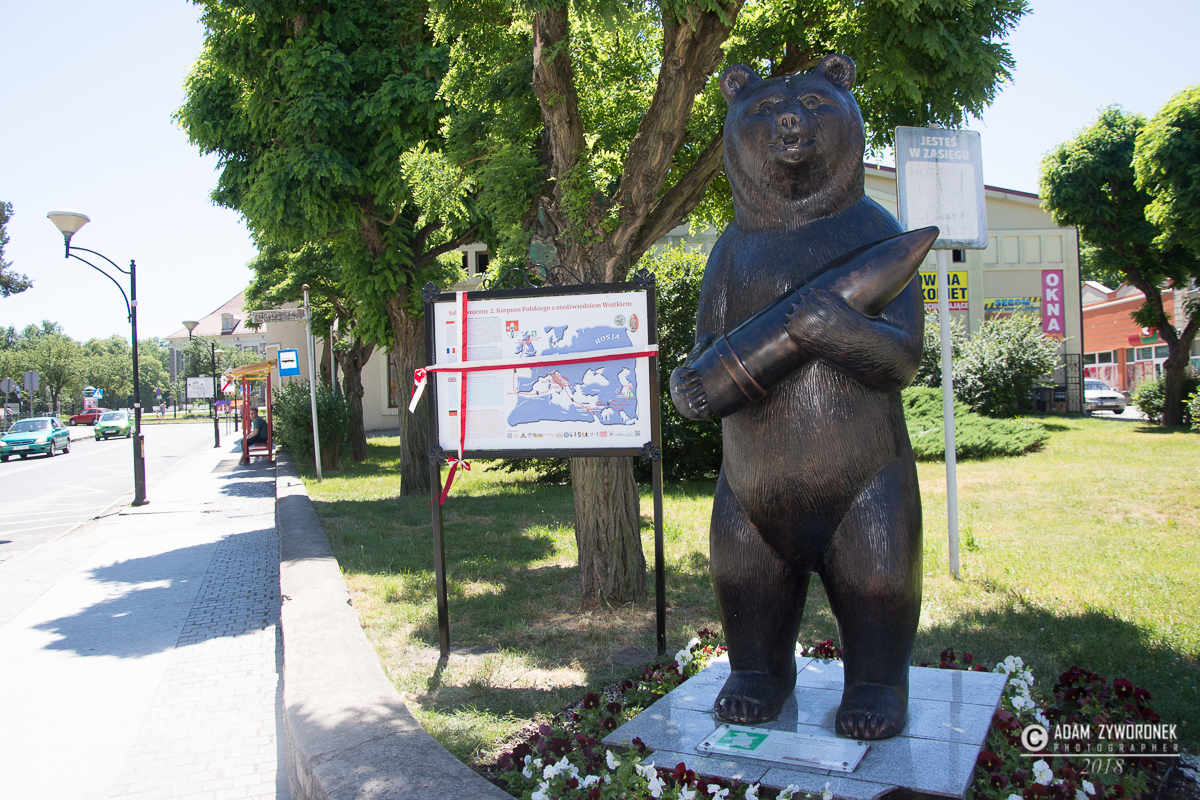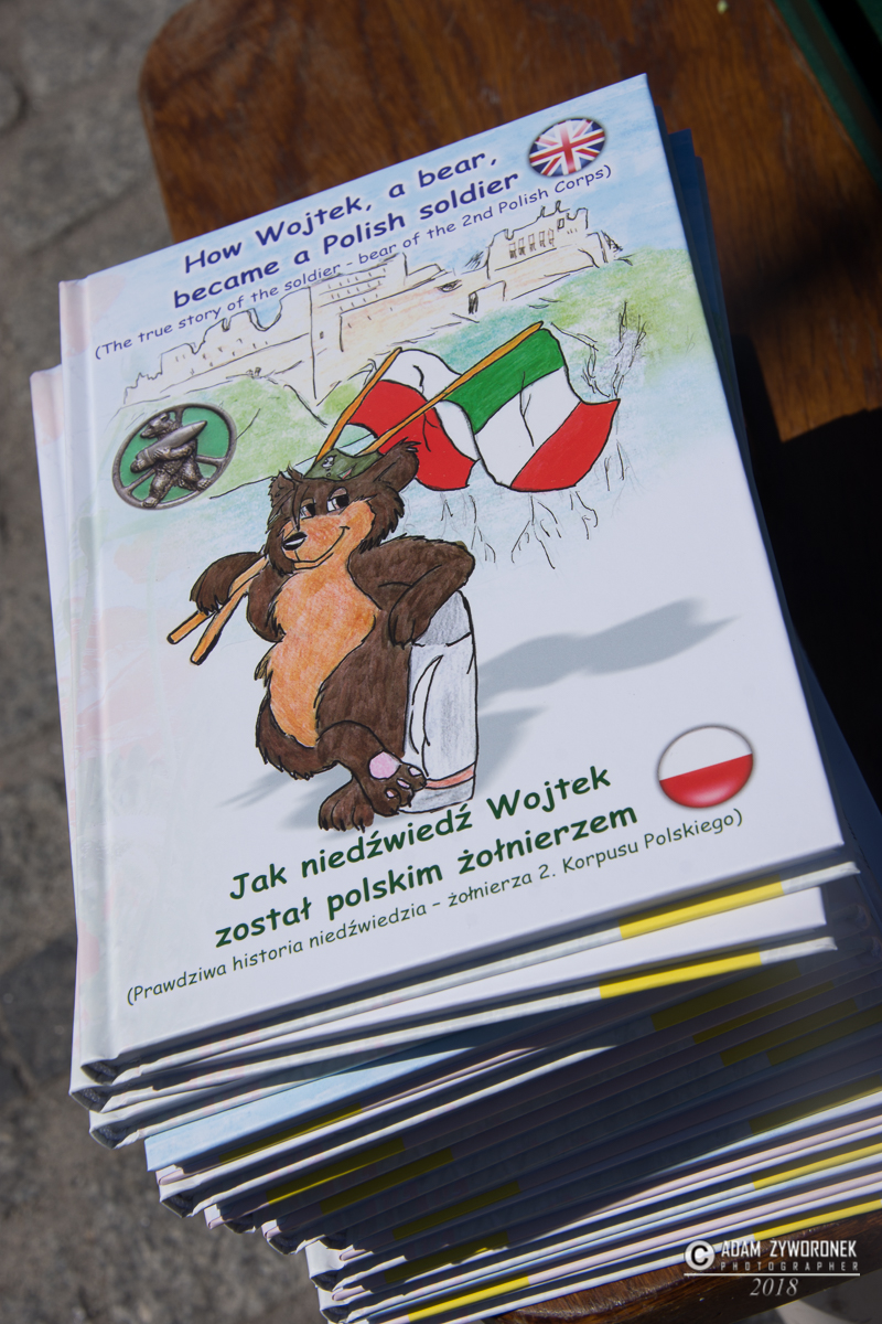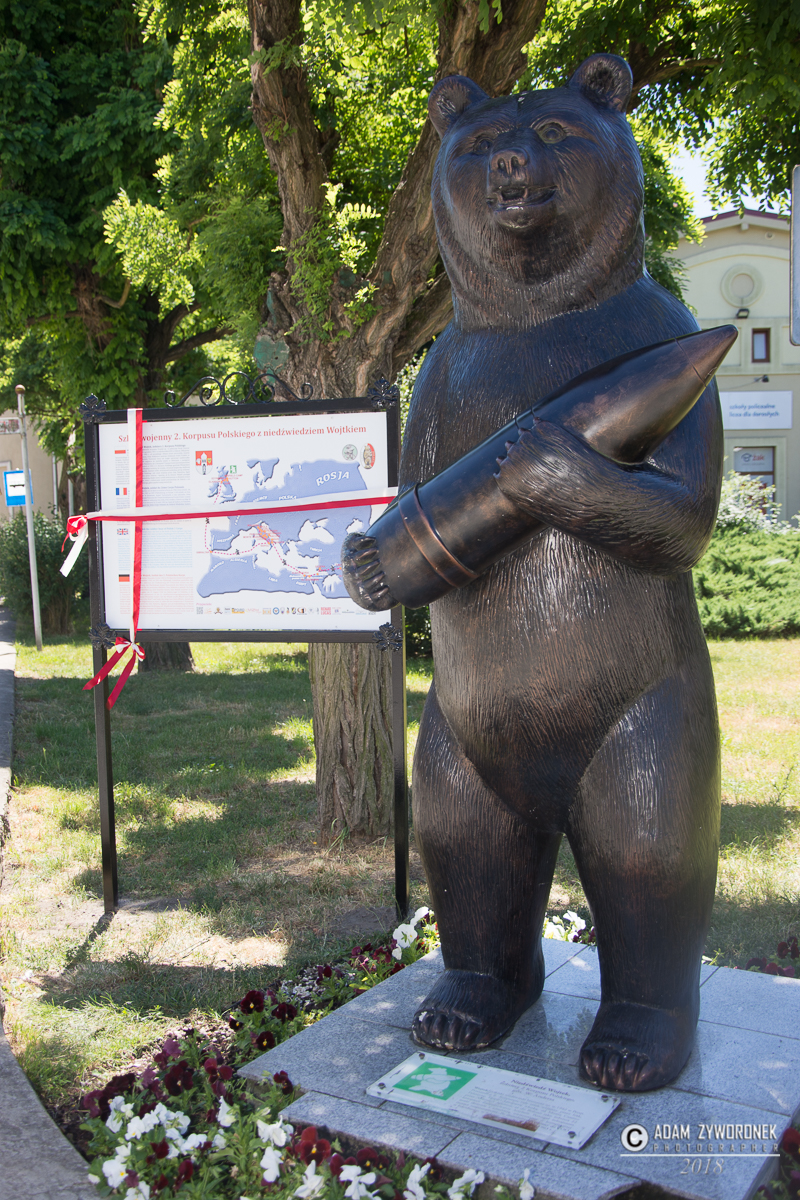 Gdy trafił do 22 Kompanii Zaopatrzenia i po raz pierwszy zobaczył Wojtka, misiek był wielkości psa, ale bardzo szybko przerósł swojego imiennika. Urodził się w 1941 roku w Iranie. Polscy żołnierze kupili go za kilka konserw. Przeszedł szlak bojowy z korpusem gen. Andersa, zaś jego opiekunem był kapral Piotr Prendysz. Wraz z nim Wojtek jeździł wojskową ciężarówką. W 1944 roku kompania wyruszyła okrętami do Włoch, gdzie czekała ją bitwa pod Monte Cassino. Tam niedźwiedź pomagał żołnierzom nosić ciężkie skrzynie z amunicją, na stanowiska bojowe artylerii. Jeden z żołnierzy narysował misia dźwigającego pocisk, który stał się emblematem 22 KZA, a obecnie jest symbolem klasy wojskowej w Zespole Szkół Ponadgimnazjalnych. Młodzież w mundurach wystawiła „wojtkową kompanię” na placu Słowiańskim.