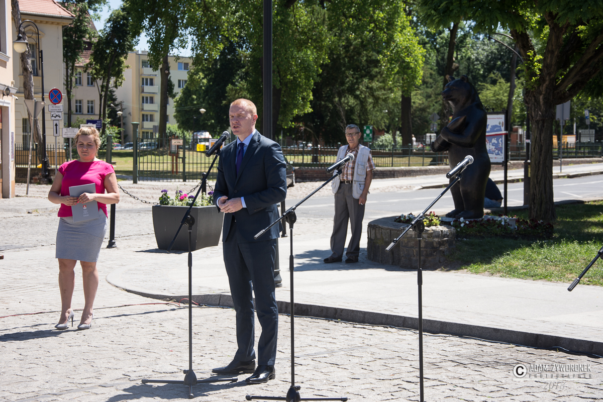 Historia zaczęła się kilka lat temu od wspólnego projektu Wioletty Sosnowskiej i Angeli Ricconi, z włoskiego miasta Imoli. Najpierw powstał komiks opowiadający o wojennych losach niedźwiedzia Wojtka, potem pomnik na skwerze na placu Słowiańskim, zaprojektowany przez W. Sosnowską, a wykonany przez Stanisława Grzesiowskiego. – Gdy byłam dzieckiem nie słyszałam tej historii – powiedziała autorka podczas uroczystości w czwartek 7 czerwca na pl. Słowiańskim. – Ale dzisiaj praktycznie każde dziecko z Żagania zna losy Wojtka.