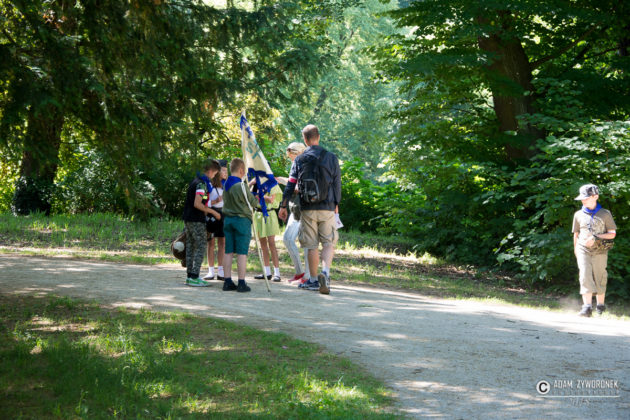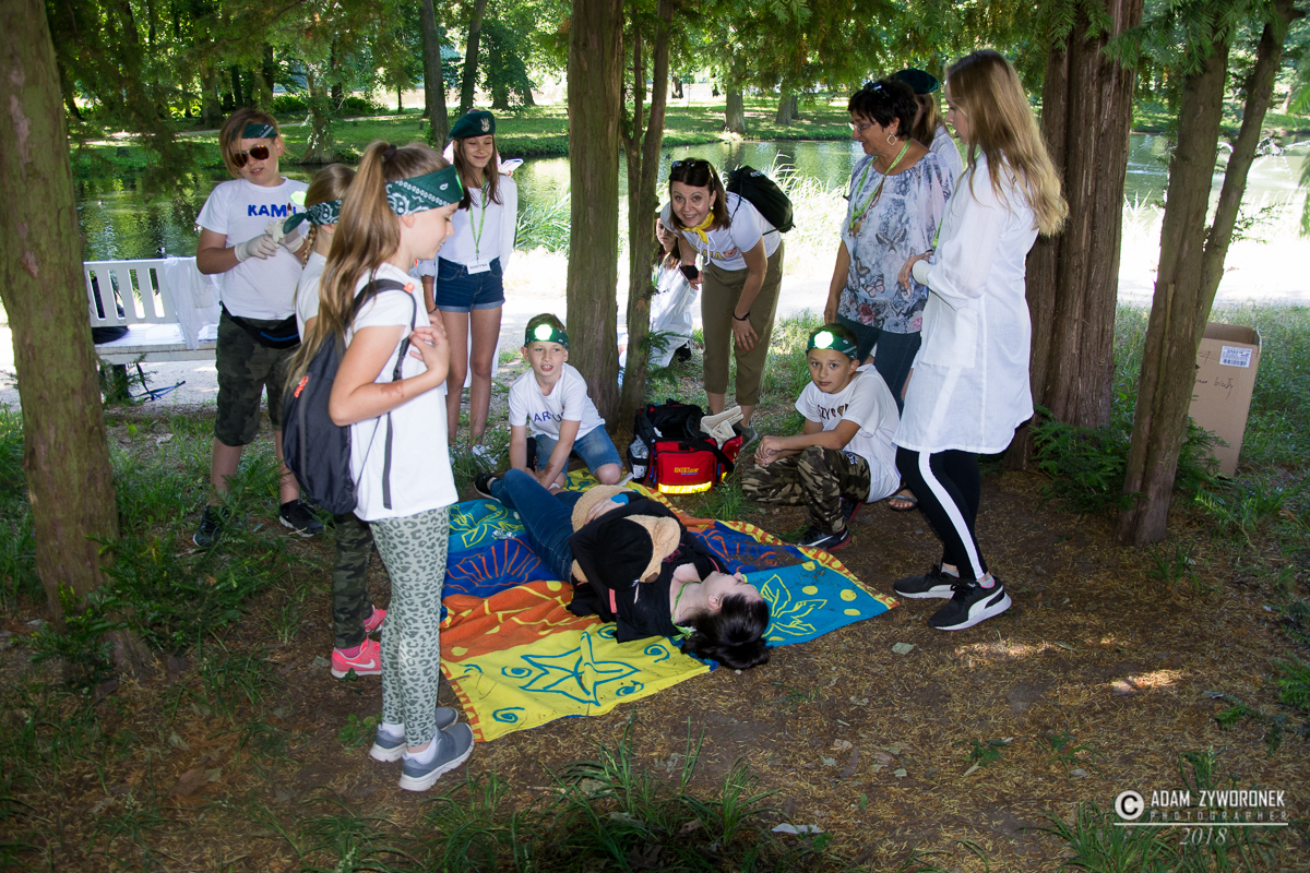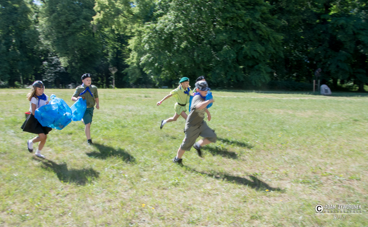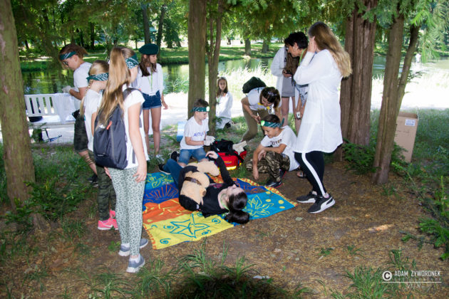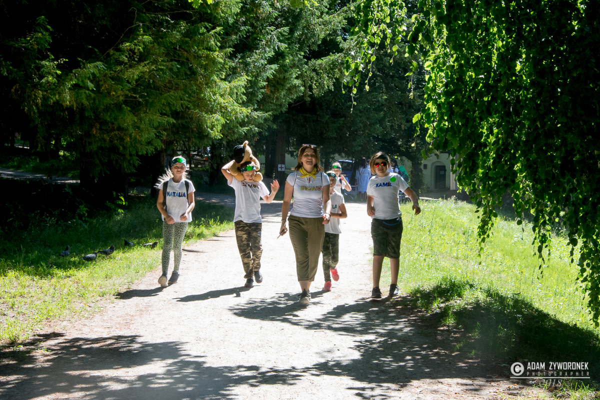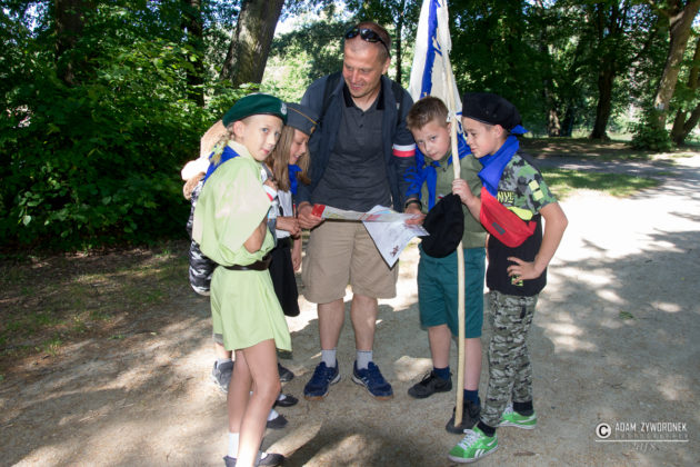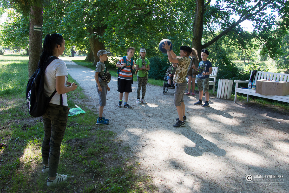 Dzieci doskonale bawiły się w parku podczas gry terenowej.