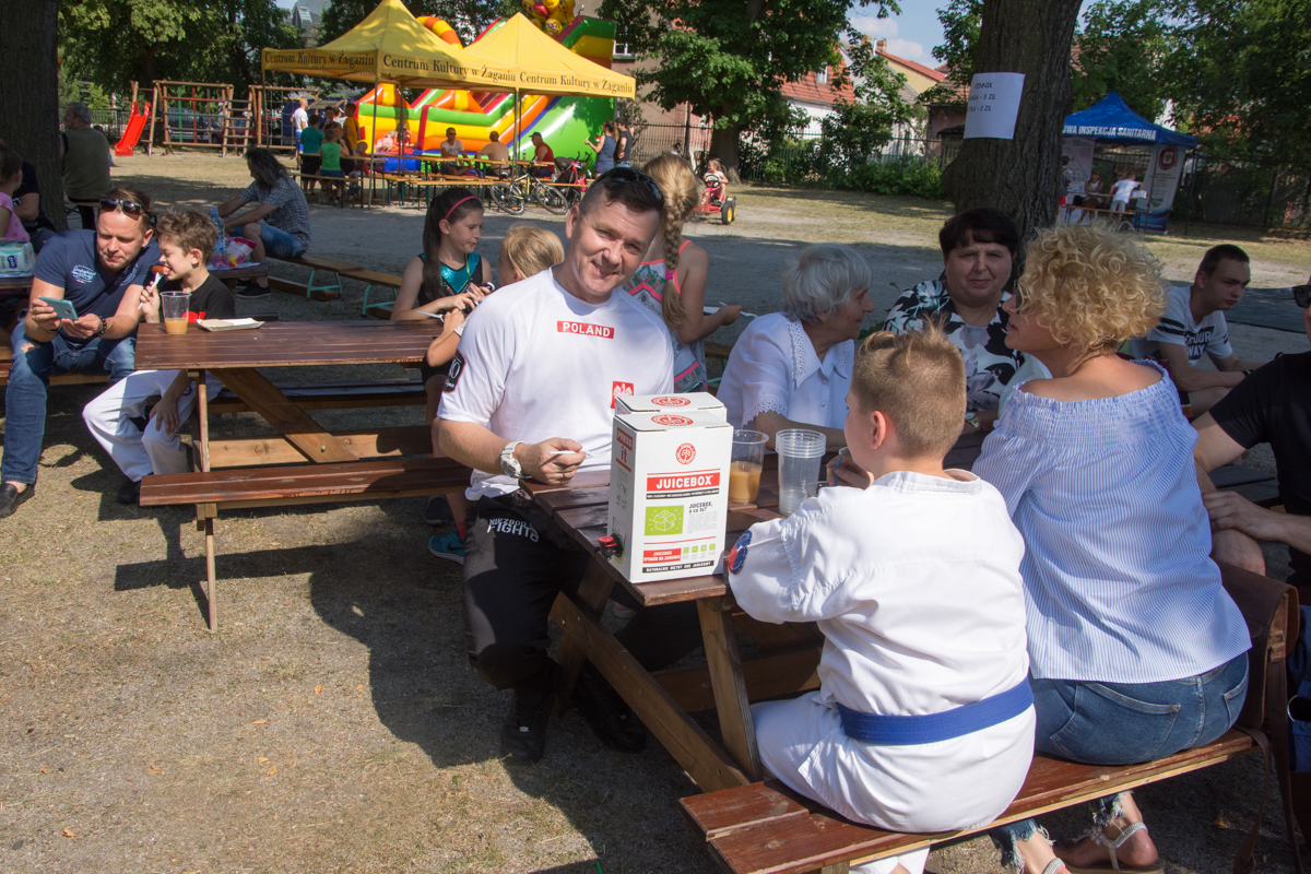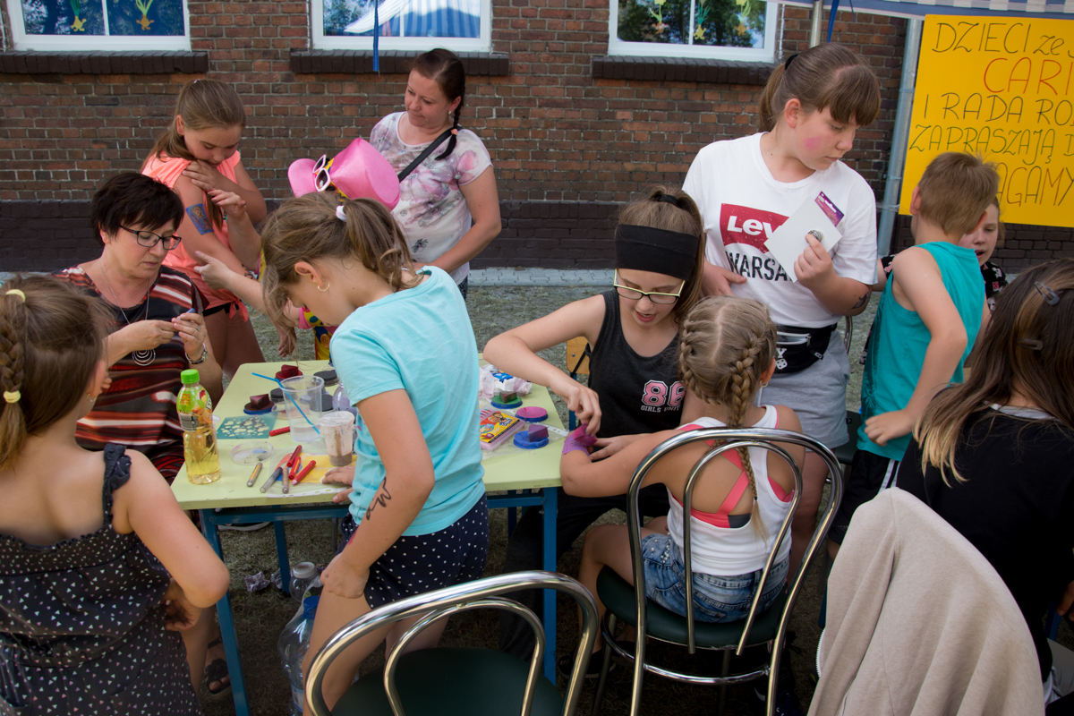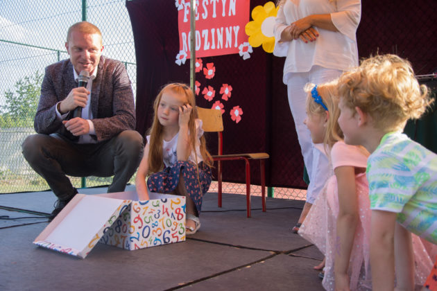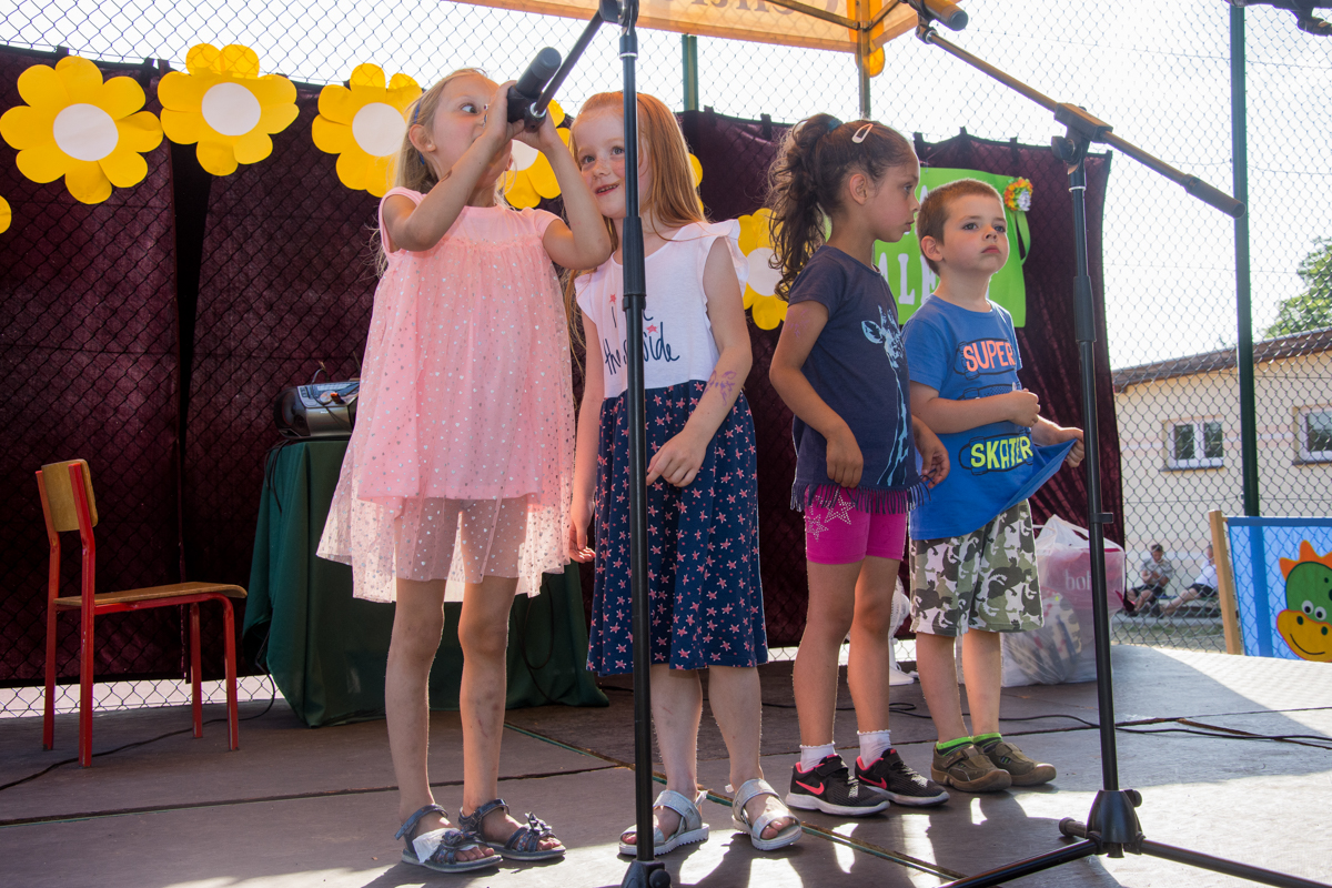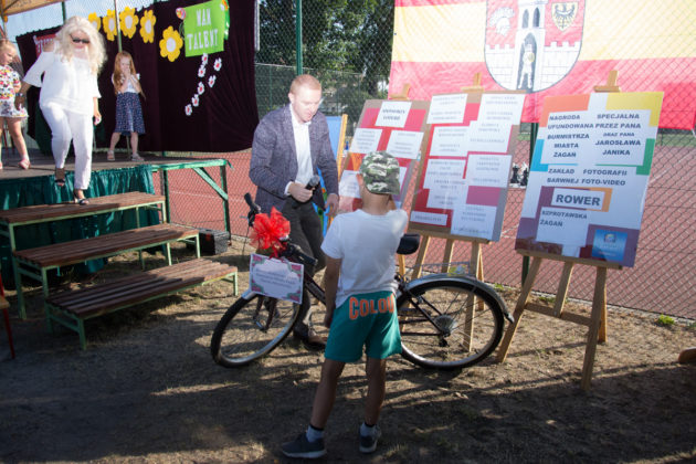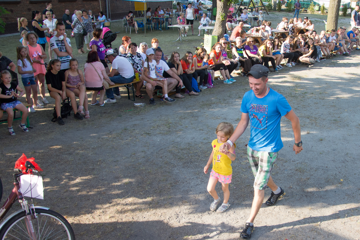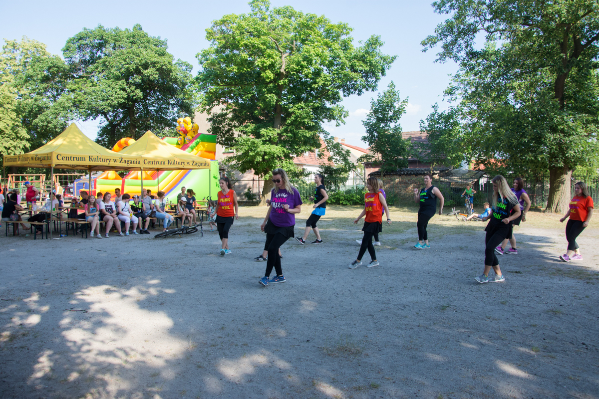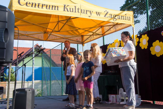 Dorośli i dzieci mogli skorzystać z zabaw sportowych i konkursów. Na scenie wystąpili m.in. podopieczni Artura Niezgody, a na szkolnym podwórku można było zatańczyć zumbę, czy też kupić tanio książkę. Pielęgniarka Barbara Backiel mierzyła ciśnienie. Najwięcej emocji wywołała loteria fantowa, w której główną nagrodą były rowery. Jeden ufundowany przez Daniela Marchewkę Burmistrza Miasta Żagań, drugi przez lokalnego przedsiębiorcę. W losowaniu pomagał burmistrz, który przyjechał na festyn z dyrektorem Zbigniewem Białkowskim.