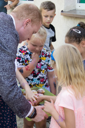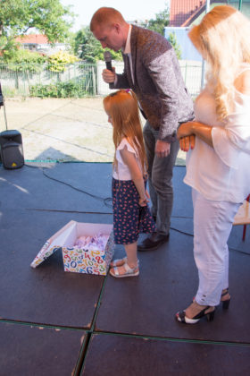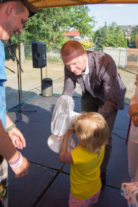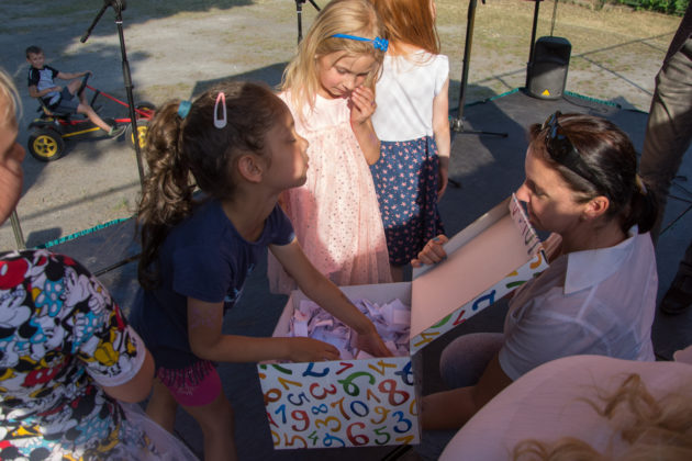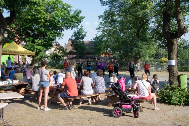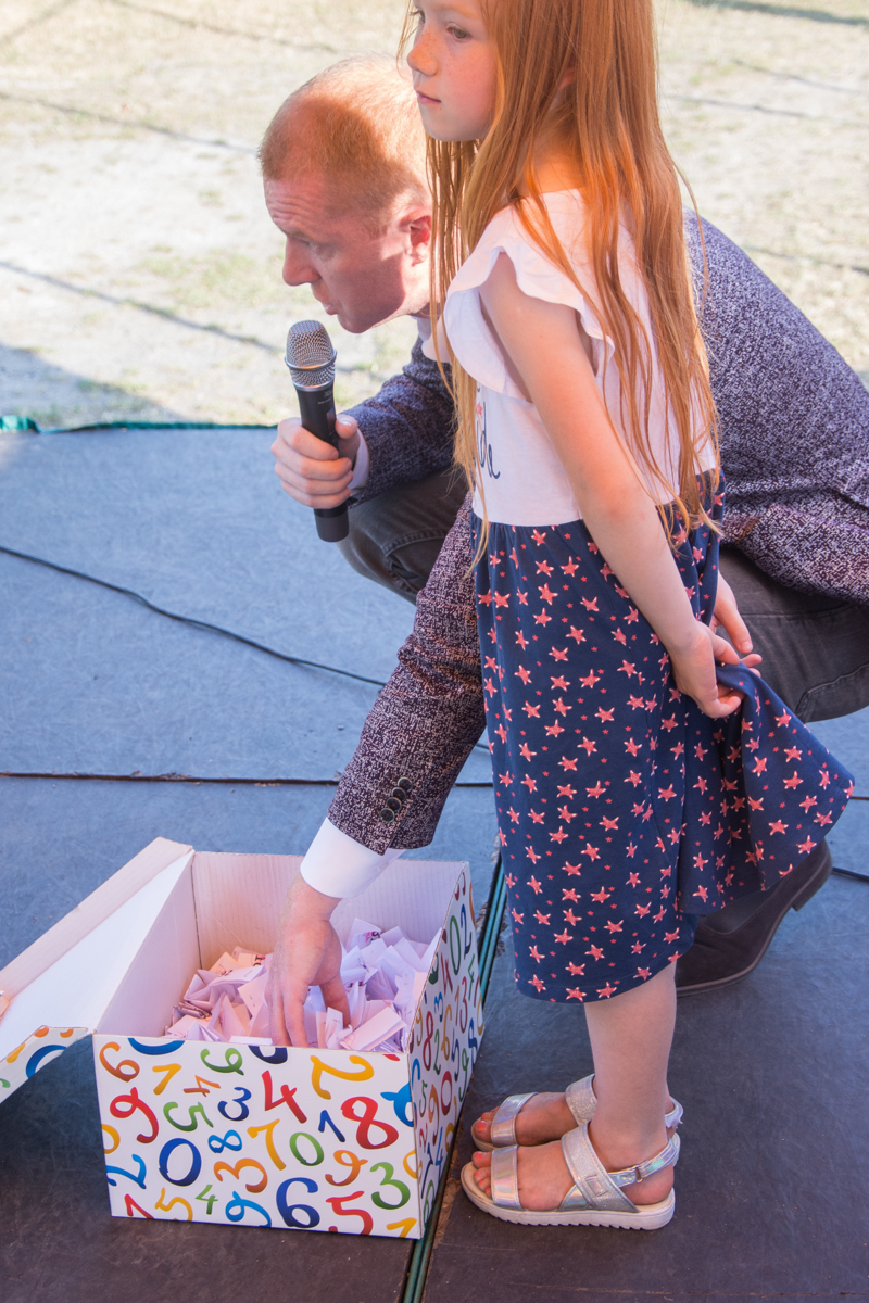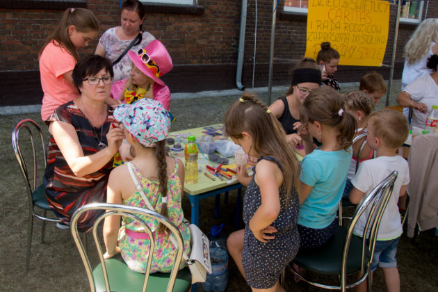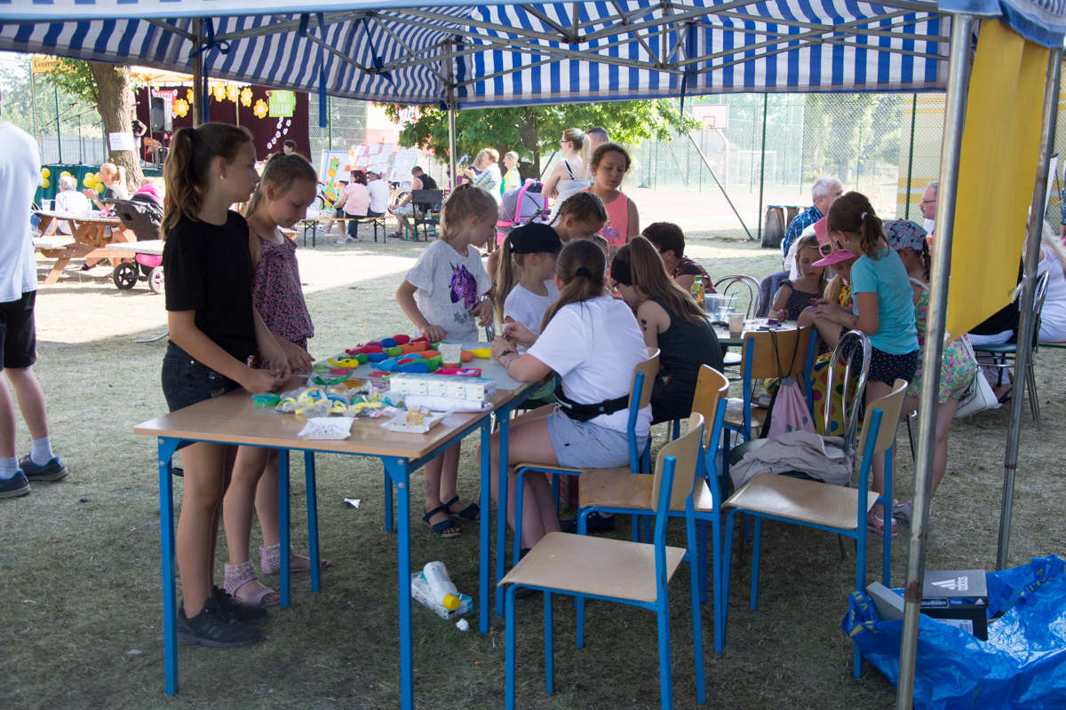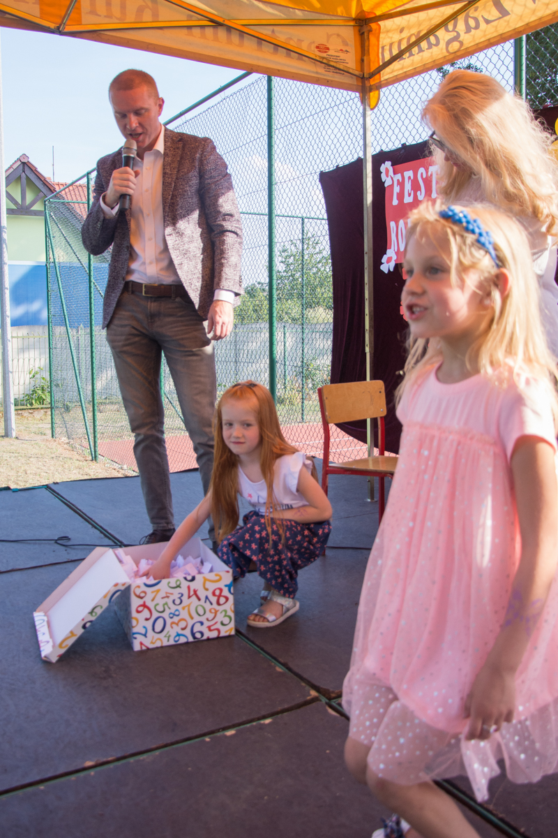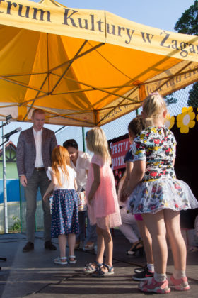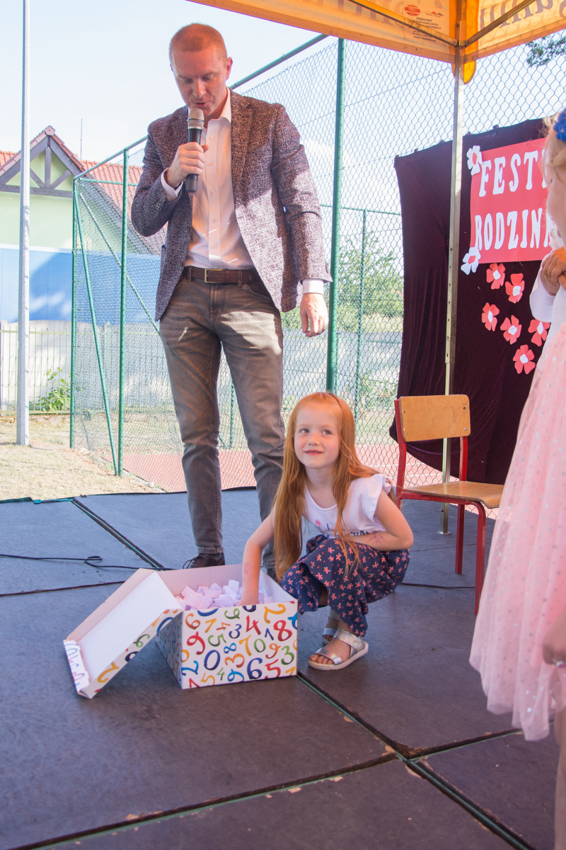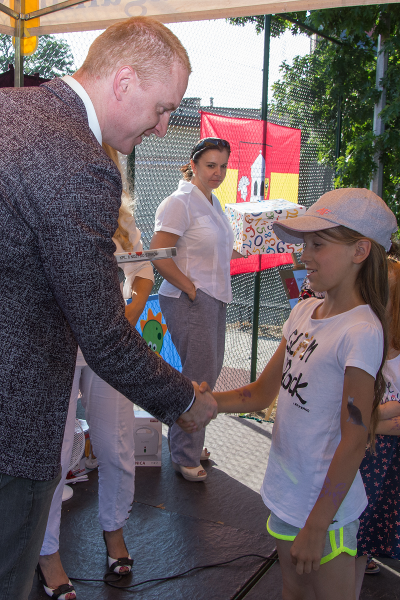 Dorośli i dzieci mogli skorzystać z zabaw sportowych i konkursów. Na scenie wystąpili m.in. podopieczni Artura Niezgody, a na szkolnym podwórku można było zatańczyć zumbę, czy też kupić tanio książkę. Pielęgniarka Barbara Backiel mierzyła ciśnienie. Najwięcej emocji wywołała loteria fantowa, w której główną nagrodą były rowery. Jeden ufundowany przez Daniela Marchewkę Burmistrza Miasta Żagań, drugi przez lokalnego przedsiębiorcę. W losowaniu pomagał burmistrz, który przyjechał na festyn z dyrektorem Zbigniewem Białkowskim.