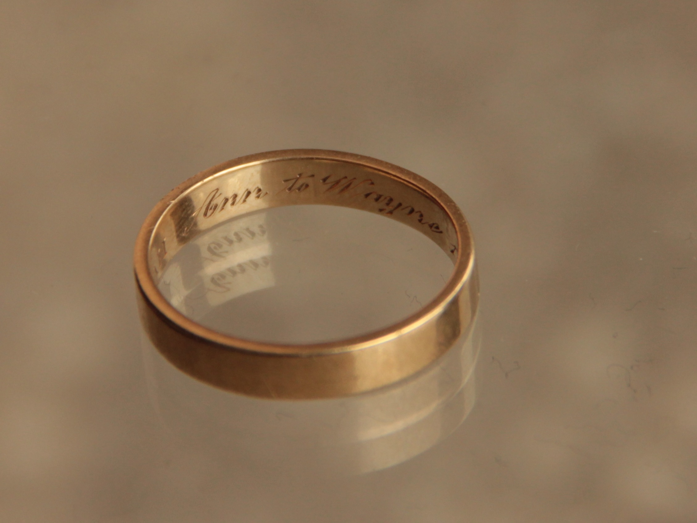 Wayne Gotke otrzymał obrączkę od swojej ukochanej żony Ann. W jej wnętrzu wygrawerowano napisy: „Ann to Wayne 1942” oraz żydowskie słowo Mizpah, pochodzące z biblijnej Księgi Rodzaju. Jest ono tłumaczone jako „wieża obserwacyjna” i oznacza bardzo silne emocjonalne więzi między ludźmi, którzy zostali rozdzieleni. W przypadku Wayne Gotke i Ann Smith przez II wojnę światową. Obrączka była świadectwem miłości i przywiązania.