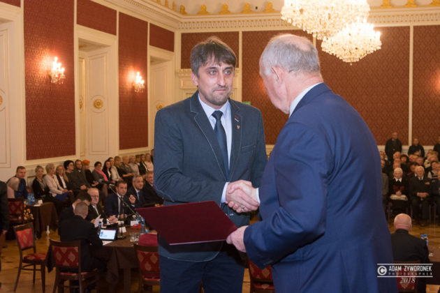 Burmistrz A. Katarzyniec podał rękę byłemu burmistrzowi, a obecnemu radnemu Danielowi Marchewce, który zabrał głos i zadeklarował pomoc oraz wsparcie dla nowego włodarza.