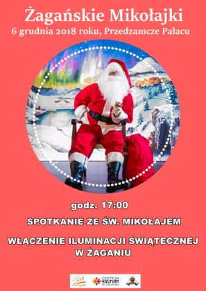 Zapraszamy na spotkanie z Mikołajem, które odbędzie się 6 grudnia 2018 r. O godzinie 17:00 przed Pałacem Książęcym w Żaganiu wspólnie zainaugurujemy uruchomienie świątecznych dekoracji w mieście, a Mikołaj w towarzystwie śnieżynek rozda dzieciom słodycze.