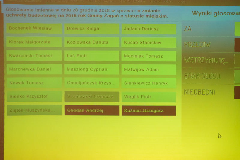 28 grudnia 2018 roku odbyła się ostatnia w tym roku sesja Rady Miasta Żagań poświęcona głównie uchwale budżetowej na rok przyszły. Zanim przystąpiono do podjęcia uchwał, zaprzysiężono nowego radnego Ireneusza Szaniawskiego. Objął on mandat w miejsce ustępującego Sebastiana Kuleszy, który przywitał się z radnymi w nowej roli Zastępcy Burmistrza Miasta Żagań. Zabierając głos Sebastian Kulesza podziękował za zaufanie, którym obdarzyli go radni wybierając na przewodniczącego. Mandat otrzymany od wyborców postanowił jednak wypełnić w inny sposób pamiętając, iż nadal będzie to pełnienie służby na rzecz mieszkańców, opartej na sztuce kompromisu. Gratulacje nowemu radnemu złożył również burmistrz Andrzej Katarzyniec, który zaprosił do współpracy i pracy na rzecz miasta. Radni uczcili ponadto minutą ciszy pamięć o Henryku Zawadzkim – działaczu sportowym i trenerze, nauczycielu, osobie przez lata aktywnie działającej na rzecz Żagania.