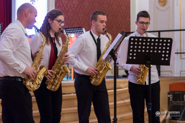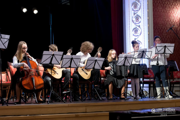 Pięknie zaprezentowały się zespoły kameralne: duet fortepianowy Aleksandra Ledwoch i Martyna Koman, trio saksofonowe uczniów Krzysztofa Krzyśków, który w jednej z kompozycji dołączył do zespołu, nonet mieszany pracujący pod kierunkiem Karoliny Czernisz-Tuz, która tradycyjnie także zawsze dołącza do swoich podopiecznych, i która towarzyszyła następnie na fortepianie szkolnemu chórowi oraz zespoły perkusyjne przygotowane przez Oskara Zembika (który nie tylko dołączył do uczniów, ale do udziału w ich prezentacji zaprosił także swą małżonkę – kontrabasistkę; później dołączyła ona do szkolnej orkiestry).