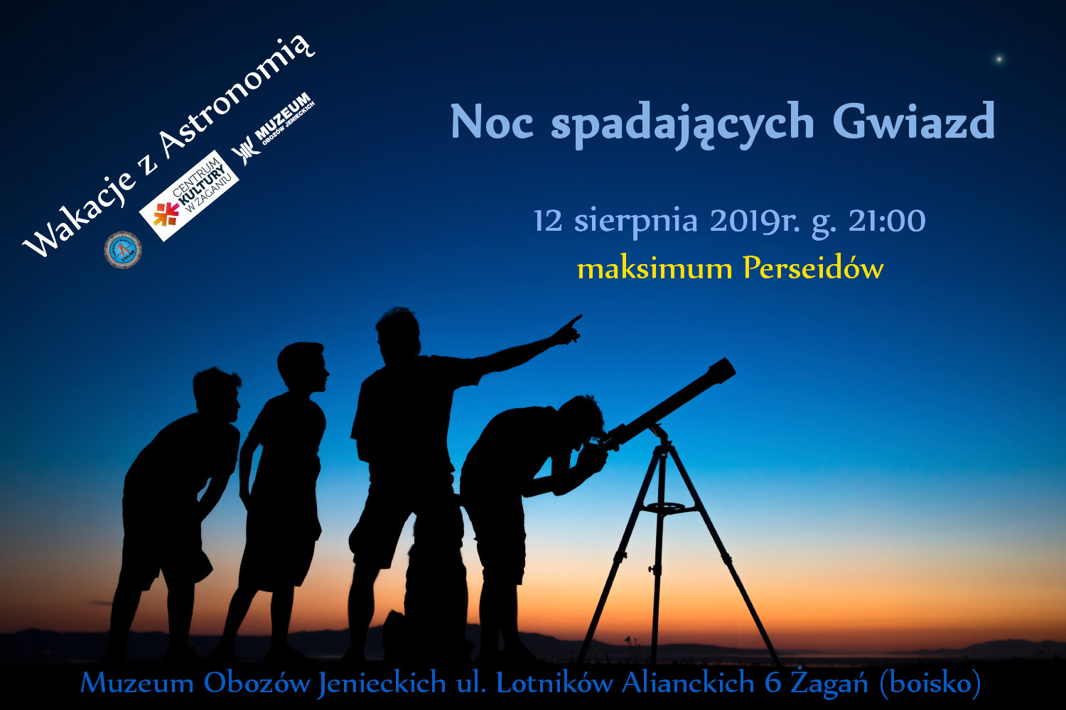 Zapraszamy do udziału w obserwacjach meteorów w niezwykłą letnią noc 12 sierpnia 2019 roku od godziny 21:00. Miejsce spotkania to tradycyjnie plac przy Muzeum Obozów Jenieckich.