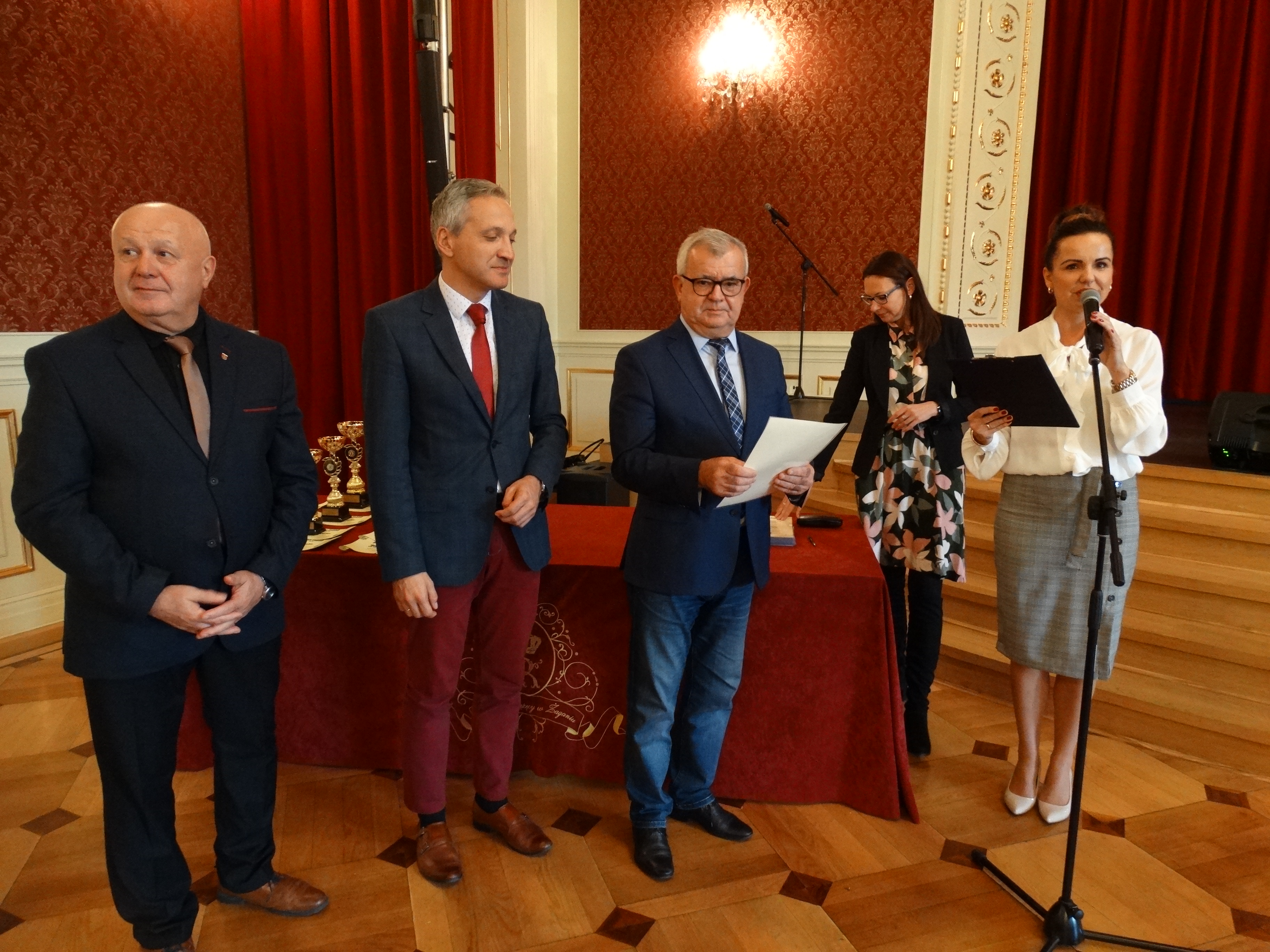 Uroczystość wręczenia stypendiów odbyła się w sali Kryształowej Pałacu Książęcego 16 października 2019 roku. Wzięli w niej udział nasi najzdolniejsi uczniowie wraz z opiekunami i pedagogami oraz gospodarze miasta. Burmistrz Andrzej Katarzyniec podziękował za wspólny wysiłek rodziców i uczniów, którego owocem są dzisiejsze nagrody. Zastępca Sebastian Kulesza wyraził zadowolenie z obecności w tak elitarnym gronie – elitarnej grupie młodzieży rozwijającej swoją wiedzę i pasję. Przewodniczący rady miasta Adam Matwijów podziękował obecnym za całoroczną pracę i promocję Żagania na arenach sportowych oraz w konkursach przedmiotowych odbywających się w całym kraju.