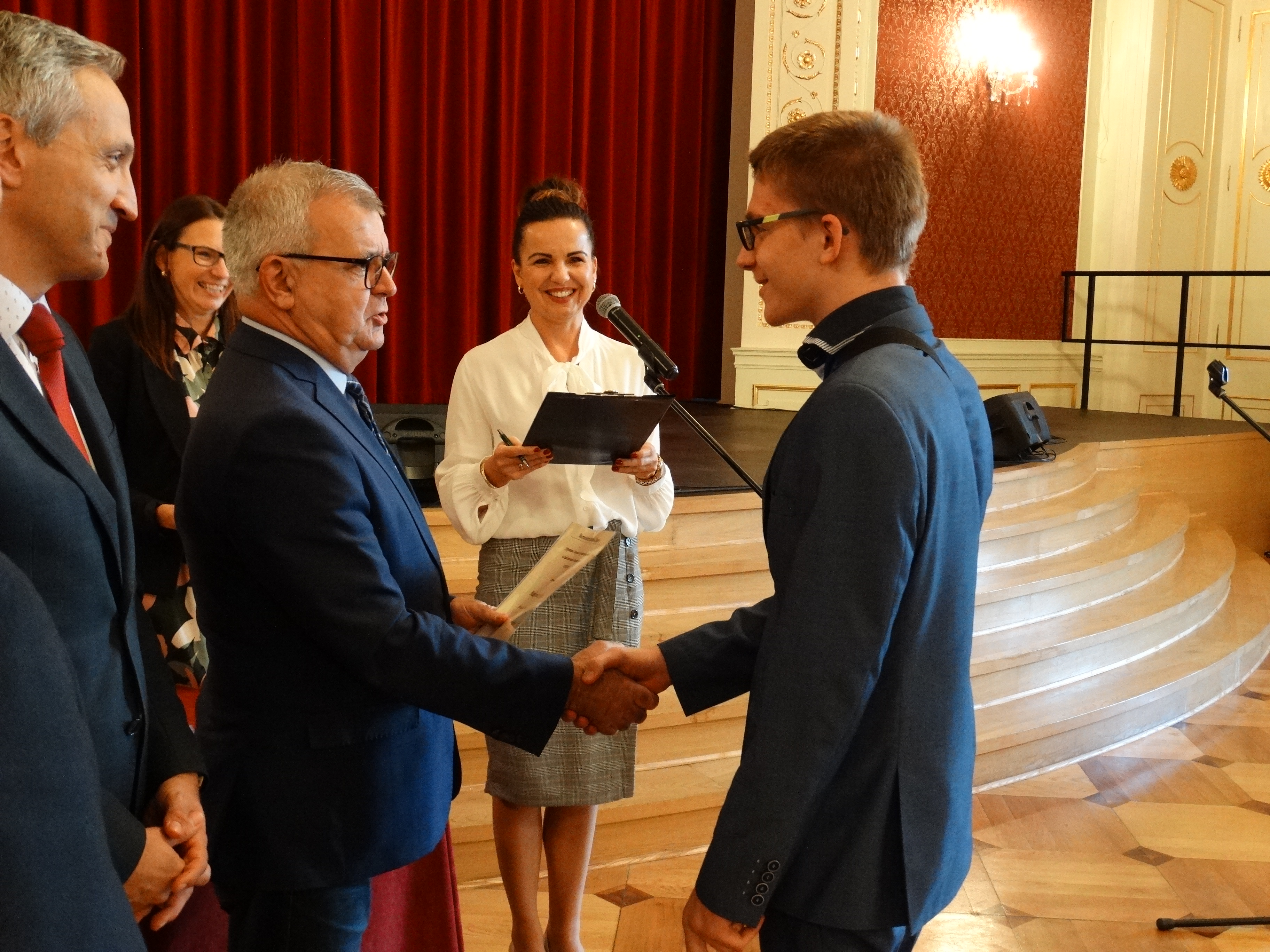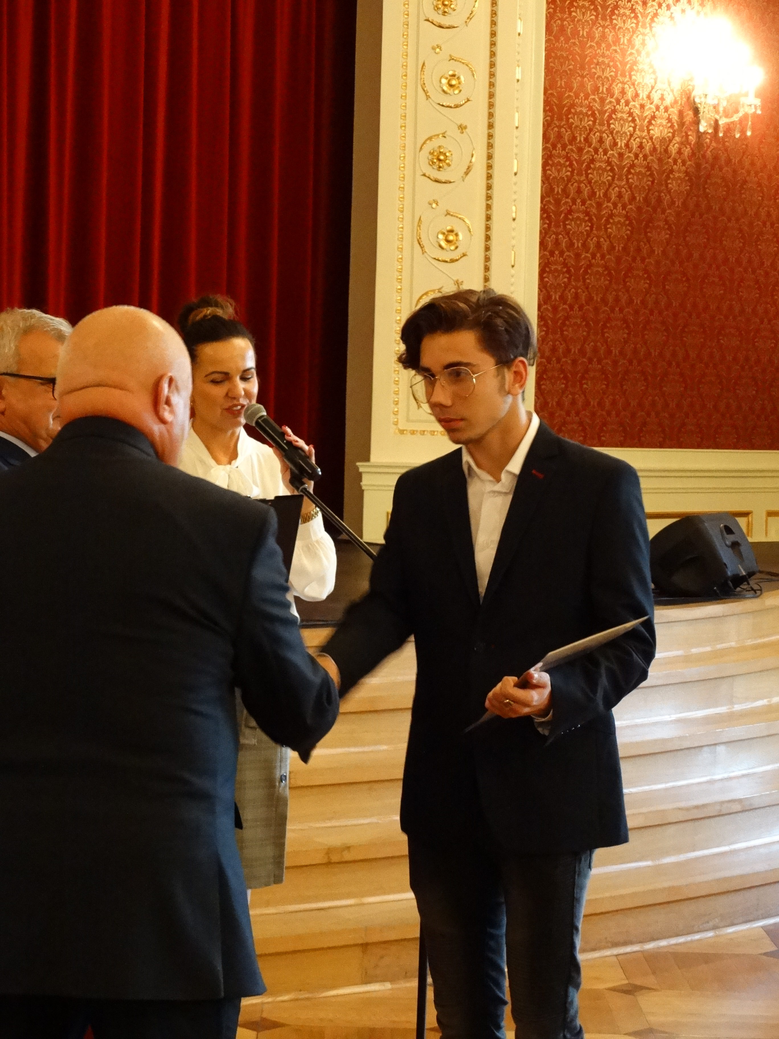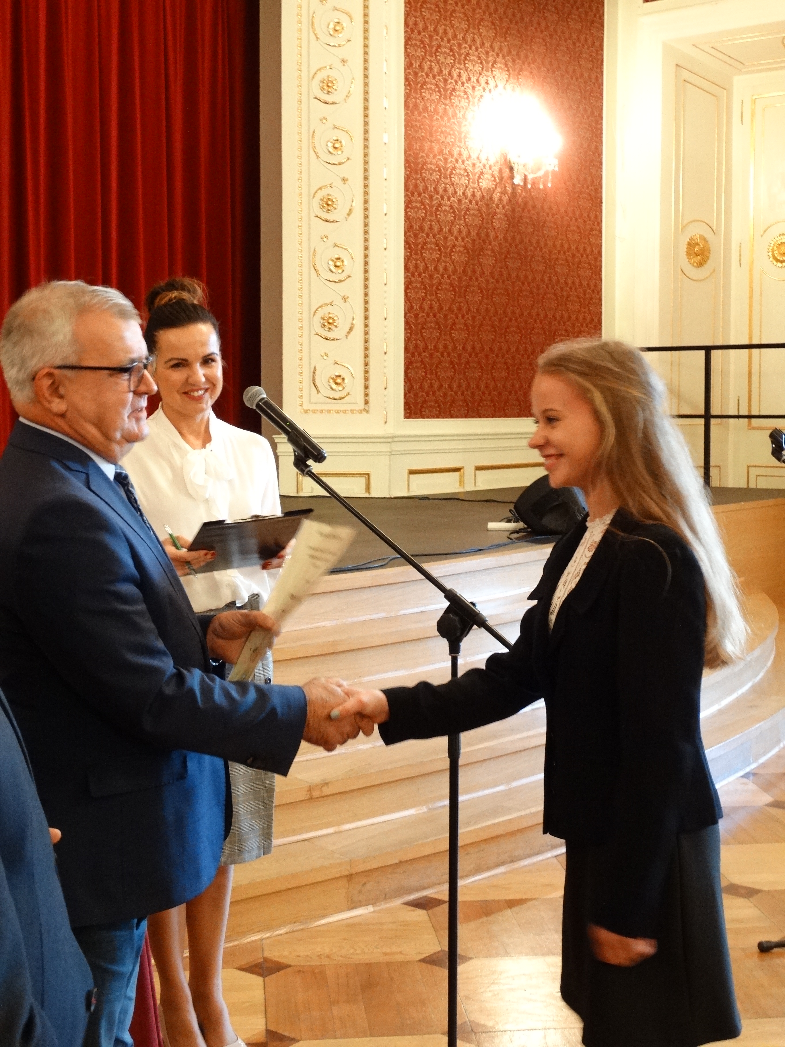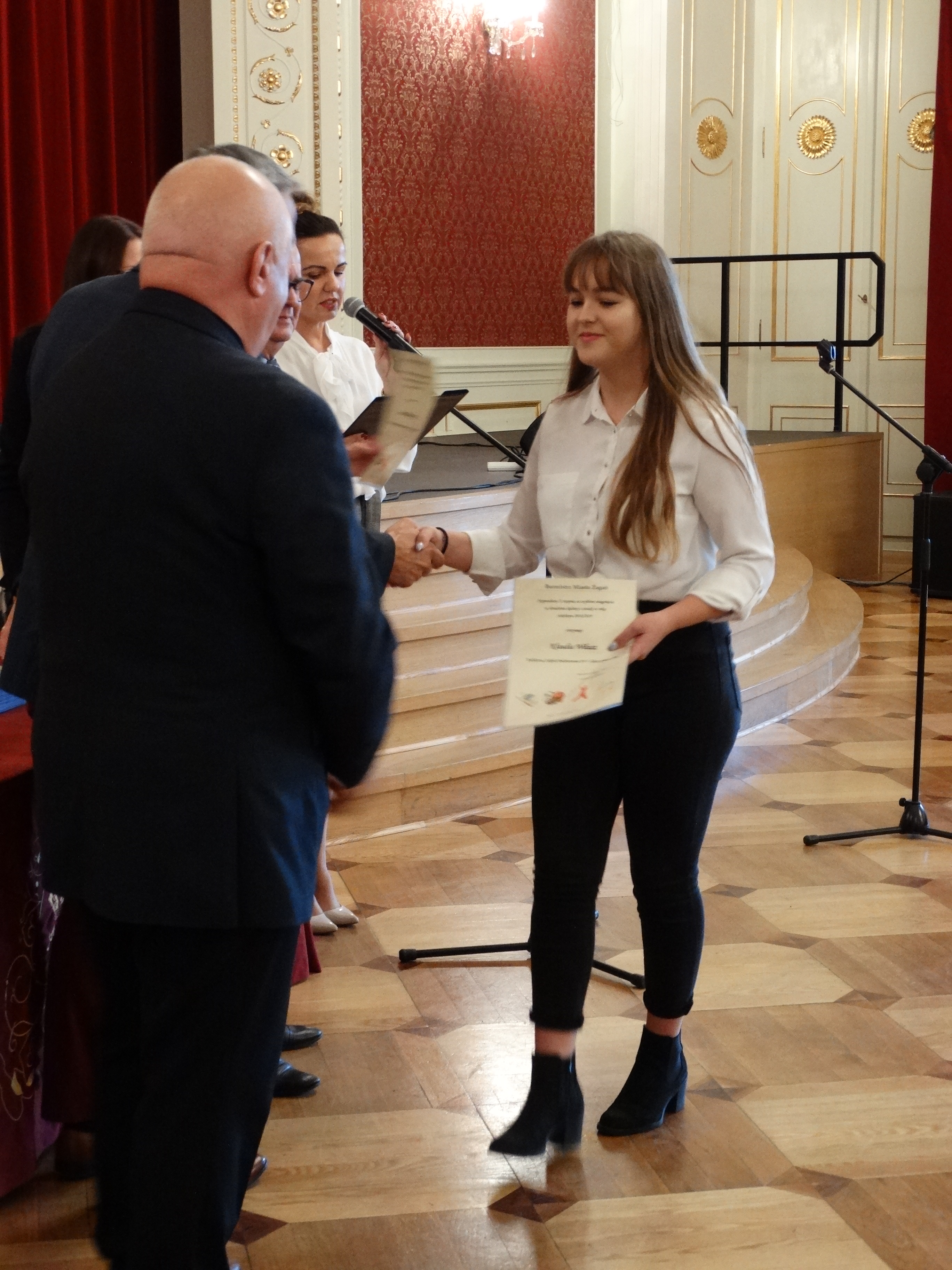 Zanim przystąpiono do wręczania stypendiów, na scenie wystąpiło troje nagrodzonych uczniów. Monika Wojtysiak, Zastępca Naczelnika Wydziału Oświaty UM, prowadząca uroczystość, zaprosiła na scenę Martynę Bielewicz, Martynę Hawryluk i Julię Żołyńską. Dziewczynki zaprezentowały swoje umiejętności w grze na skrzypcach, śpiewie i tańcu. Po tej małej próbce talentów naszych najzdolniejszych uczniów przystąpiono do wręczania stypendiów za wybitne osiągnięcia w dziedzinie nauki, kultury i sztuki oraz w sporcie. Oto lista najlepszych z najlepszych: