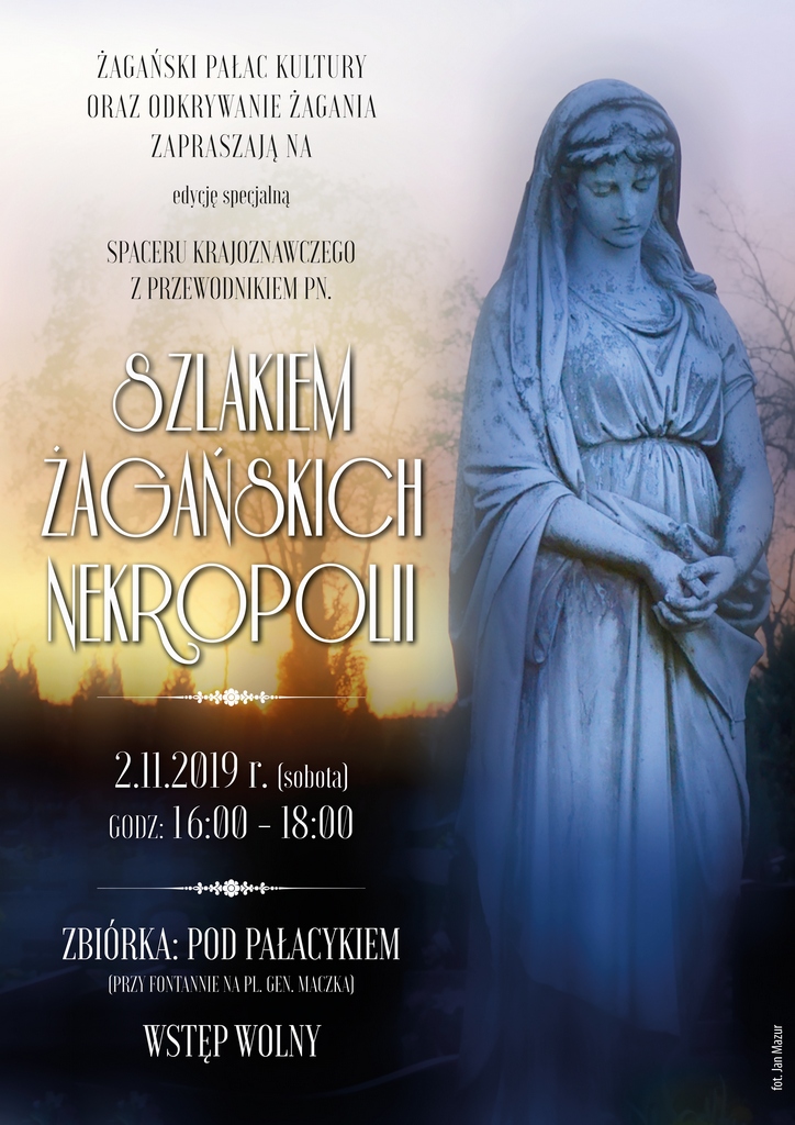 2 listopada 2019 roku w godzinach od 16.00 do 18.00 Żagański Pałac Kultury oraz Odkrywanie Żagania zapraszają na spacer krajoznawczy szlakiem żagańskich nekropolii. Zbiórka uczestników przy fontannie na placu generała Maczka.