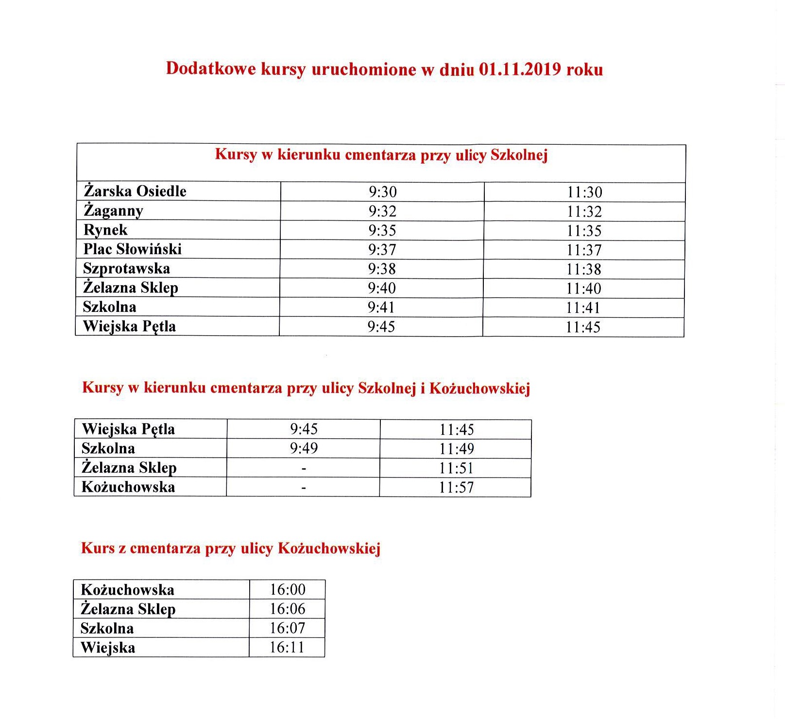 Zmiana organizacji ruchu w okresie Wszystkich Świętych oraz bezpłatna komunikacja miejska miejska
