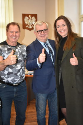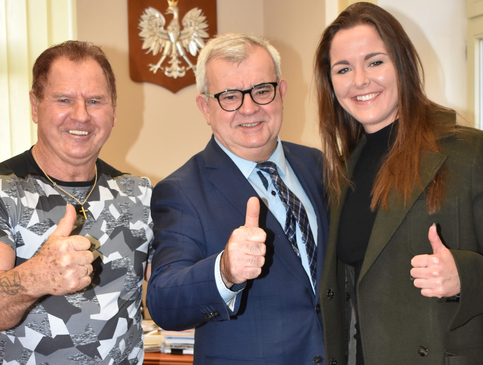 Burmistrz Andrzej Katarzyniec spotkał się dzisiaj z Mistrzynią Europy, która na zawodach na Litwie zdobyła złoty medal w wyciskaniu sztangi leżąc. Naszym gościem była Paulina Lechowicz, reprezentująca UKS Nike w Żaganiu. Zawodniczka zdobyła europejskie złoto, pobijając swój świeżo ustanowiony rekord Polski. Startując w trójboju siłowym zaprezentowała swoje umiejętności w trzech dyscyplinach – w wyciskaniu sztangi leżąc podniosła rekordowy ciężar 105 kg, w przysiadzie ze sztangą 152.5 kg (przy rekordzie życiowym 157.5 kg), w martwym ciągu 175 kg. Dzięki tym wynikom w klasyfikacji ogólnej trójboju siłowego juniorów uplasowała się na 5 miejscu. Jak sama żartuje, przygodę ze sztangą rozpoczęła w wieku 6 lat, kiedy to po raz pierwszy zmierzyła się z 20-kilogramowym ciężarem, podnosząc go kilkukrotnie. Profesjonalne starty w trójboju siłowym rozpoczęła w wieku 17 lat. Wcześniej trenowała piłkę ręczną oraz rzut oszczepem, odnoszą sukcesy w każdej z podjętych dyscyplin. Zamiłowanie do sportów siłowych rozbudził w Paulinie nasz utytułowany mistrz – Edmund Lechowicz. Jak przyznał w trakcie spotkania, do dzisiaj przekazuje córce uwagi dotyczące ćwiczeń, mimo iż reprezentuje już ona poziom mistrzowski. Nasza zawodniczka mieszka na stałe w Świnoujściu, gdzie uczy się i pracuje.
