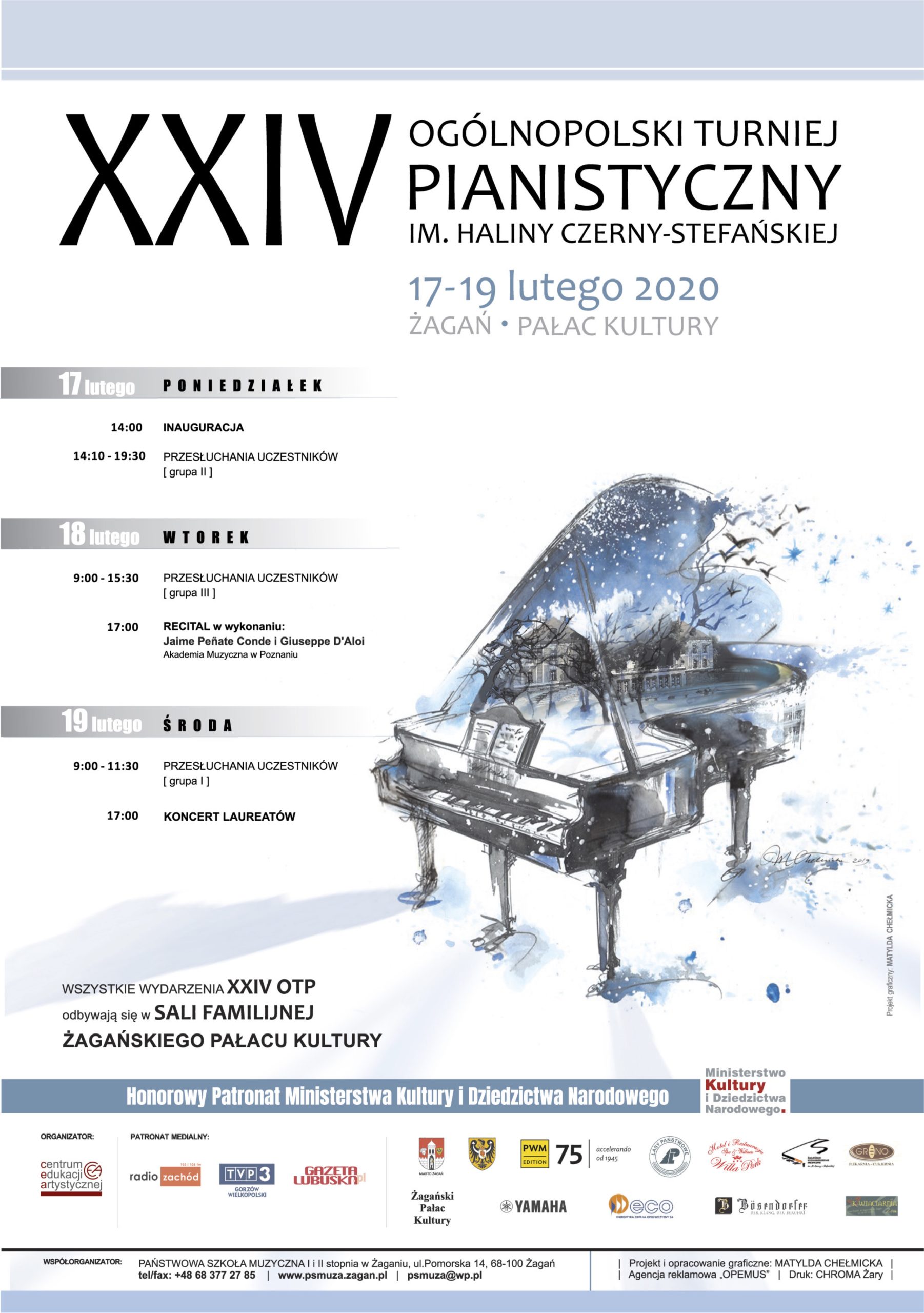 XXIV Ogólnopolski Turniej Pianistyczny objęty został Honorowym Patronatem Ministerstwa Kultury i Dziedzictwa Narodowego. Konkurs rekomendowany jest przez Ministra Kultury, a jego organizatorem jest Centrum Edukacji Artystycznej w Warszawie. Patronat medialny sprawują Radio Zachód, TVP 3 Gorzów Wielkopolski oraz Gazeta Lubuska.