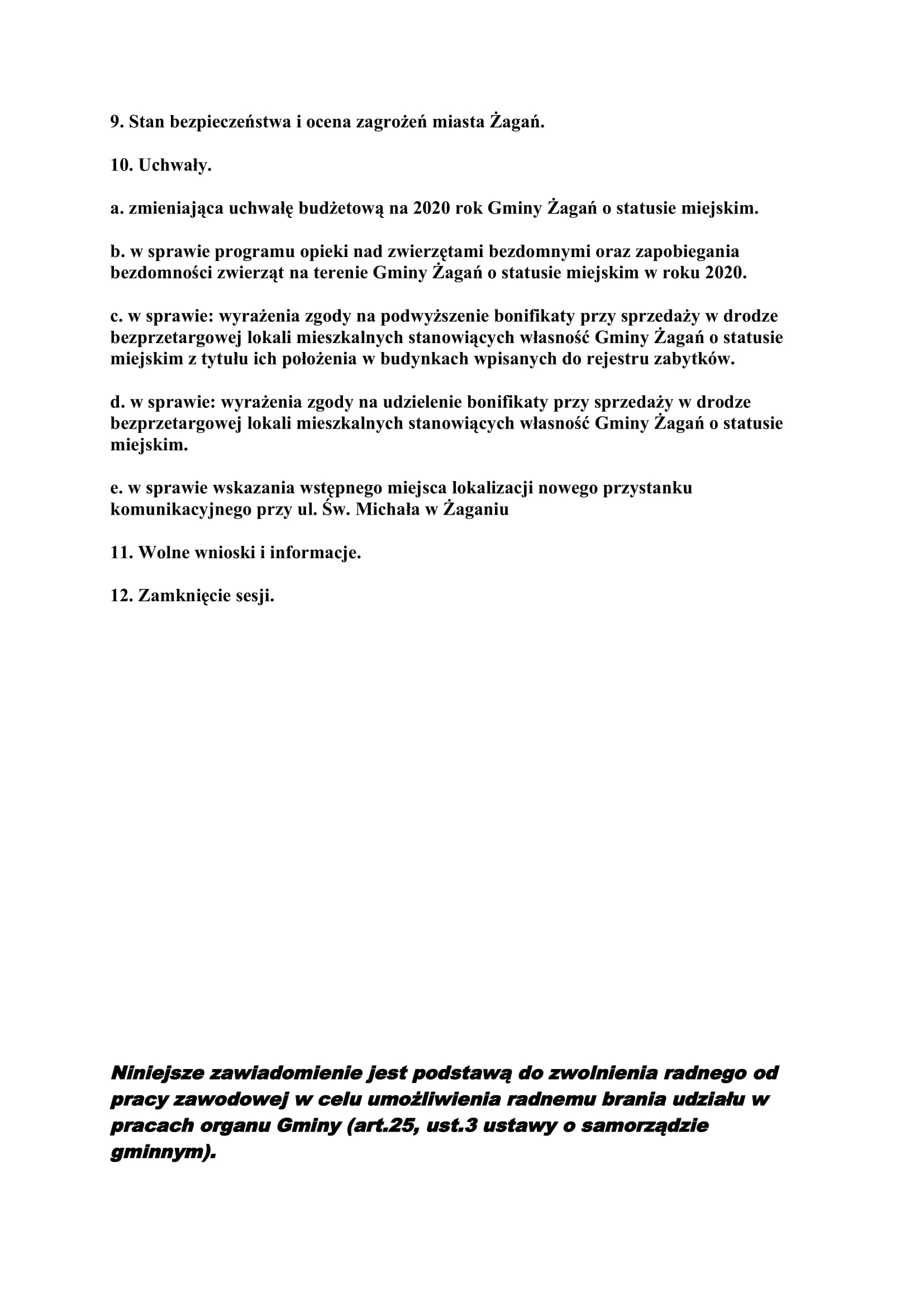 Informujemy, że 27 marca 2020 roku odbędzie się XIX sesja Rady Miasta Żagań. Obrady rozpoczną się o godz. 10:00 w Pałacyku przy ul. Jana Pawła II 15, bez udziału osób spoza rady.