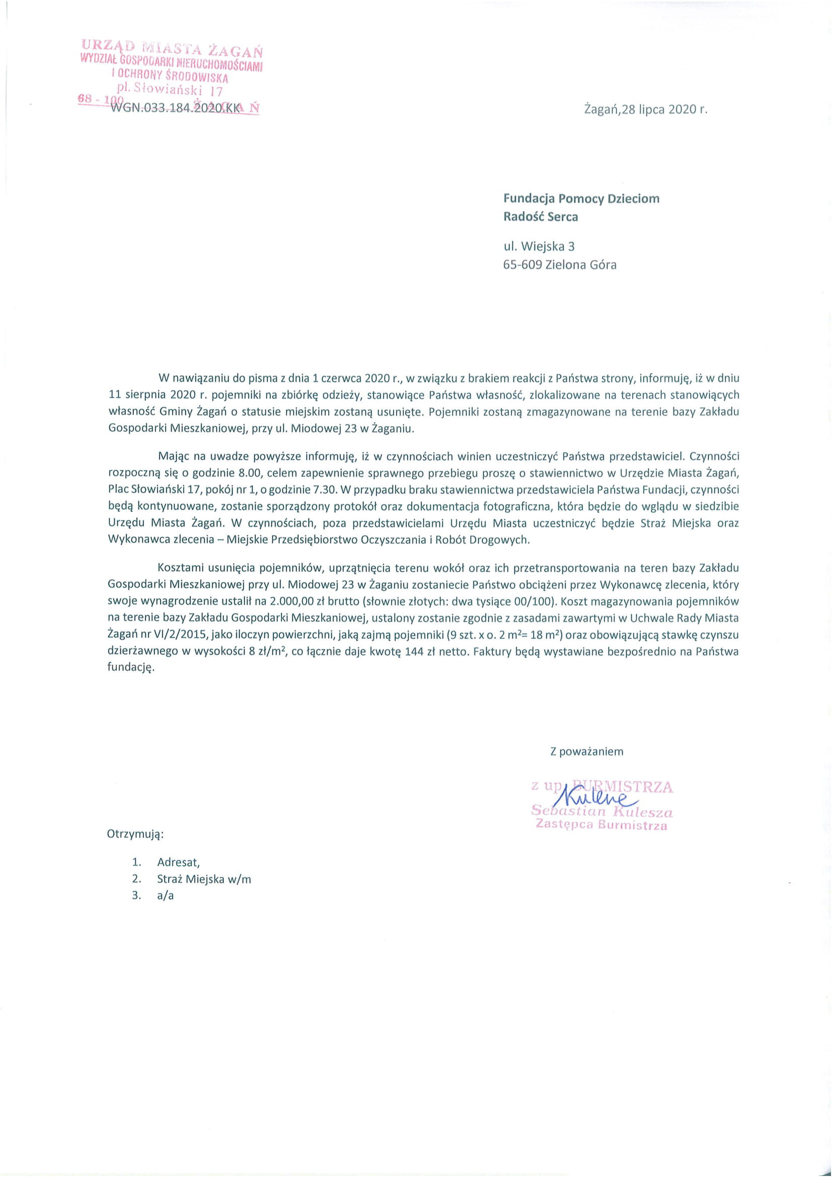 1 czerwca wezwano właściciela do usunięcia kontenerów na odzież