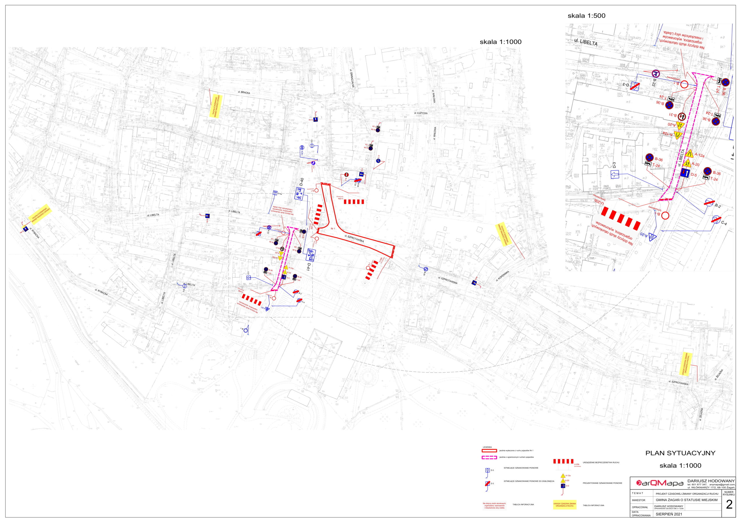- wprowadzenie ruchu dwukierunkowego na odcinku drogi jednokierunkowej w ulicy Libelta.