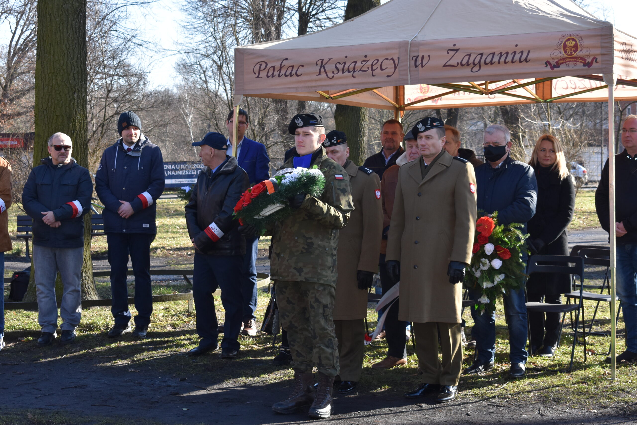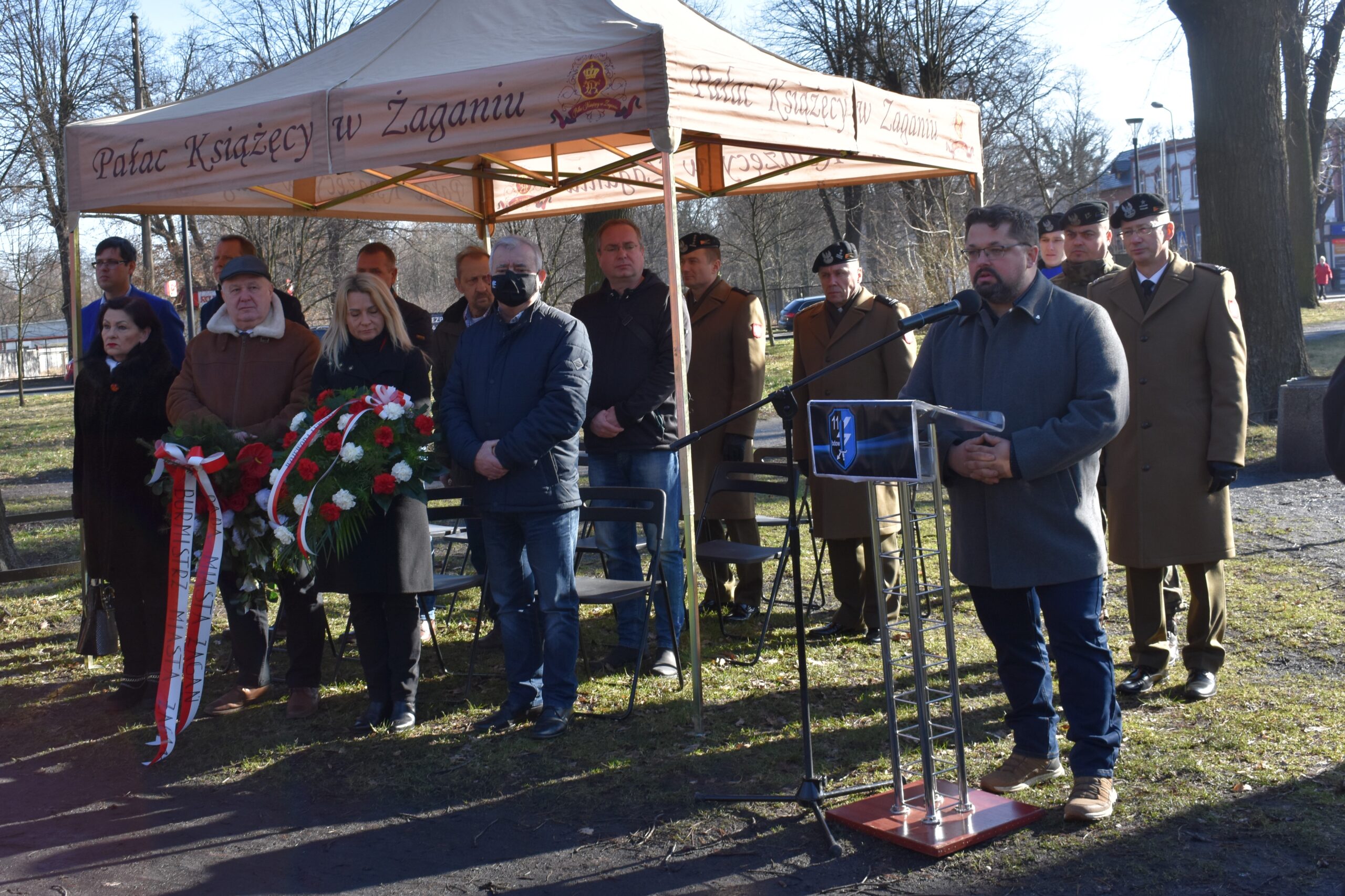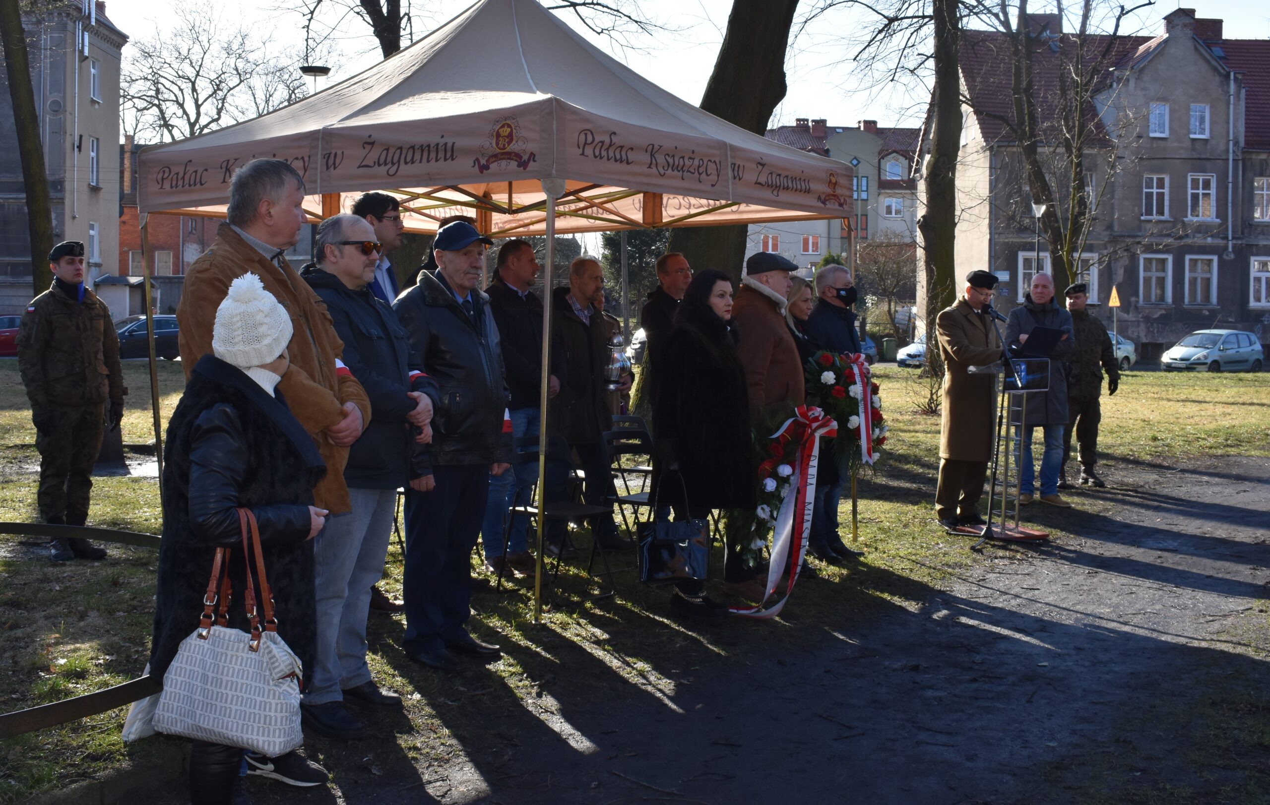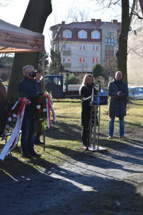 W odsłonięciu tablicy wzięła udział Wojewoda Lubuska Olimpia Tomczyk-Iwko, poseł Konfederacji Krystian Kamiński, starosta żagański Henryk Janowicz oraz burmistrz Andrzej Katarzyniec wspólnie z przewodniczącym rady i radnymi. Goście złożyli kwiaty w miejscu pamięci, oddając w ten sposób hołd bohaterom walk o polską suwerenność.