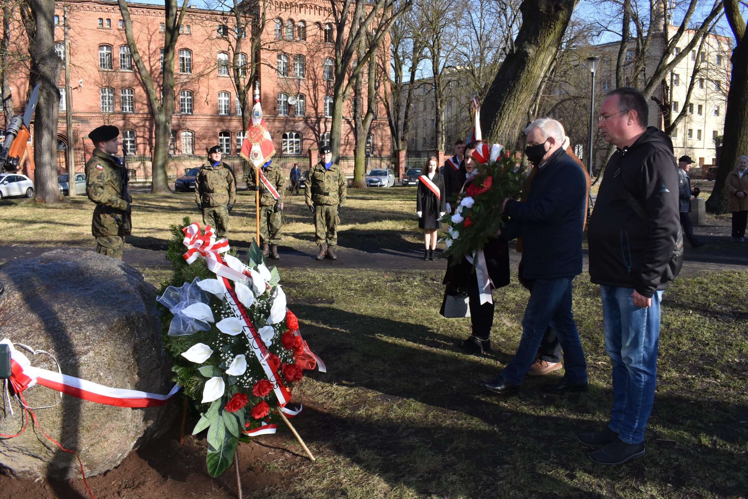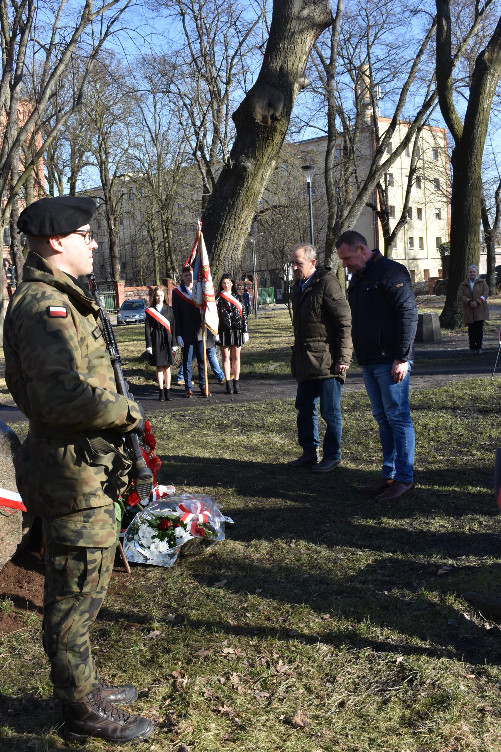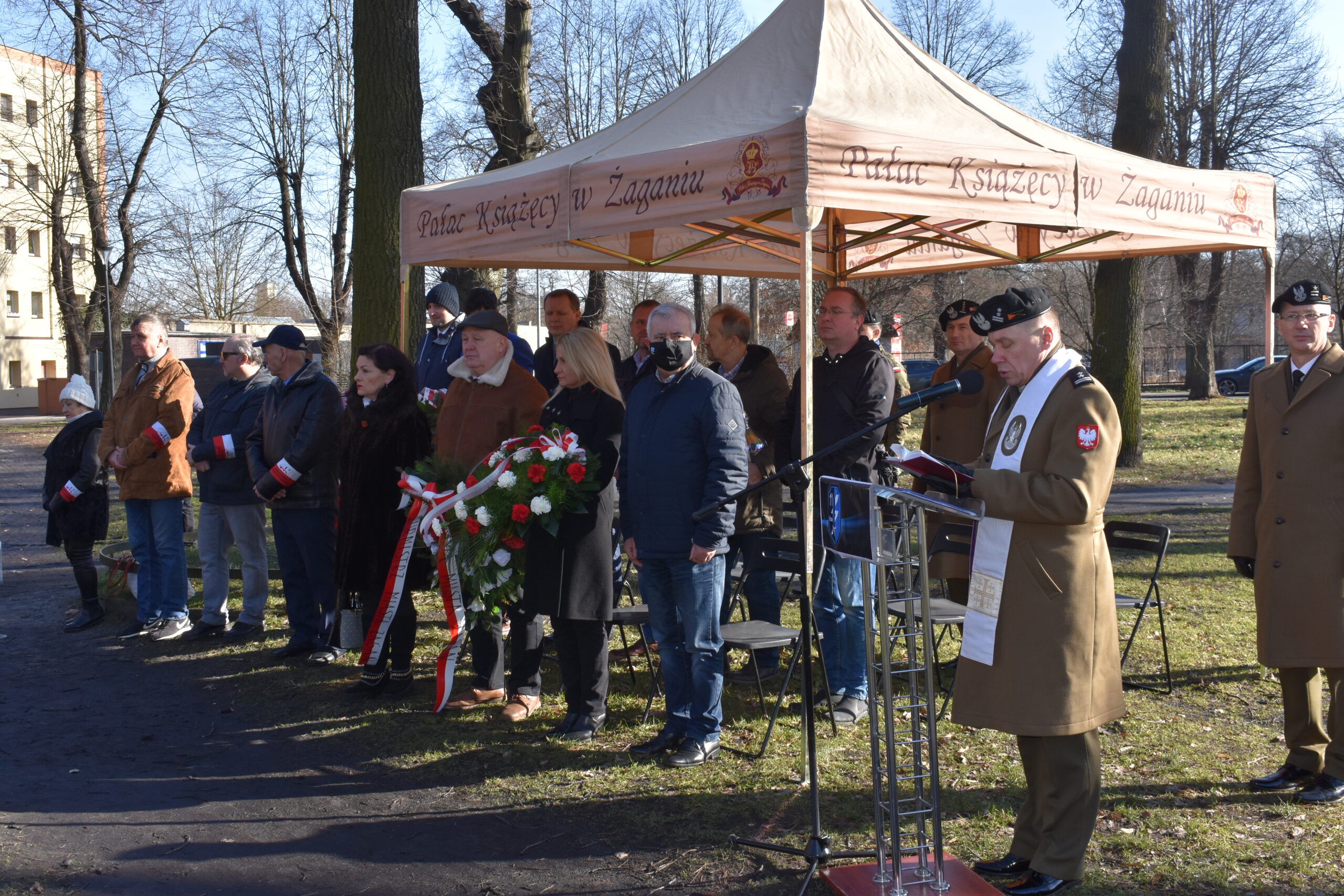 W odsłonięciu tablicy wzięła udział Wojewoda Lubuska Olimpia Tomczyk-Iwko, poseł Konfederacji Krystian Kamiński, starosta żagański Henryk Janowicz oraz burmistrz Andrzej Katarzyniec wspólnie z przewodniczącym rady i radnymi. Goście złożyli kwiaty w miejscu pamięci, oddając w ten sposób hołd bohaterom walk o polską suwerenność.