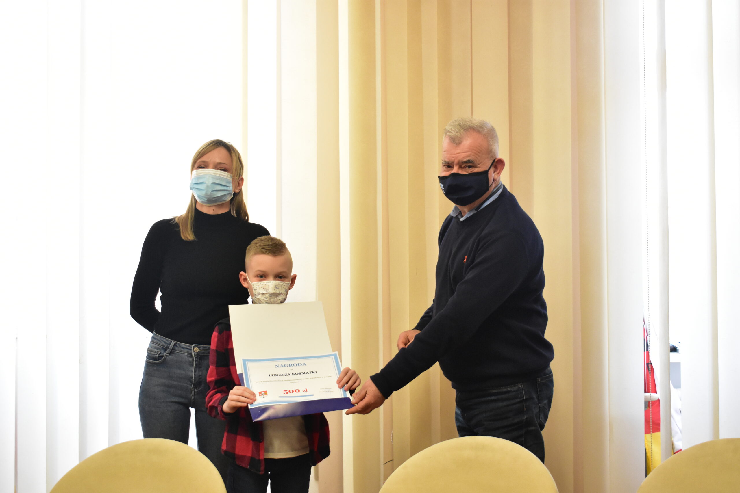 W kategorii posesja domku rodzinnego nagrodę rzeczową otrzymał właściciel budynku przy ulicy Chrobrego 22. Burmistrz zapytał młodego współwłaściciela domku, kto angażował się oprócz niego w dekorację domu. Gość przyznał, że tworzył oświetlenie wspólnie z tatą.