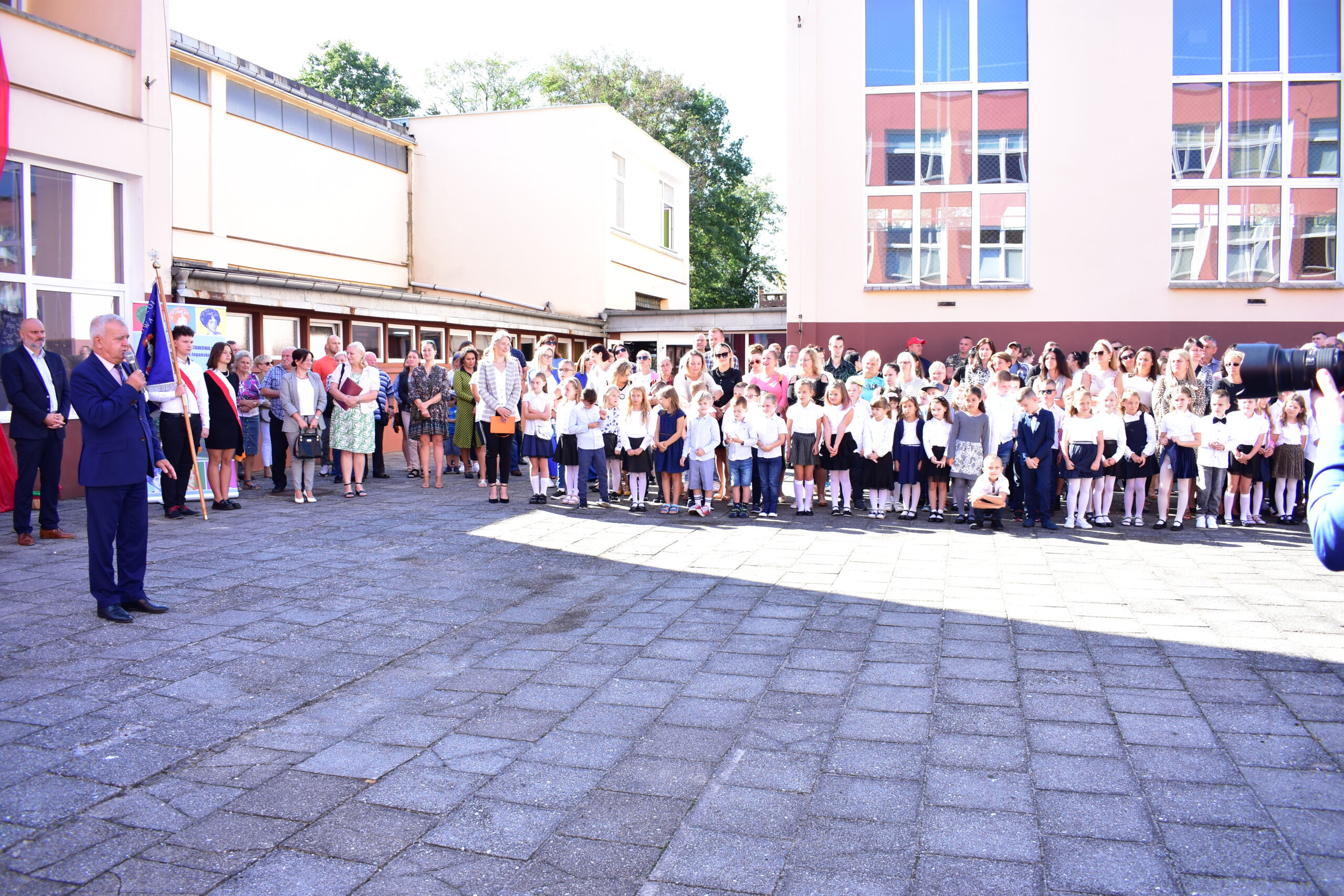 Andrzej Katarzyniec wziął również udział w apelu rozpoczynającym rok szkolny w PSP nr 7. Dyrektor Dorota Stebelska powitała całą społeczność, szczególnie ciepło zwracając się do pierwszoklasistów. Pani dyrektor zapewniła, że w “Siódemce” będzie im bardzo dobrze – nawet lepiej niż w przedszkolu. Burmistrz Andrzej Katarzyniec życzył natomiast wszystkim zebranym zdrowego roku szkolnego. Przeprosił za ubiegłoroczne utrudnienia związane z blokadą sali gimnastyczne i podziękował, że w tak trudnej sytuacji, jaką był wybuch wojny na Ukrainie, społeczność szkoły włączyła się w pomoc potrzebującym i przyjęła na siebie ciężar opieki nad uchodźcami. Gospodarz miasta wyraził nadzieję, że rozpoczynający się właśnie rok szkolny okaże się spokojniejszy. Życzył wszystkim zebranym – rodzicom, nauczycielom i uczniom – aby ten rok nie był czasem nauki zdalnej. Proboszcz kościoła na górce, ksiądz Marcin Siewruk apelował do wszystkich o zrozumienie i pokój, wzajemną troskę i opiekę.