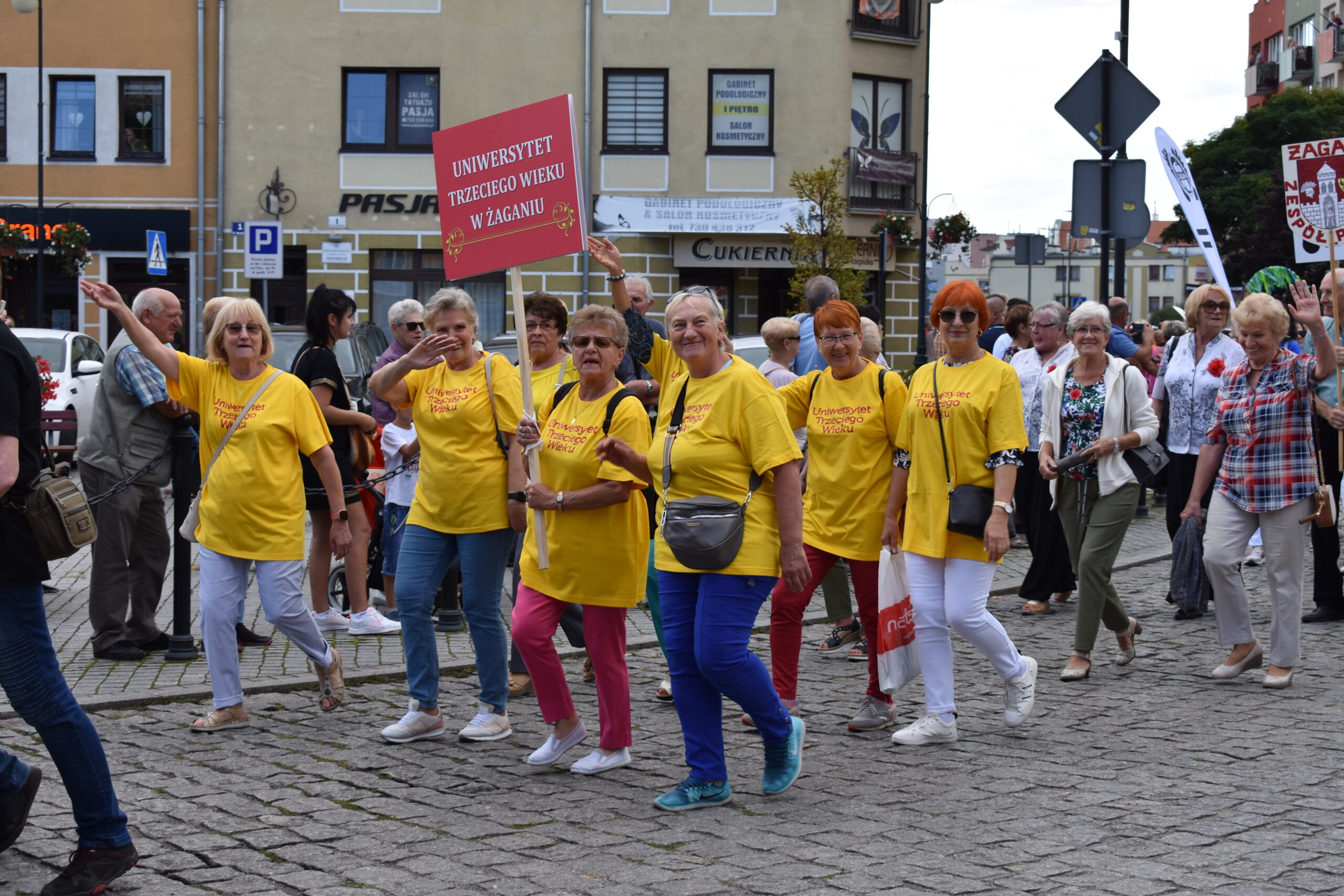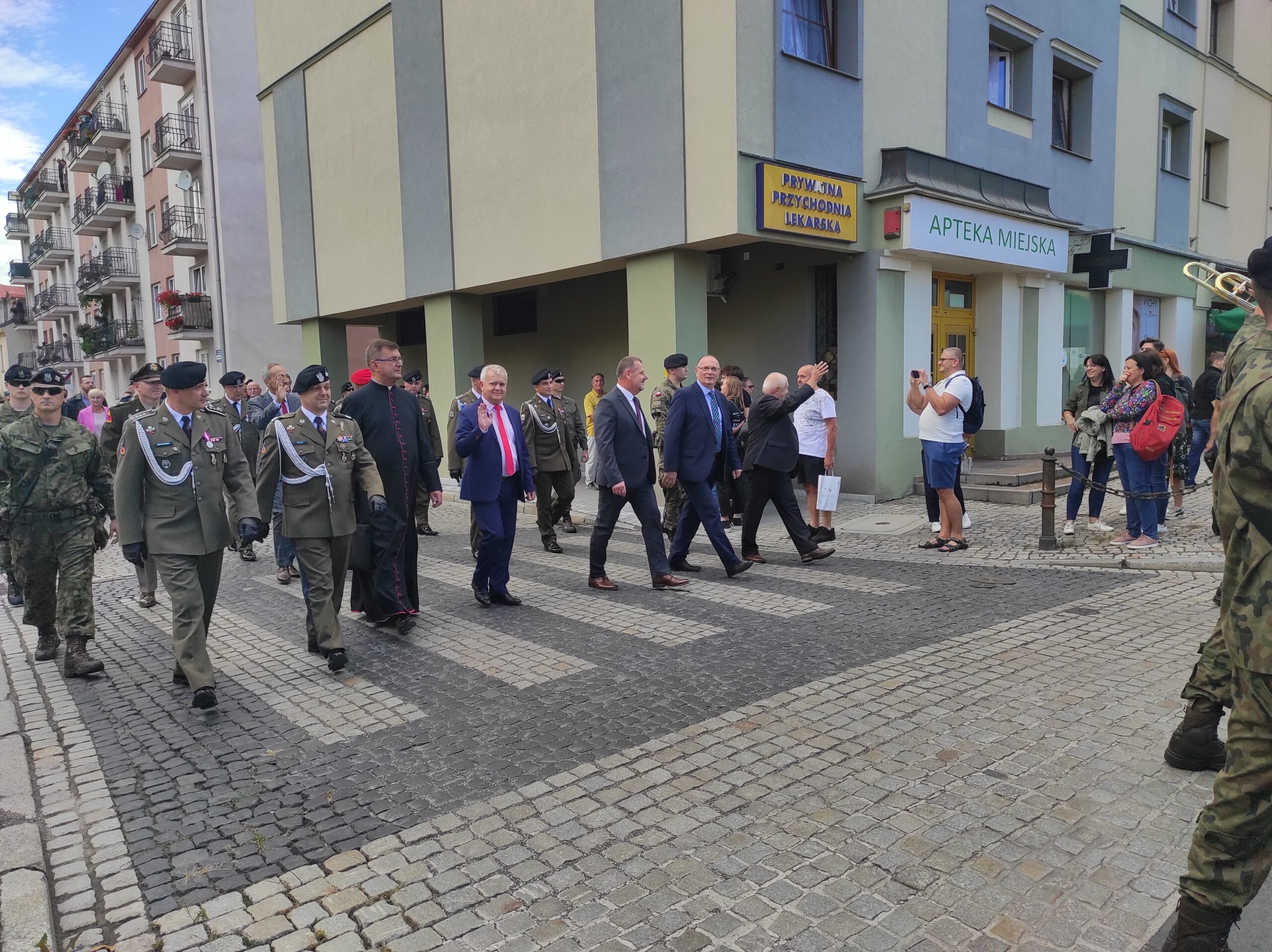 Dziękujemy wszystkim uczestnikom za wytrwałość i kultywowanie tradycji. Nasz pochód rozpoczęli motocykliści, za którymi pojawiła się Orkiestra Wojskowa z Żagania, za nią gospodarz miasta Burmistrz Andrzej Katarzyniec, Wicemarszałek Województwa Lubuskiego Stanisław Tomczyszyn, Starosta Żagański Henryk Janowicz, przewodniczący miejskiej rady Adam Matwijów, radni oraz naczelnicy magistratu. Ramię w ramię z gospodarzami miasta szli dowódcy jednostek wchodzących w skład 11 Lubuskiej Dywizji Kawalerii Pancernej wspólnie z dowódcą generałem dywizji Piotrem Trytkiem. Wśród gości znalazł się również gen. dyw. Stanisław Czosnek dowódca Centrum Operacji Lądowych oraz gen. dyw. Dariusz Parylak, dowódca 12. Szczecińskiej Dywizji Zmechanizowanej. Towarzyszyli nam również żołnierze amerykańscy oraz przedstawiciele służb mundurowych z Żagania. W korowodzie przeszli również współorganizatorzy Jarmarku św. Michała – rzemieślnicy, którzy dbają o to, aby nigdy nie zabrakło nam chleba. W korowodzie reprezentował ich Starszy Cechu Rzemiosł Rożnych i Przedsiębiorczości w Żaganiu Zbigniew Niedziela wspólnie z podstarszym Arturem Mutwilem.