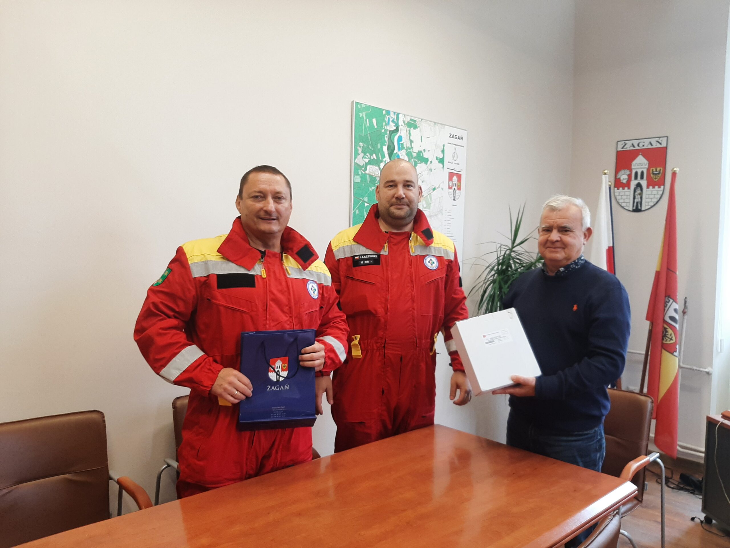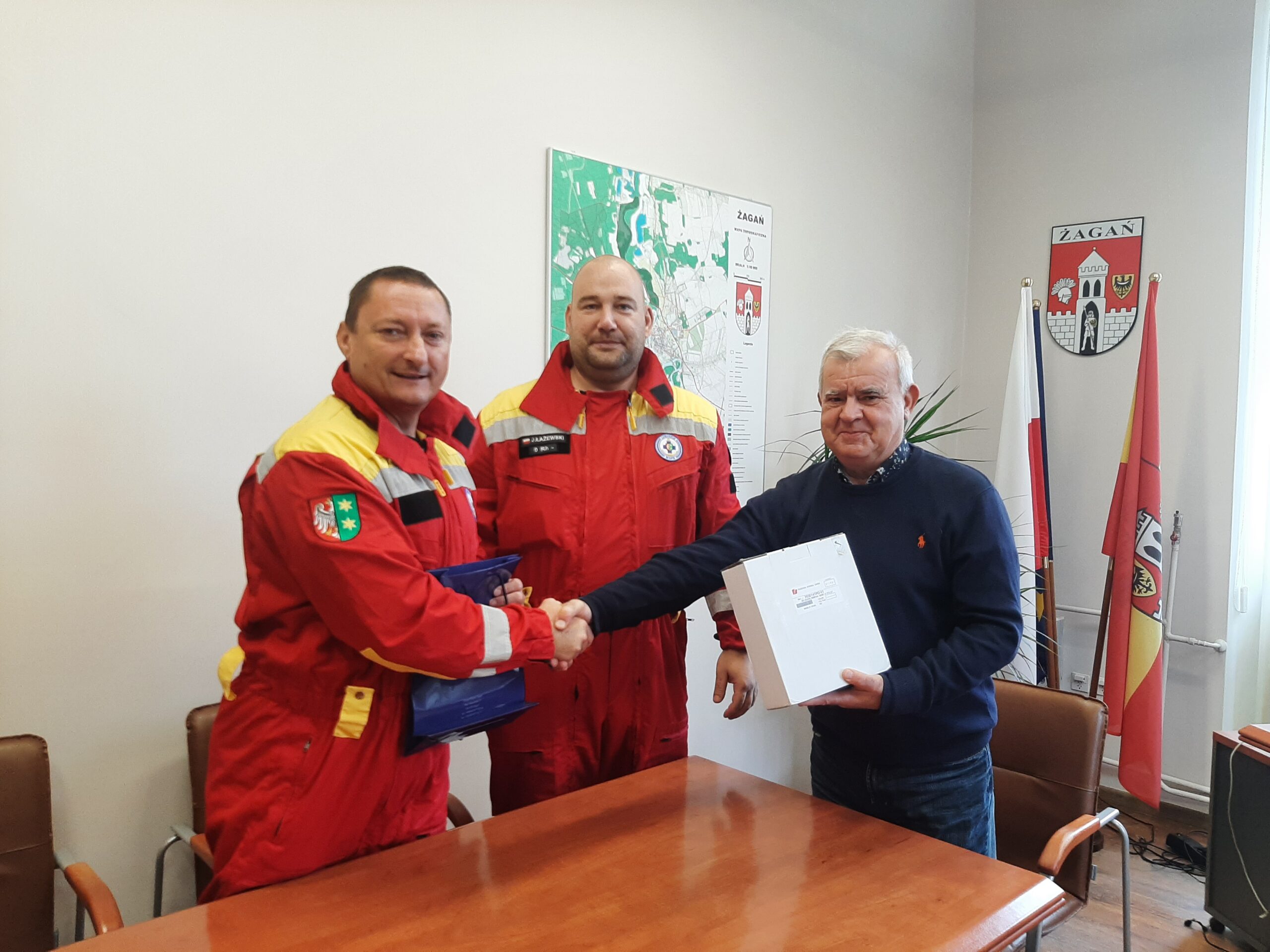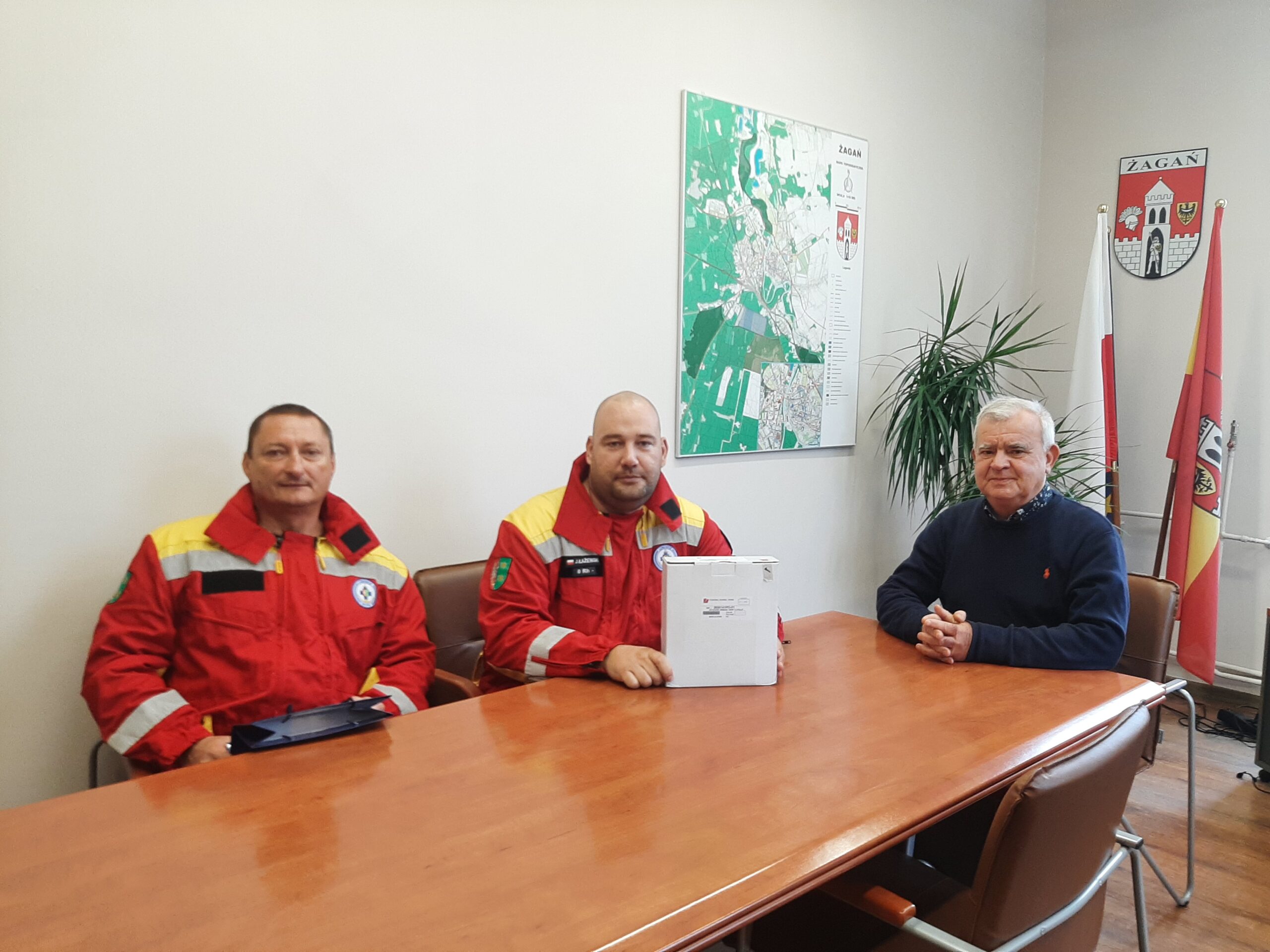 Burmistrz Andrzej Katarzyniec spotkał się dziś z przedstawicielami żagańskiego WOPR-u. Na ręce Tomasza Muszyńskiego oraz Jakuba Łażewskiego przekazał generator sygnałów modulowanych dla pojazdów uprzywilejowanych, o zakup którego wnosili nasi ratownicy. Spotkanie było również okazją do rozmowy o przyszłości stowarzyszenia.